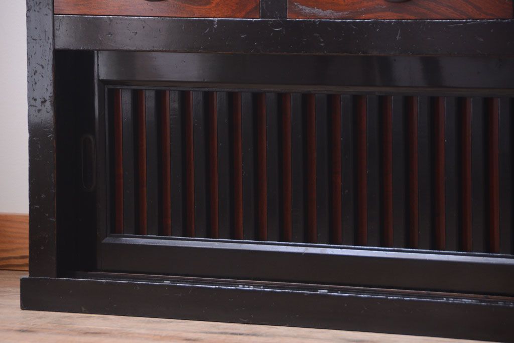 和箪笥 > アンティーク家具 古民具・骨董 明治期 框が太く重厚なアンティーク引き出し付き時代箪笥ローボード(水屋箪笥、テレビ台、キャビネット、収納棚)