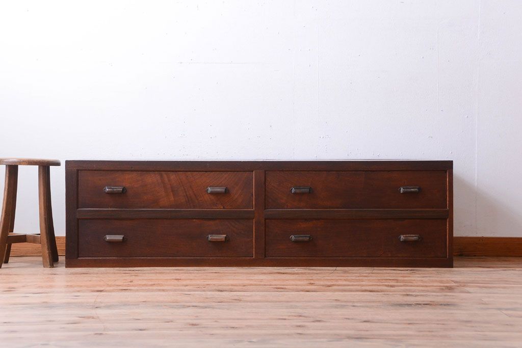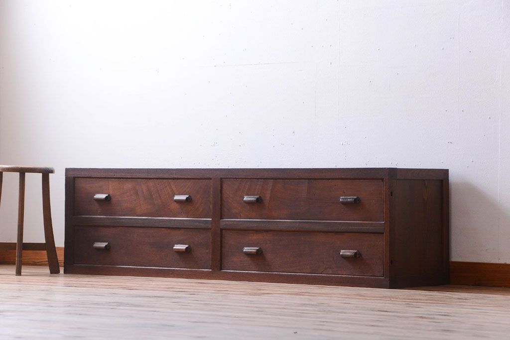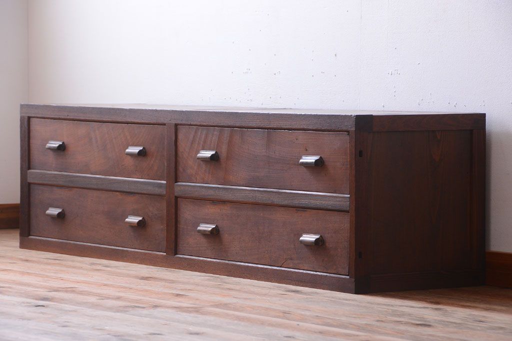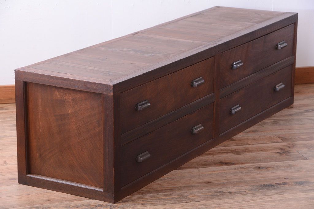 和製アンティーク 前面欅材!框が重厚な時代箪笥ローボード(引き出し・ローチェスト)(1)です。