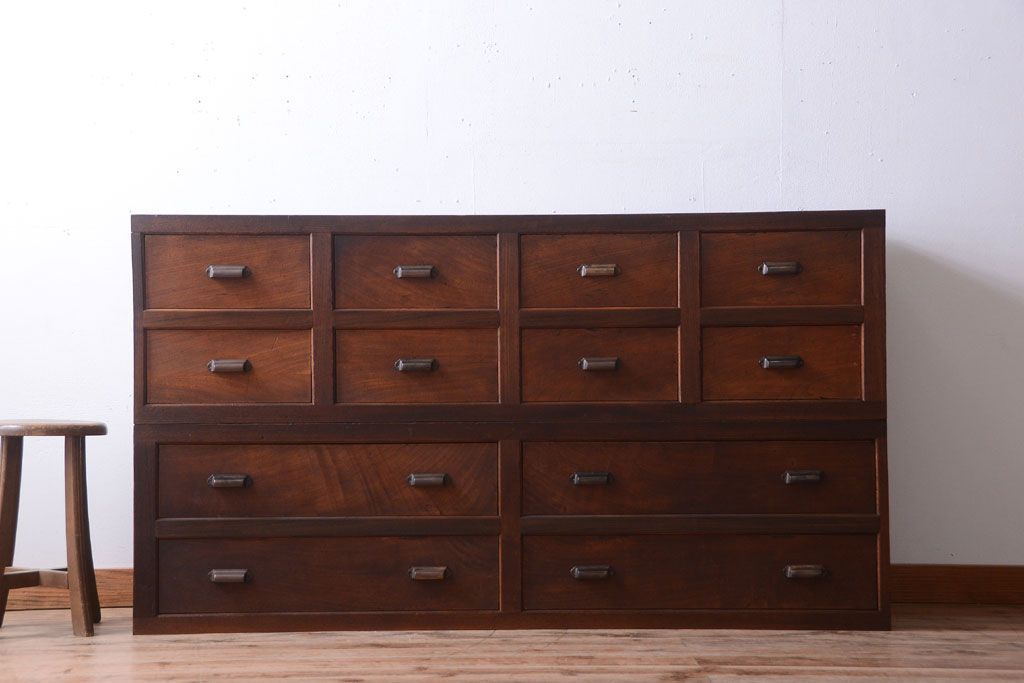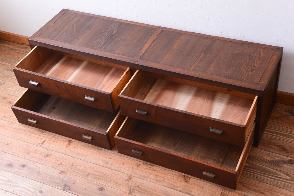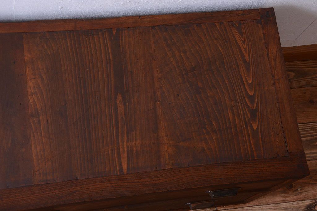 アンティーク家具 和製アンティーク 前面欅材!框が重厚な時代箪笥ローボード(引き出し・ローチェスト)(1)
