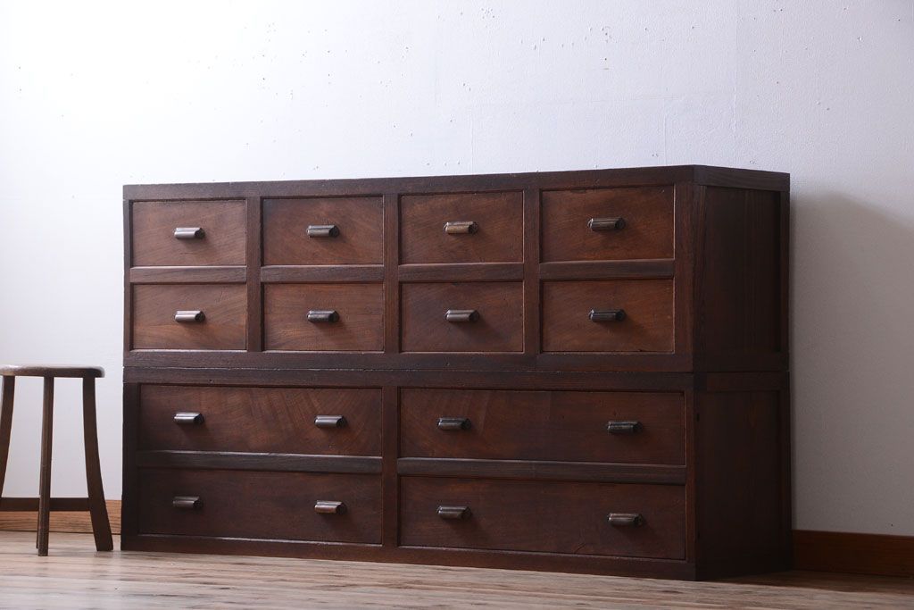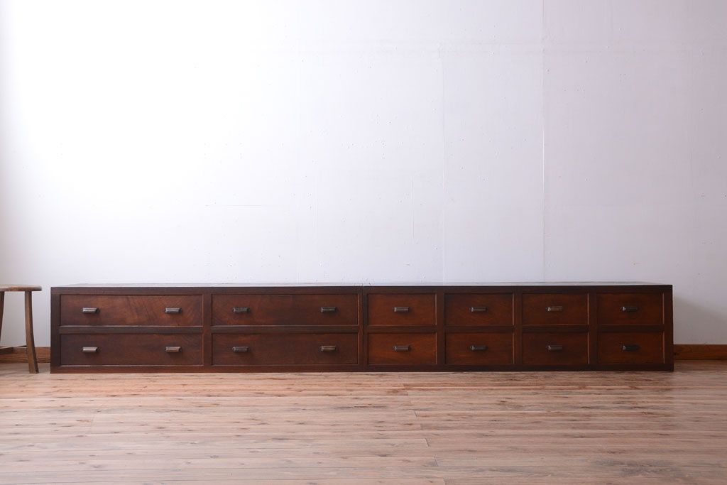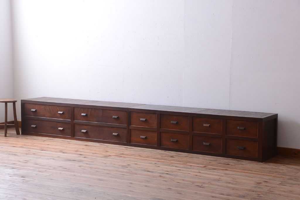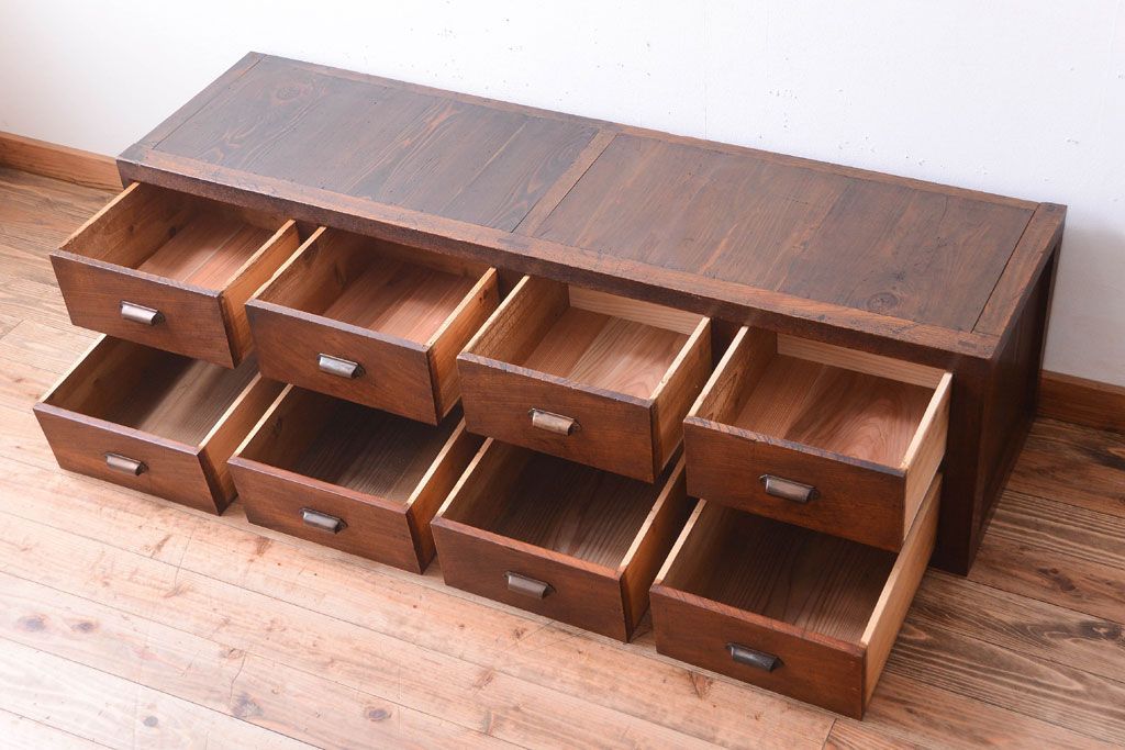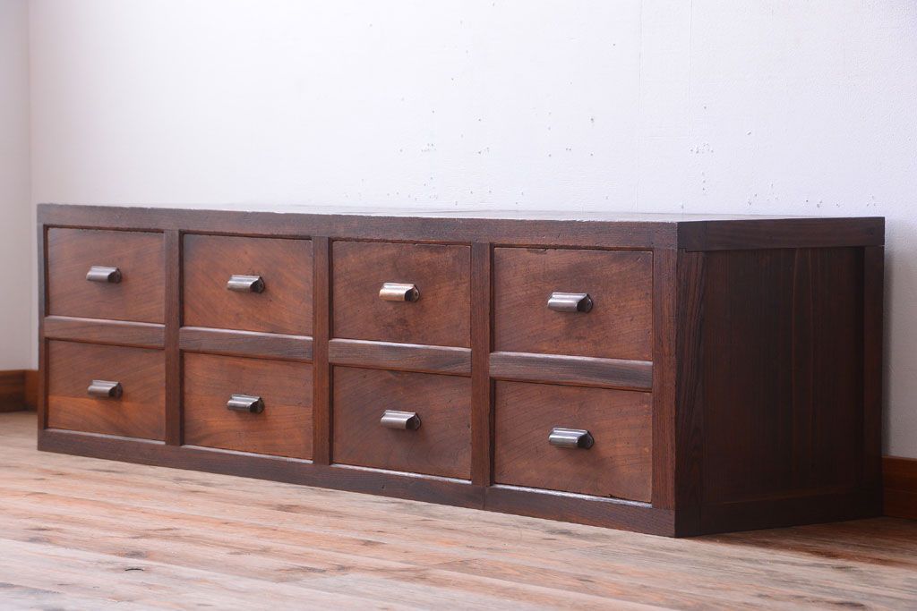 アンティーク家具 和製アンティーク 前面欅材!框が重厚な時代箪笥ローボード(引き出し・ローチェスト)(2)