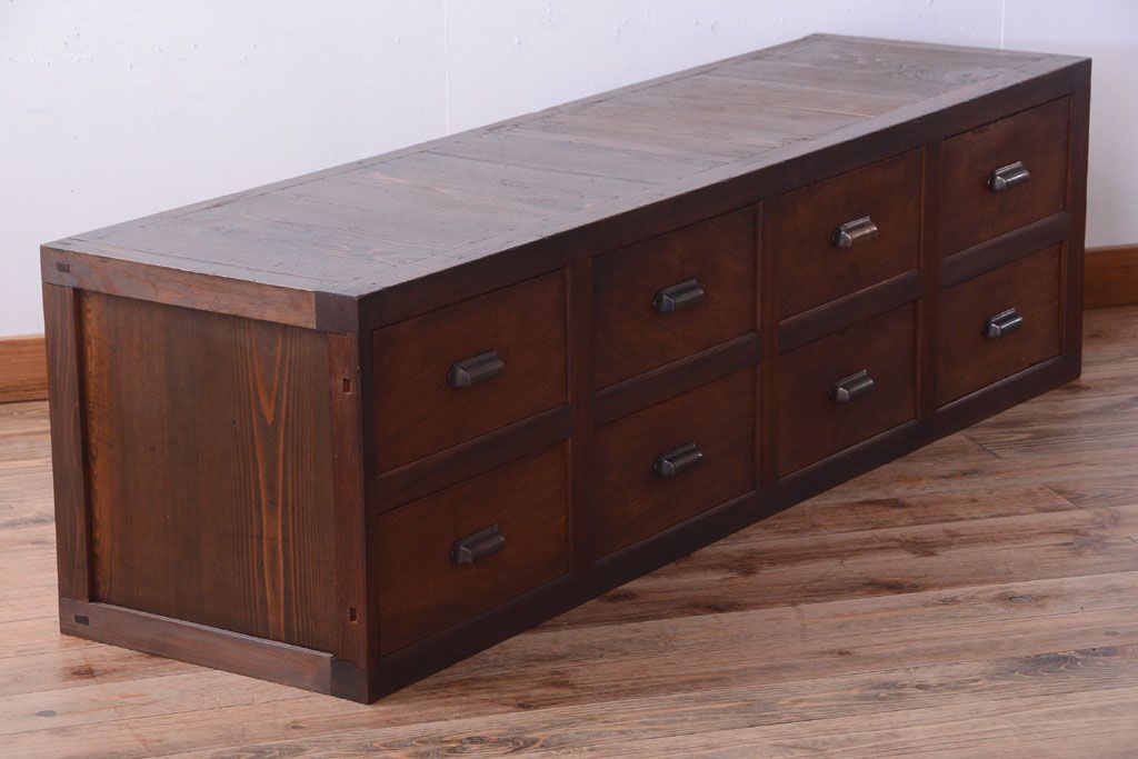 和製アンティーク 前面欅材!框が重厚な時代箪笥ローボード(引き出し・ローチェスト)(2)です。