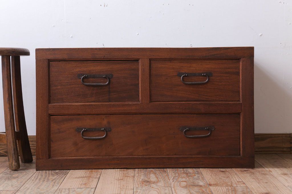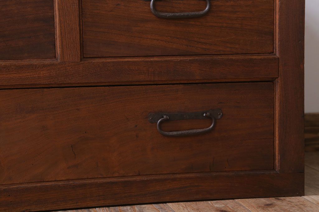 ラフジュ工房> 和箪笥 > アンティーク家具 和製アンティーク 前面欅材!框が重厚な時代箪笥ローボード(引き出し・ローチェスト)(3)