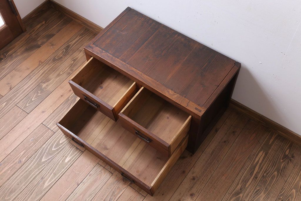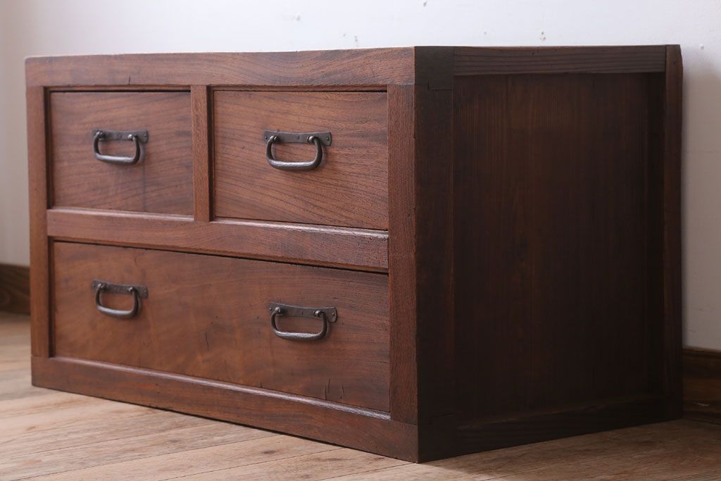 ラフジュ工房> キャビネット・戸棚> テレビ台・ローボード > アンティーク家具 和製アンティーク 前面欅材!框が重厚な時代箪笥ローボード(引き出し・ローチェスト)(3)