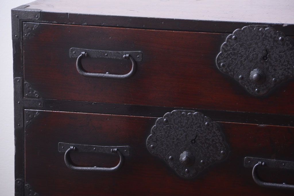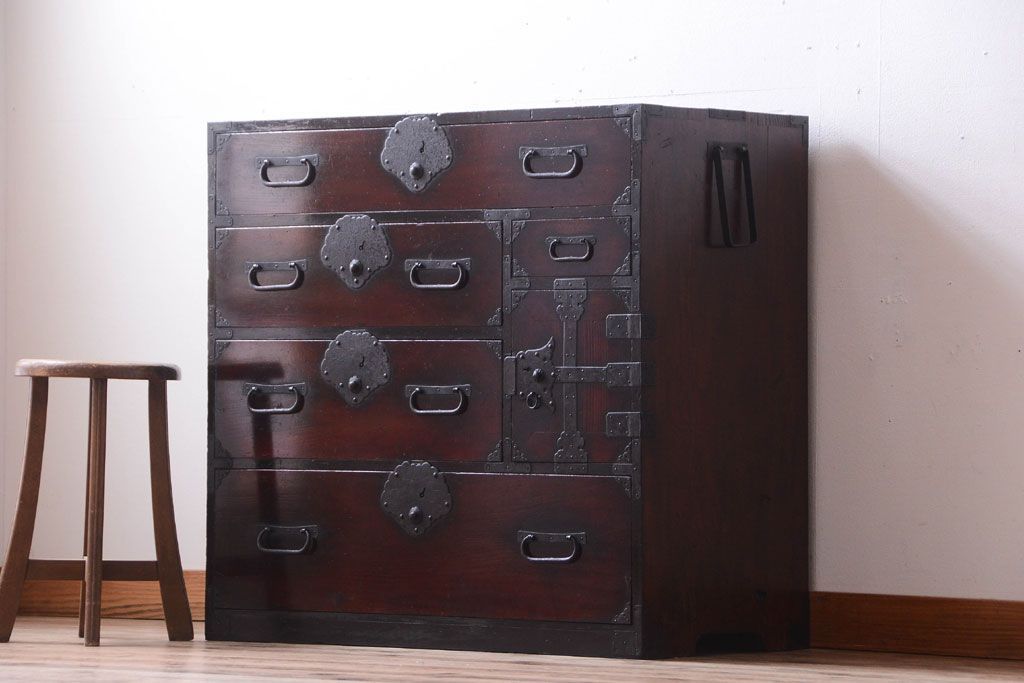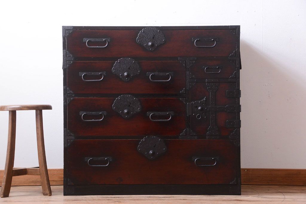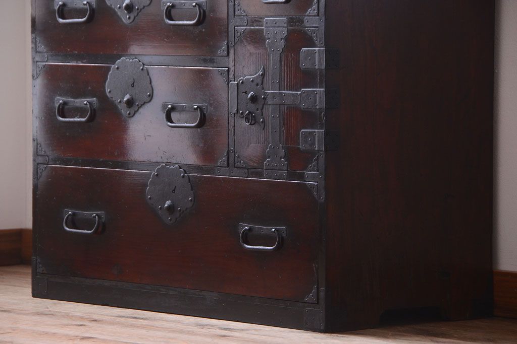 和箪笥> 衣装箪笥 > アンティーク家具 古民具・骨董 明治期 前面栗材!アンティーク衣装箪笥(時代箪笥)
