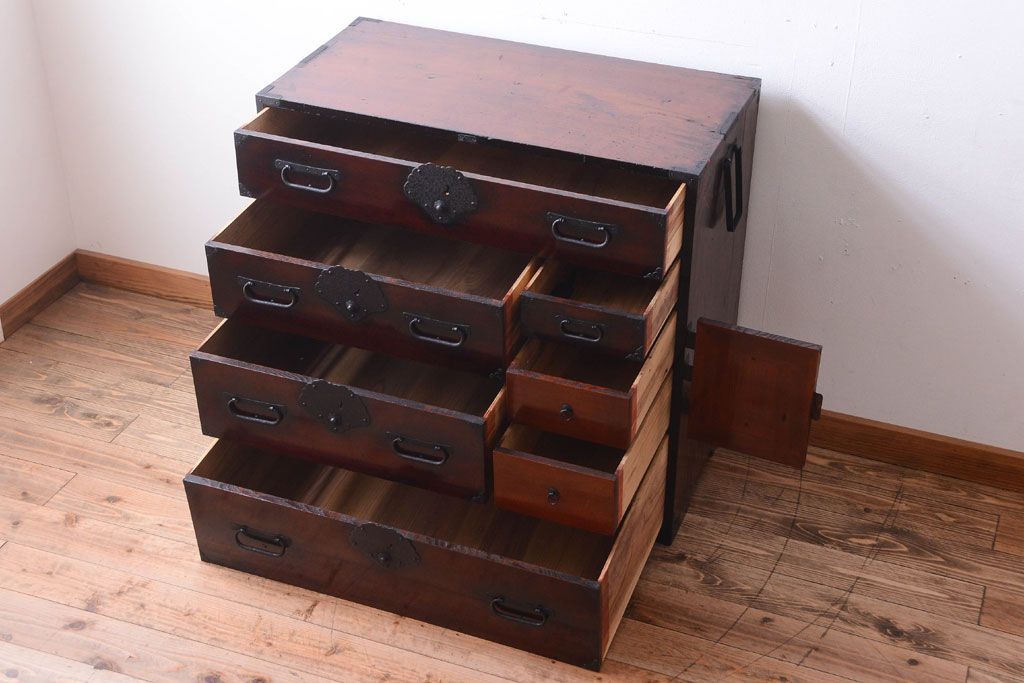 アンティーク家具 古民具・骨董 明治期 前面栗材!アンティーク衣装箪笥(時代箪笥)