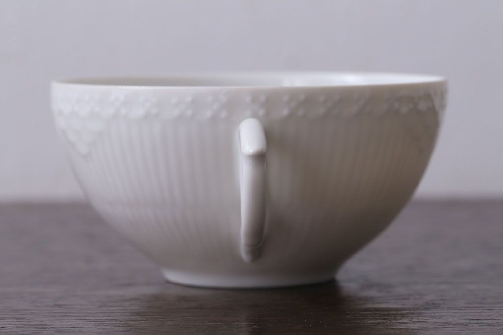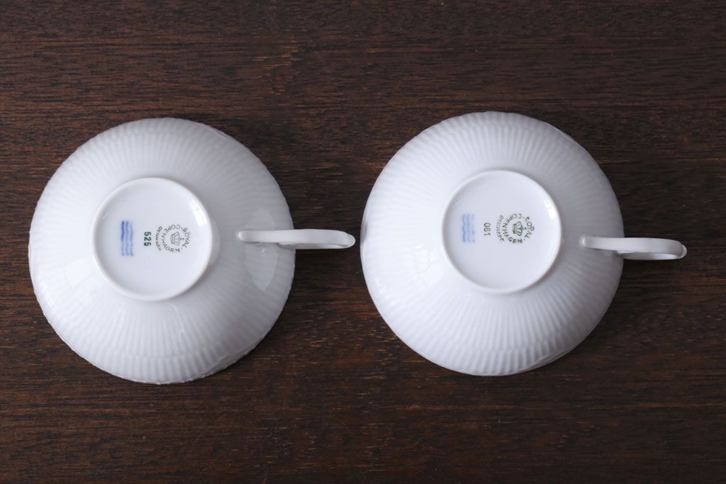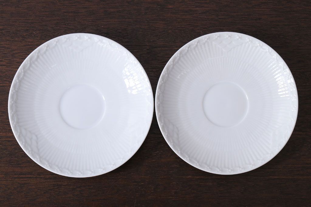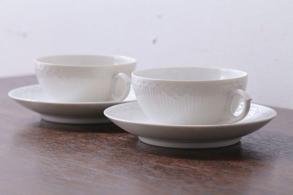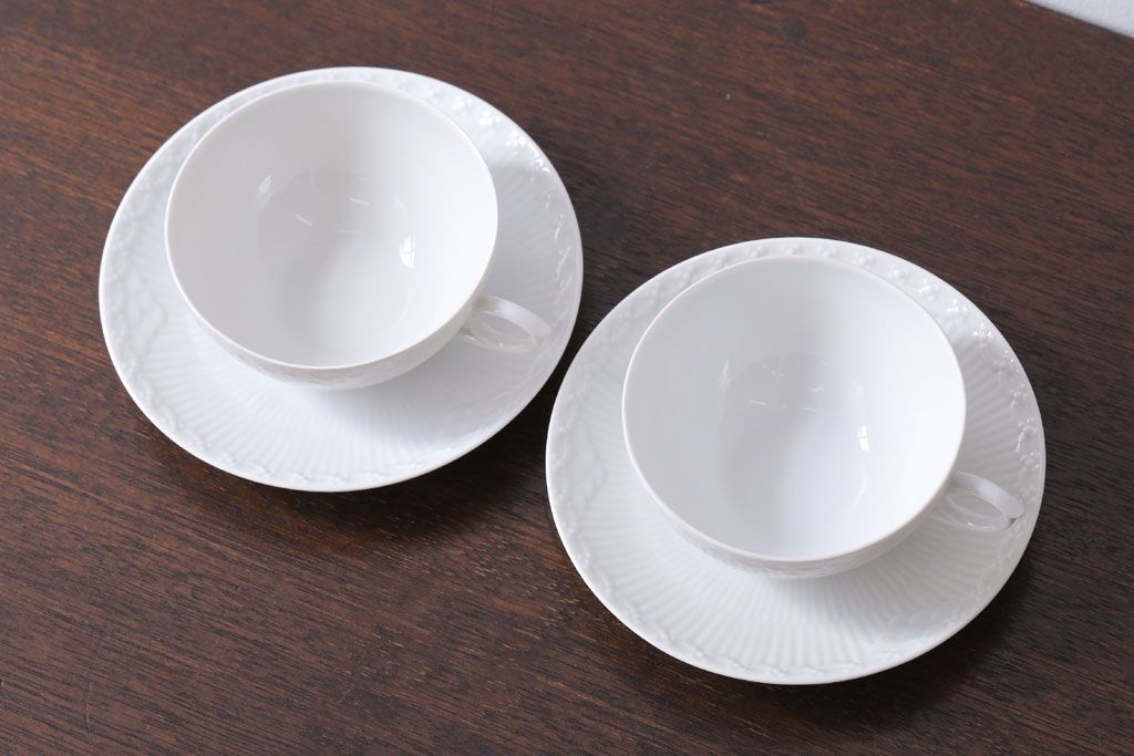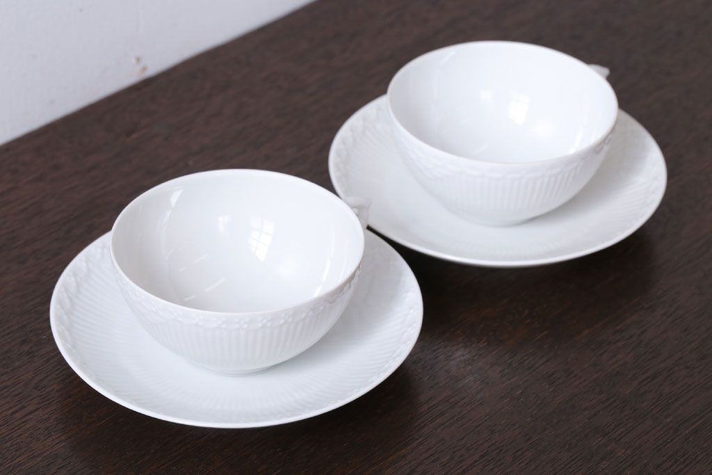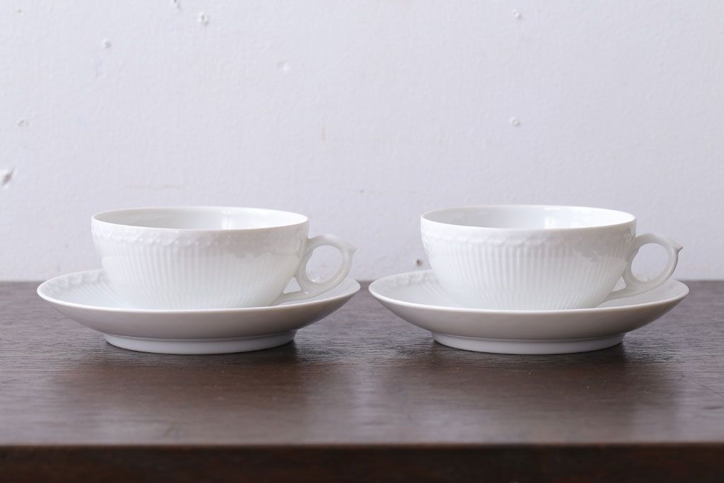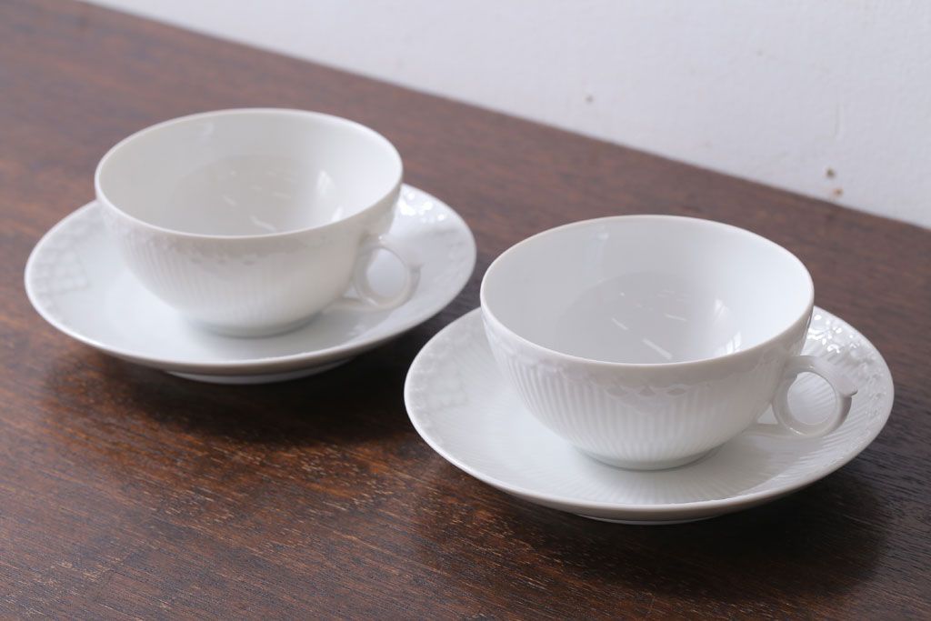 アンティーク雑貨 中古 ROYAL COPENHAGEN(ロイヤルコペンハーゲン) WHITE FLUTED HALF LACE(ホワイトフルーテッド・ハーフレース) カップ&ソーサー2客セット(洋食器)