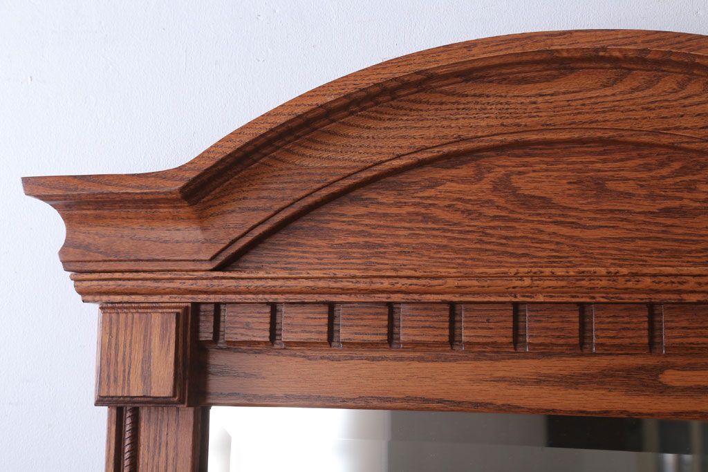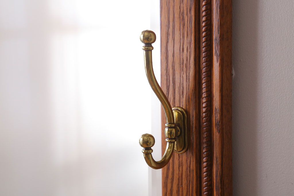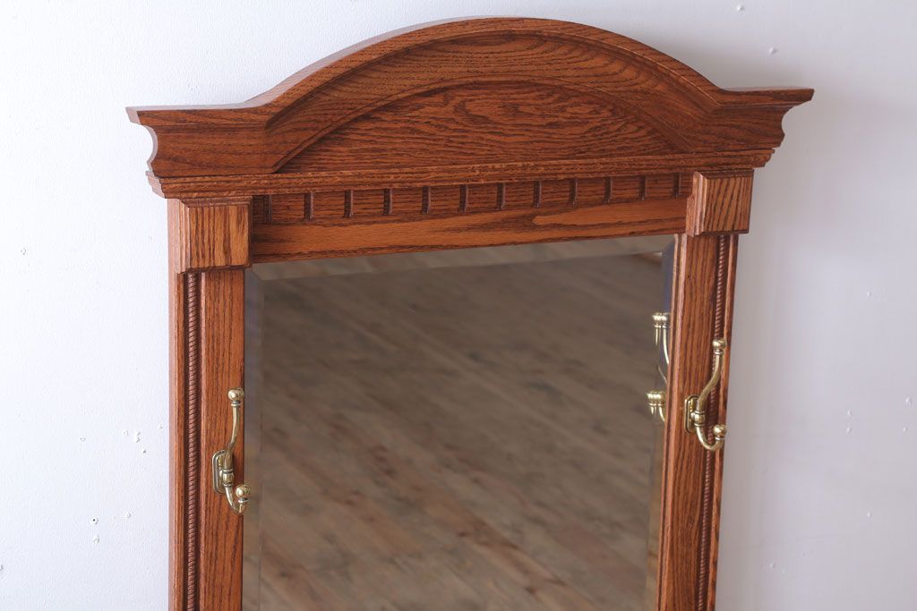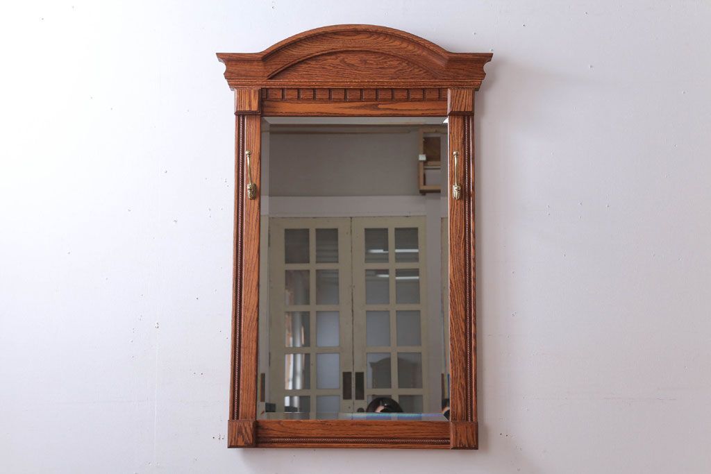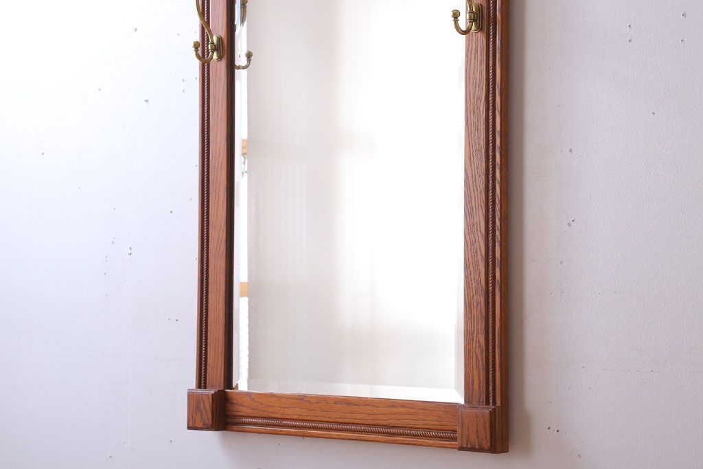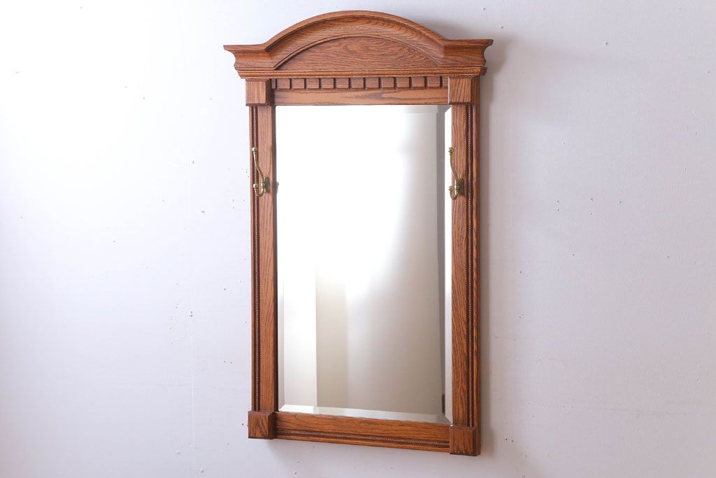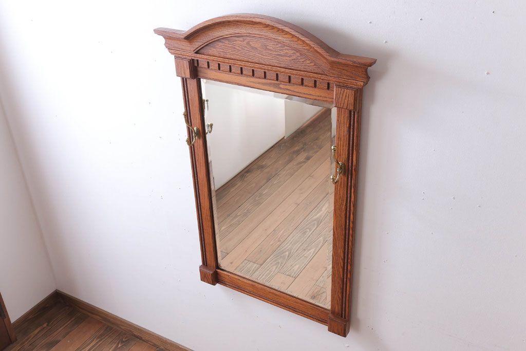 アンティーク雑貨 海外輸入家具 フック付き!オーク材の壁掛けミラー(ウォールミラー)(1)