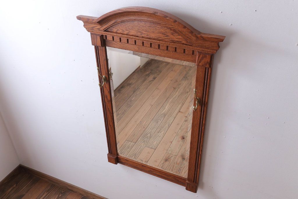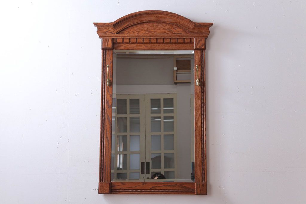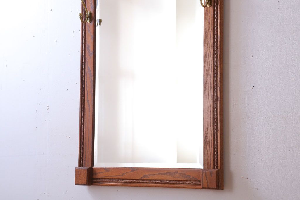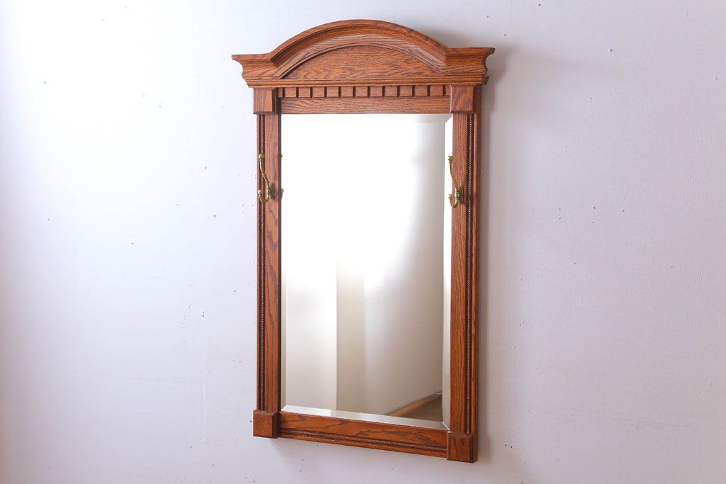 アンティーク雑貨 海外輸入家具 フック付き!オーク材の壁掛けミラー(ウォールミラー)(2)