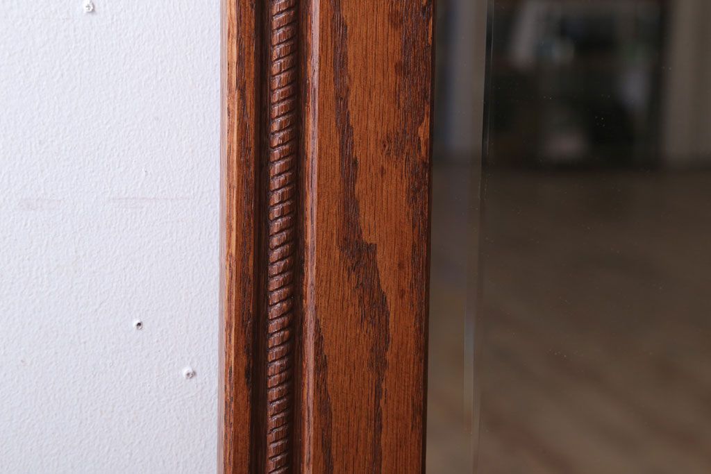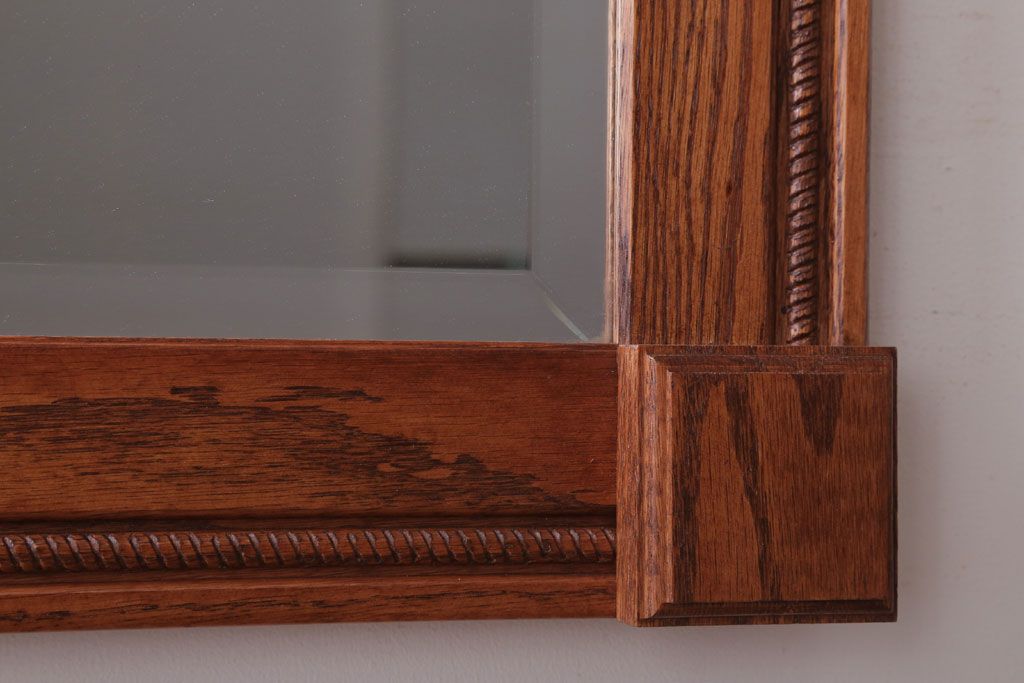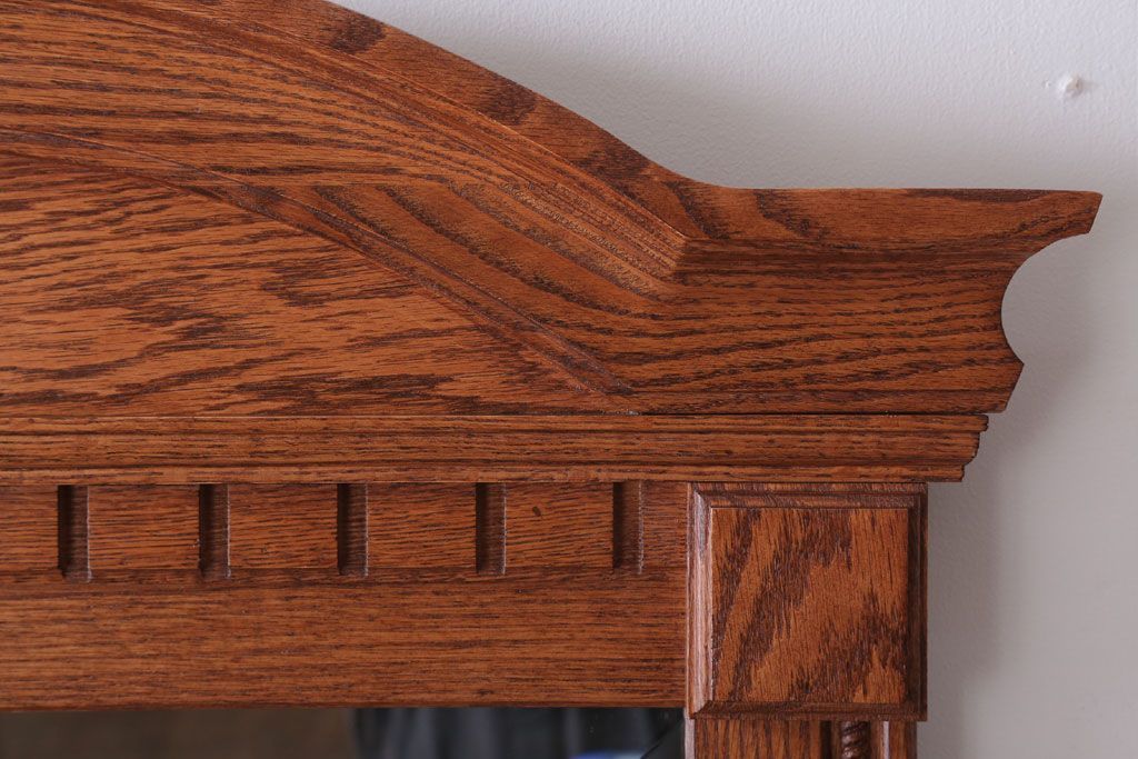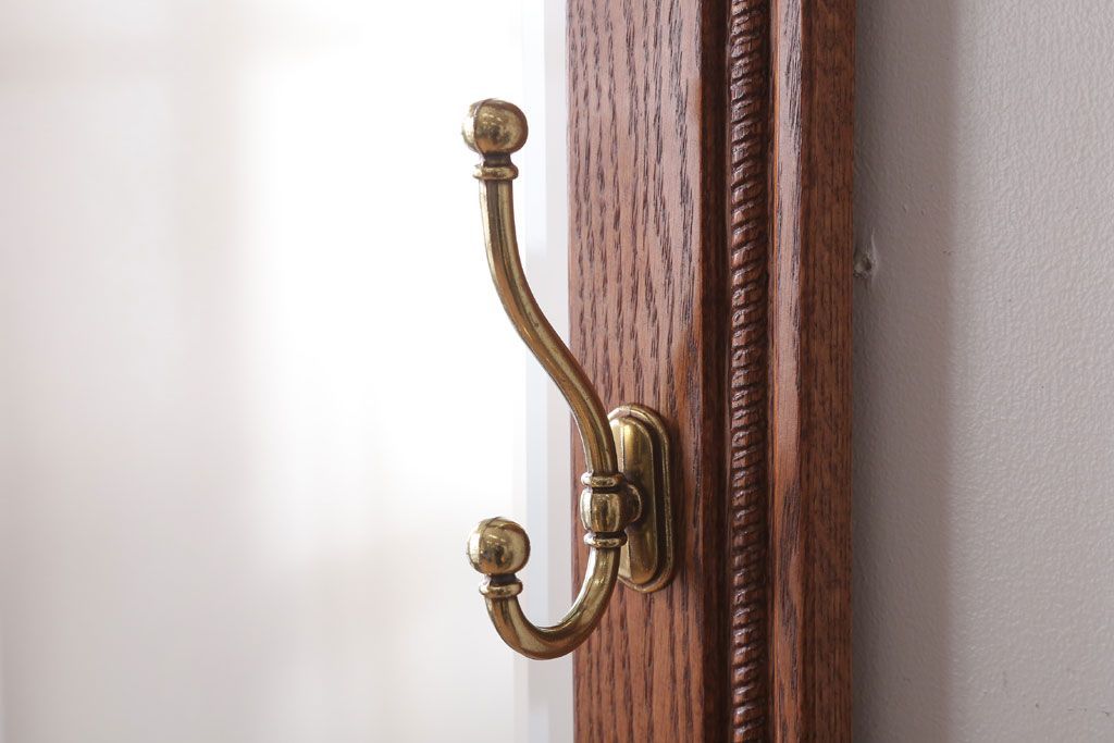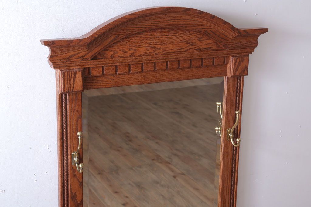 アンティーク雑貨 海外輸入家具 フック付き!オーク材の壁掛けミラー(ウォールミラー)(2)