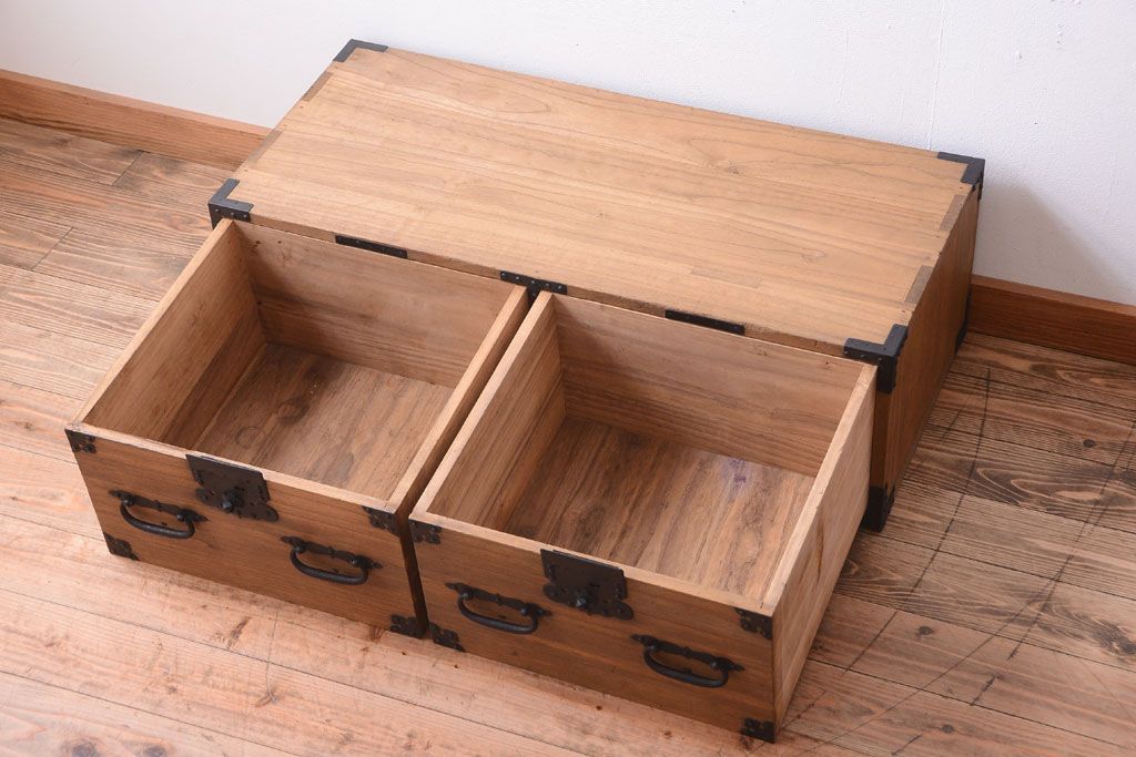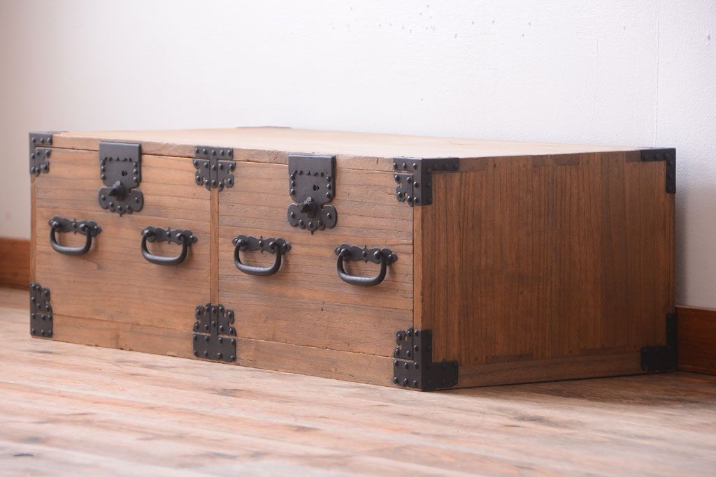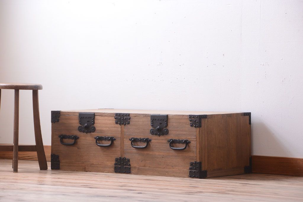 ラフジュ工房> 和箪笥 > アンティーク家具 古民具・骨董 明治期 アンティーク木味桐箪笥ローボード(引き出し・衣装箪笥)
