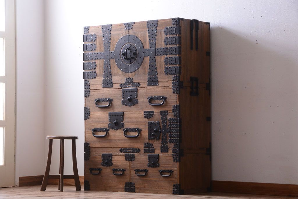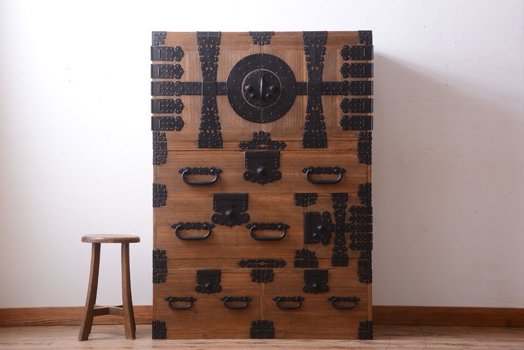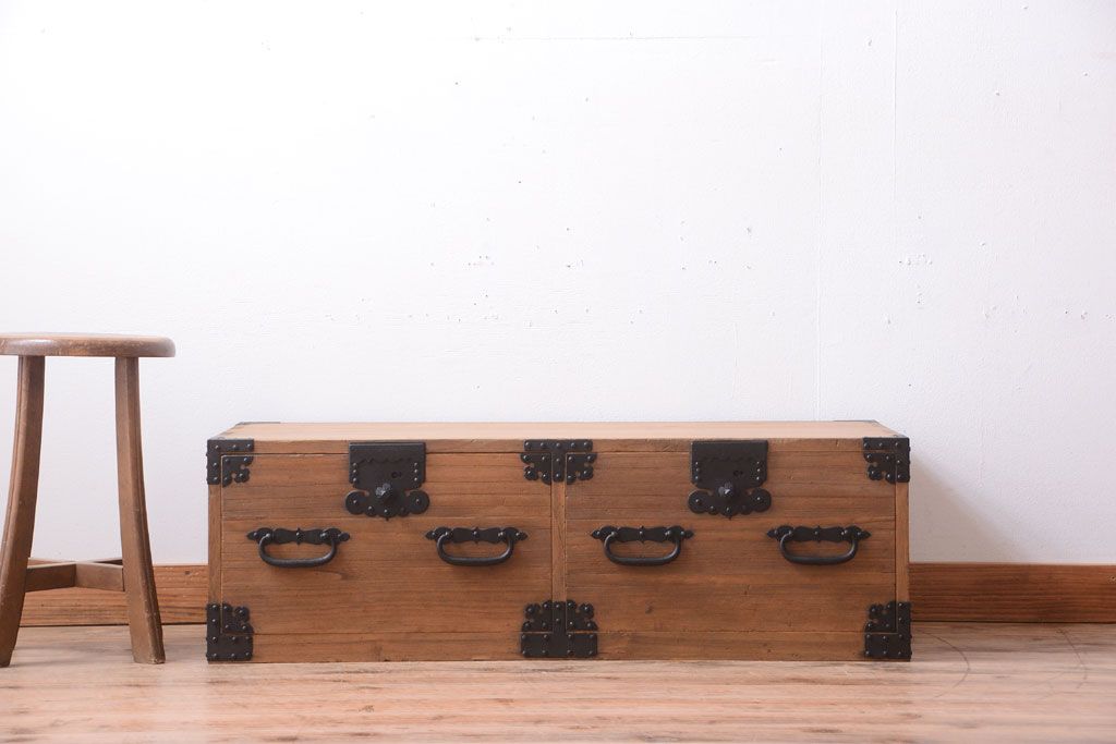 ラフジュ工房> 骨董・美術品 > アンティーク家具 古民具・骨董 明治期 アンティーク木味桐箪笥ローボード(引き出し・衣装箪笥)