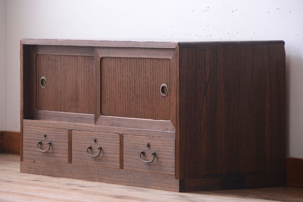 ラフジュ工房> 和箪笥 > アンティーク家具 和製アンティーク 引き出し3杯付き!古い桐箪笥ローボード