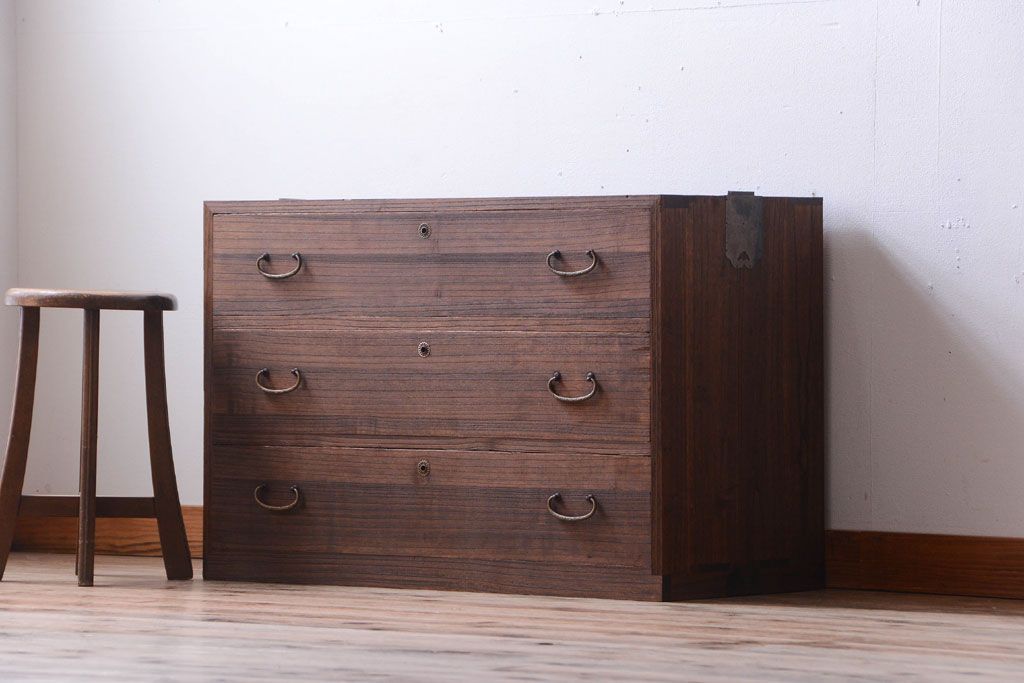 アンティーク家具 和製アンティーク 古い桐材のシンプルな時代箪笥ローボード(衣装箪笥)(2)
