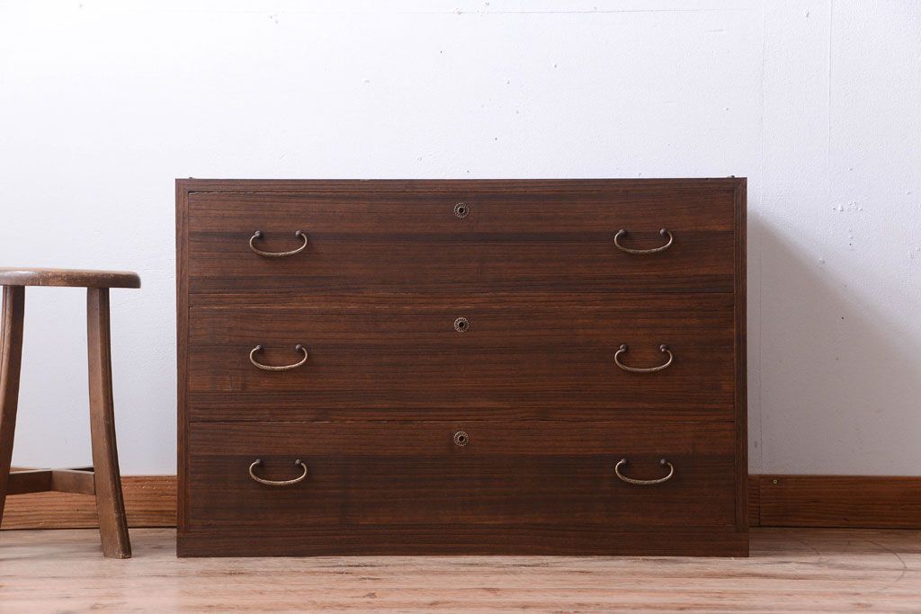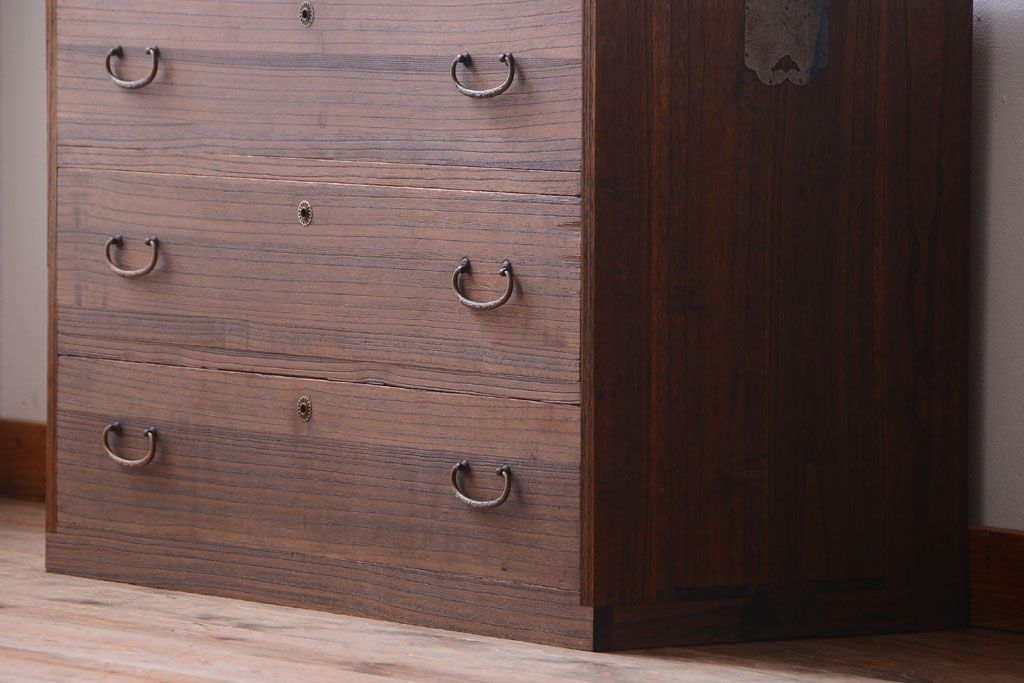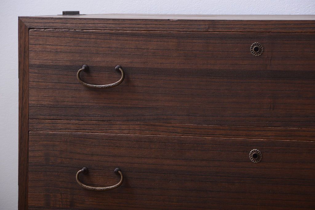 ラフジュ工房> 和箪笥 > アンティーク家具 和製アンティーク 古い桐材のシンプルな時代箪笥ローボード(衣装箪笥)(2)