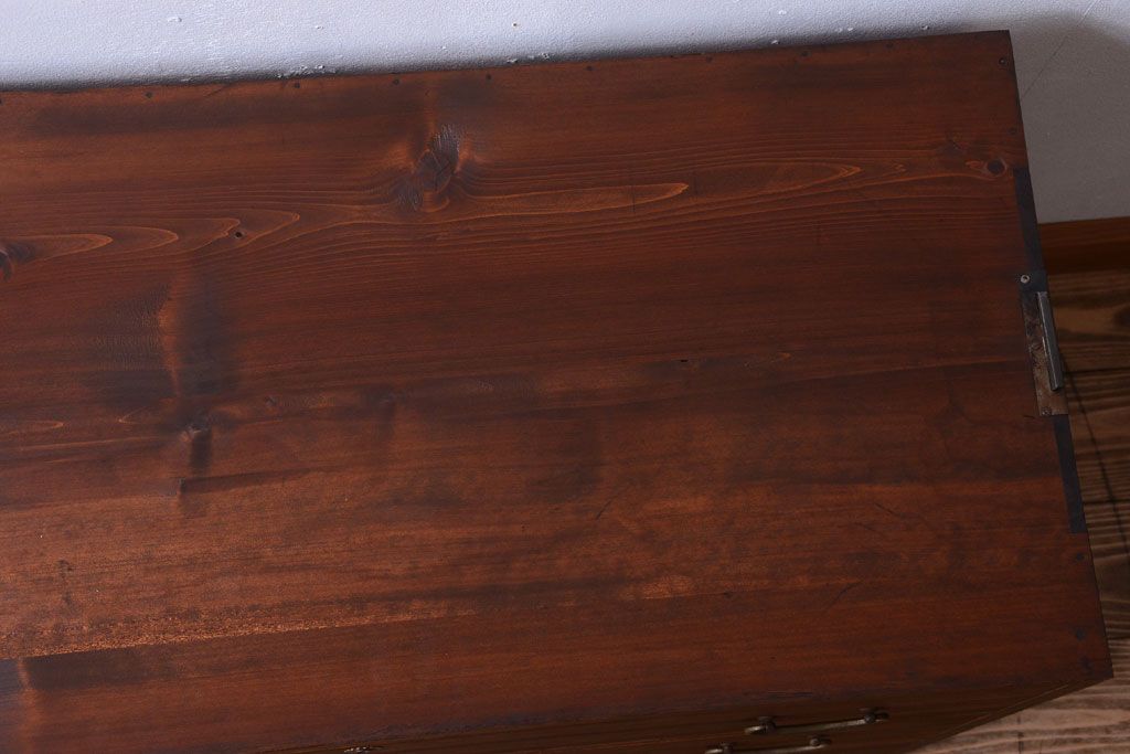 ラフジュ工房> キャビネット・戸棚> テレビ台・ローボード > アンティーク家具 和製アンティーク 古い桐材のシンプルな時代箪笥ローボード(衣装箪笥)(2)
