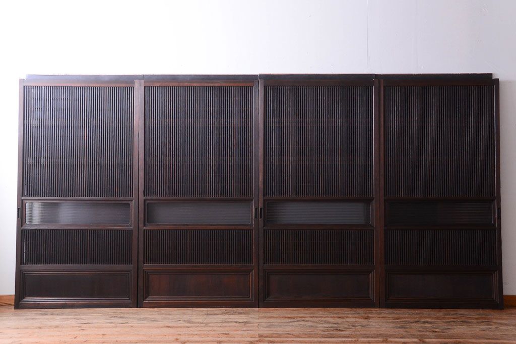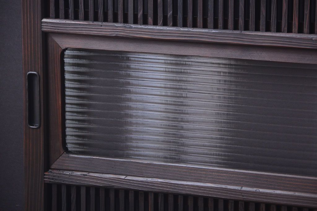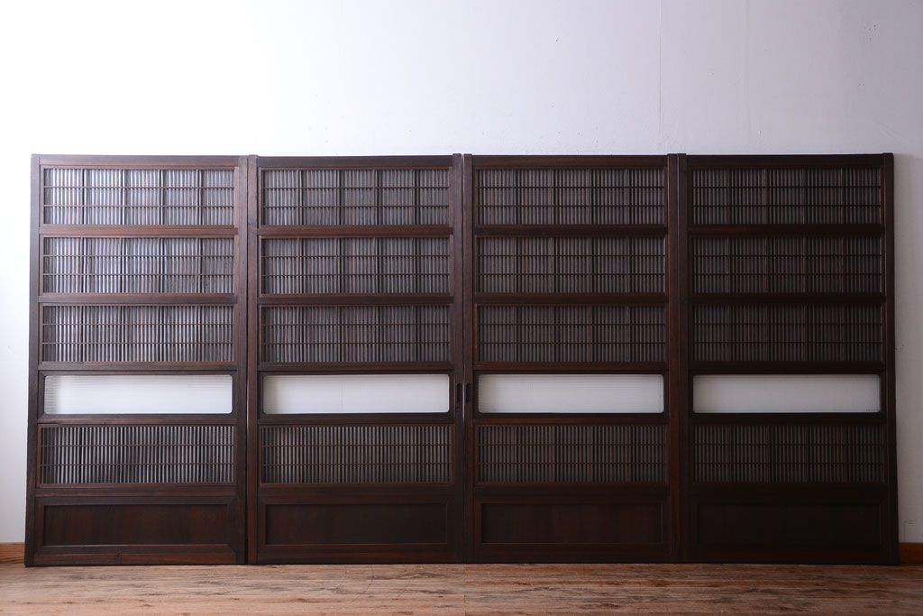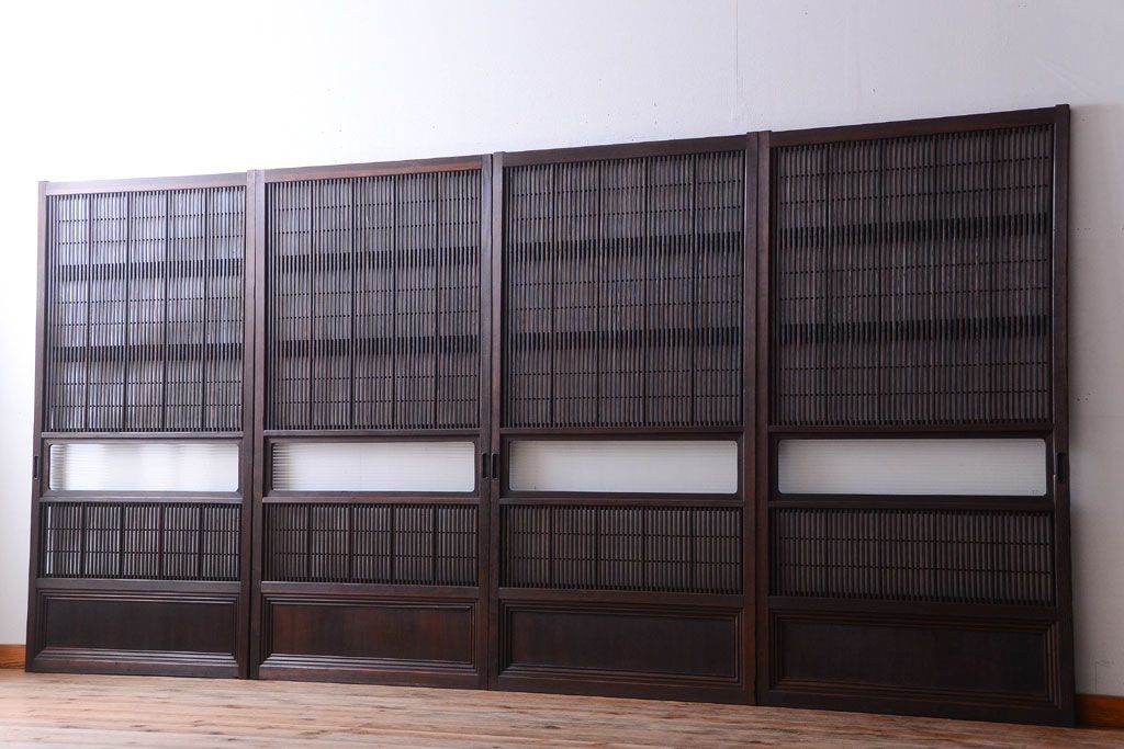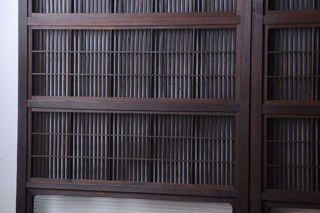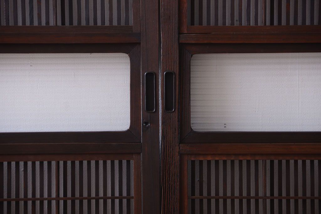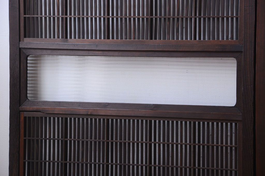 古民具・骨董 裏障子付き!モールガラス帯のアンティーク格子戸4枚セット