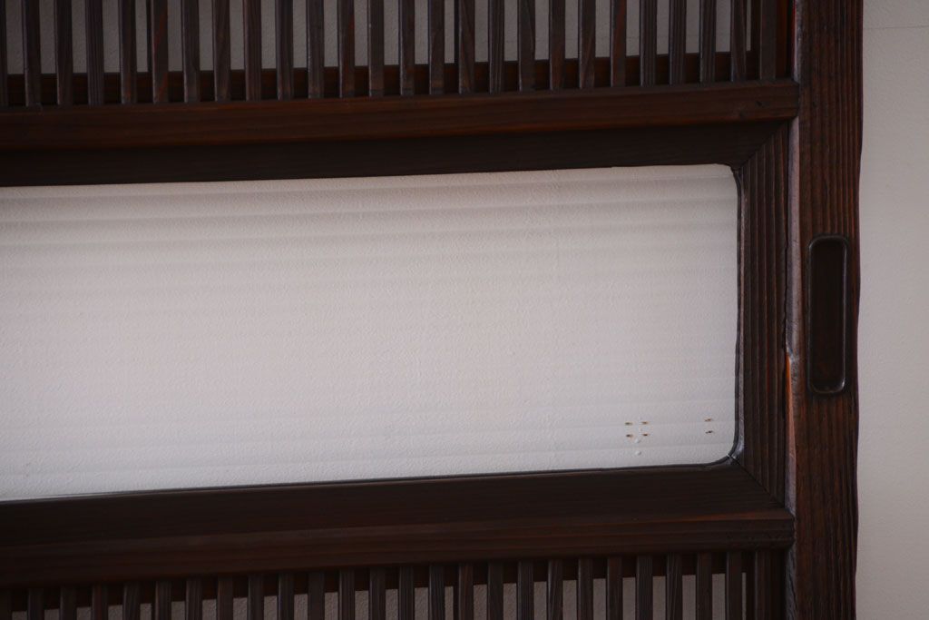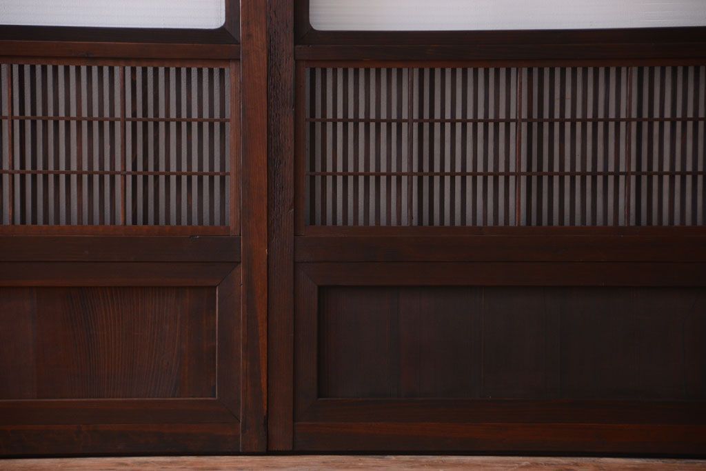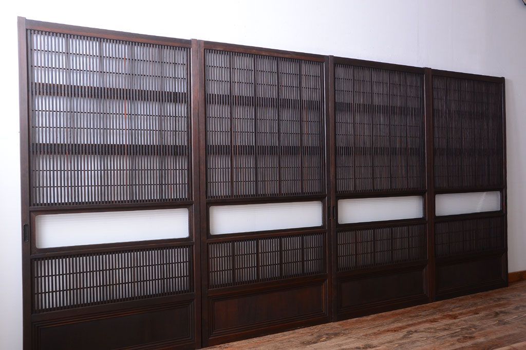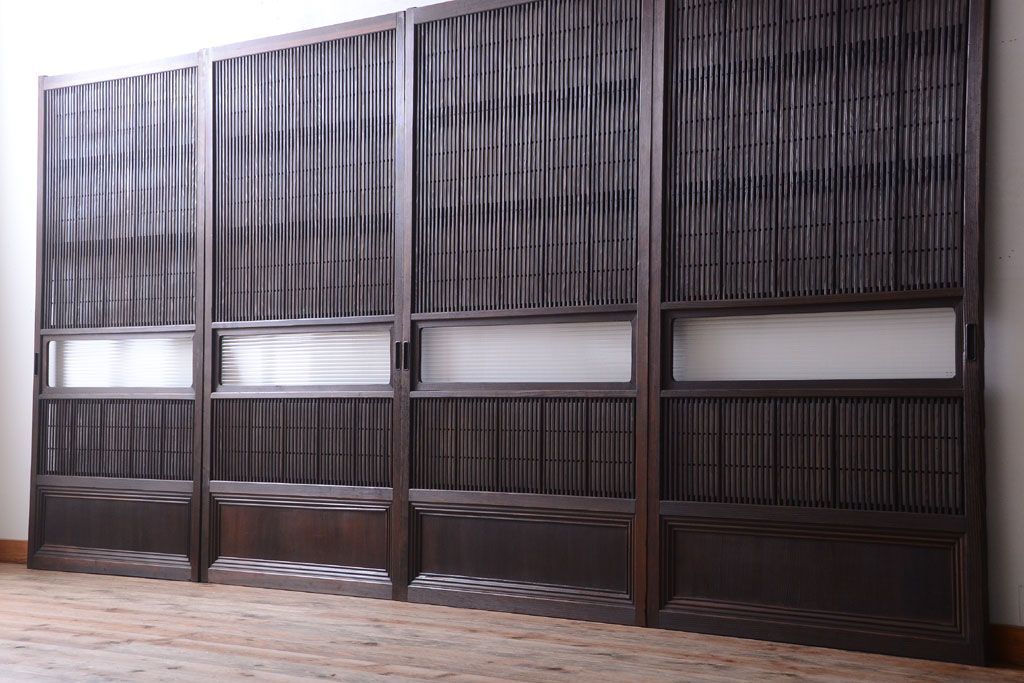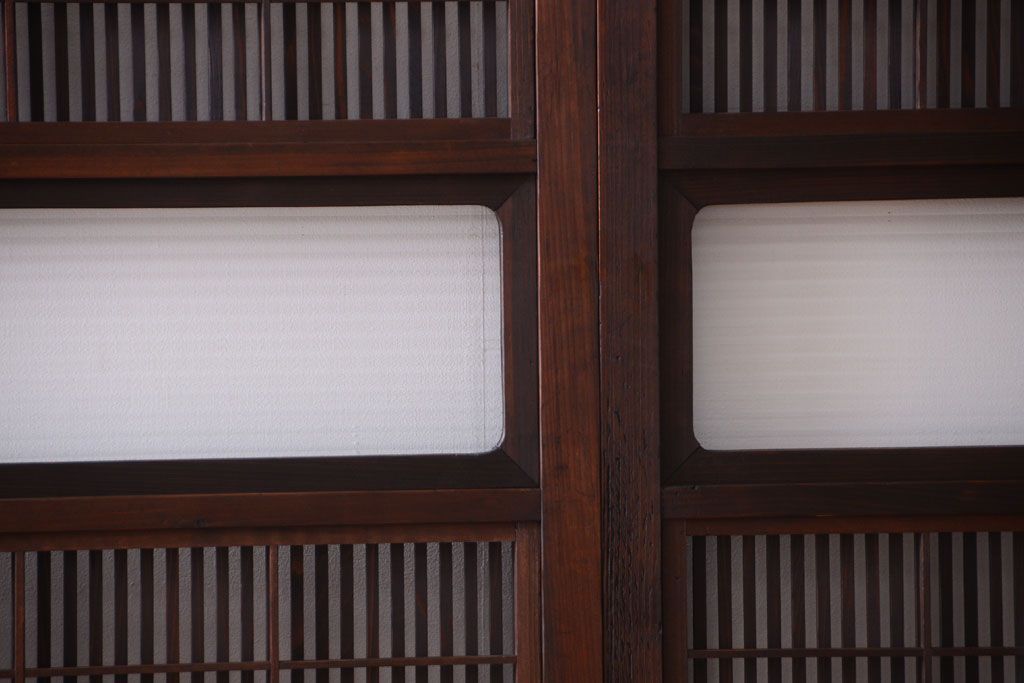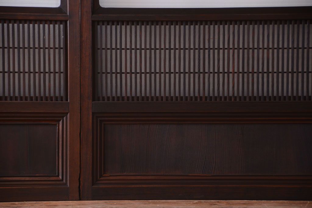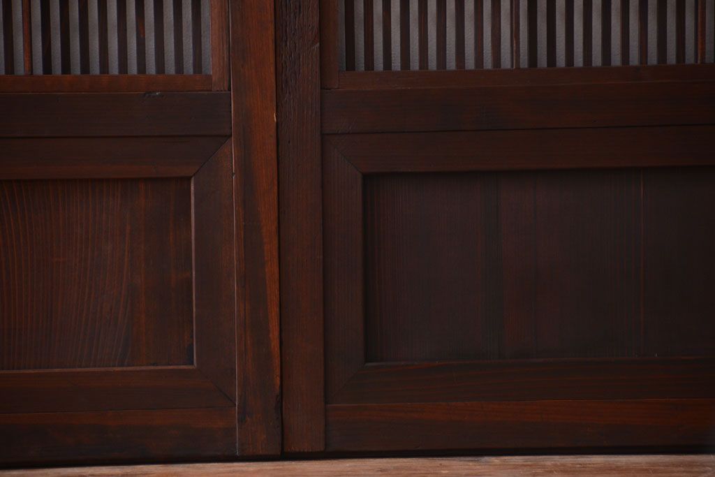 古民具・骨董 裏障子付き!モールガラス帯のアンティーク格子戸4枚セット