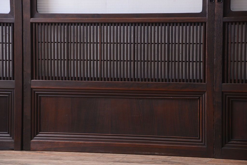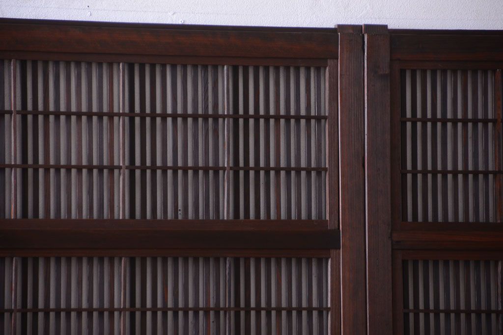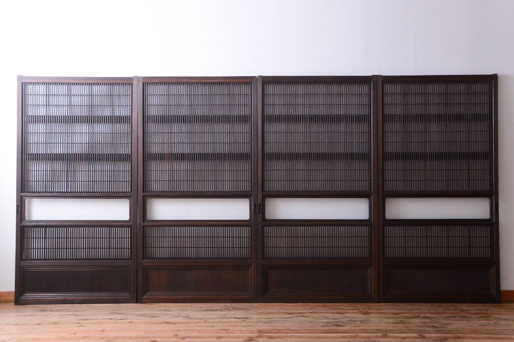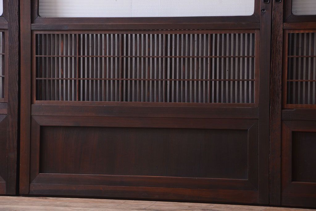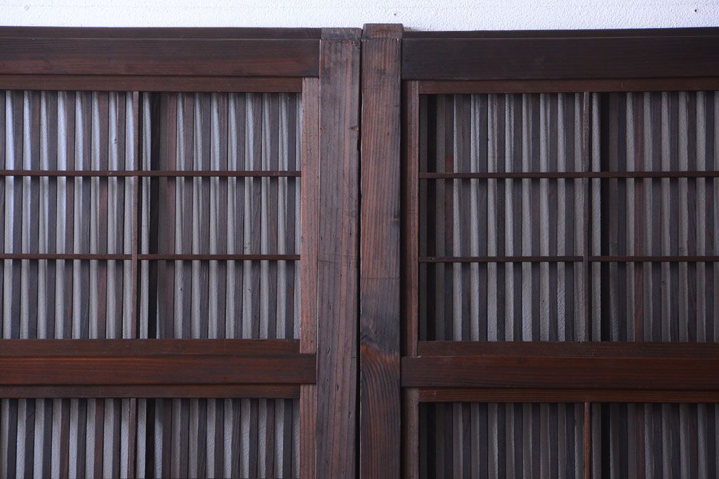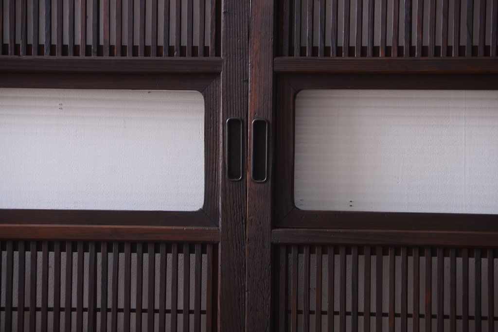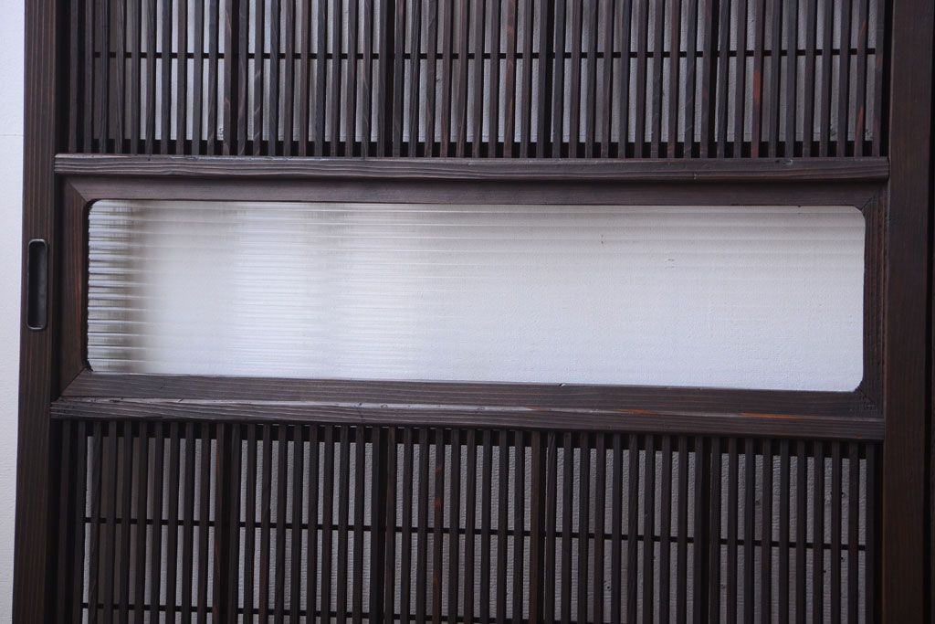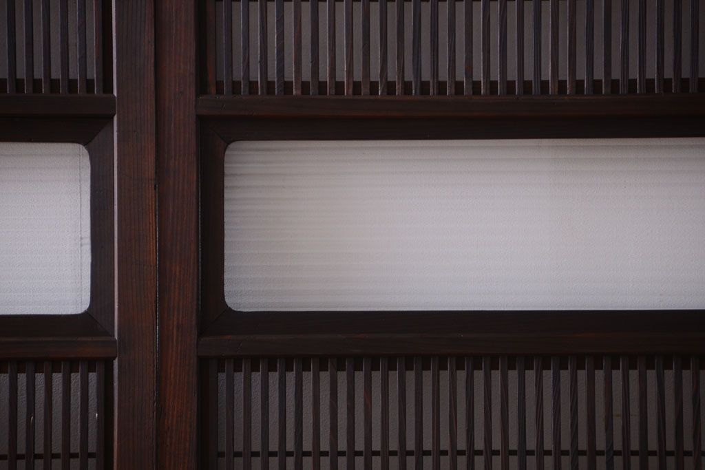 古民具・骨董 裏障子付き!モールガラス帯のアンティーク格子戸4枚セット