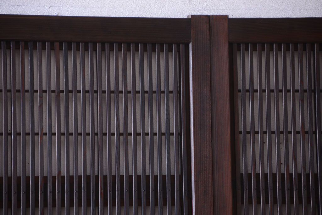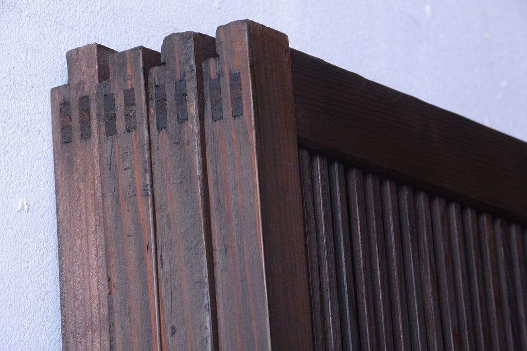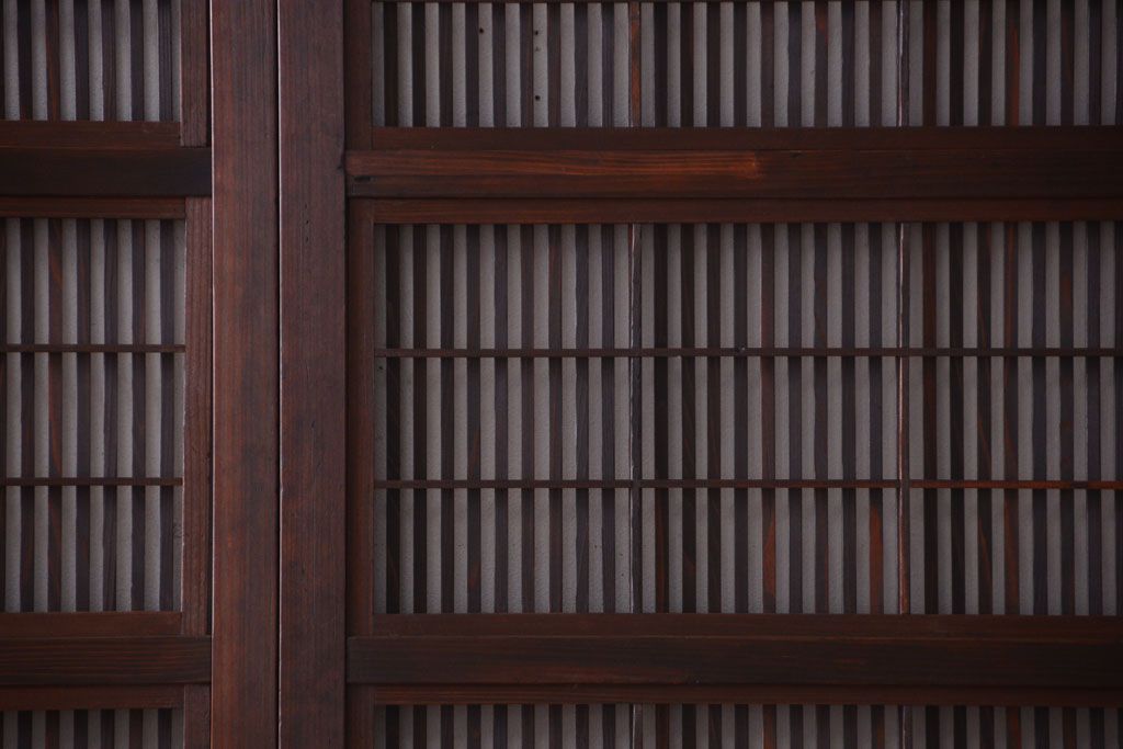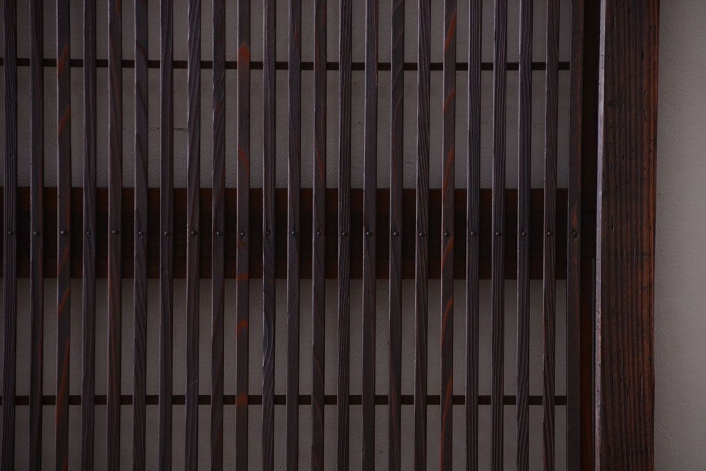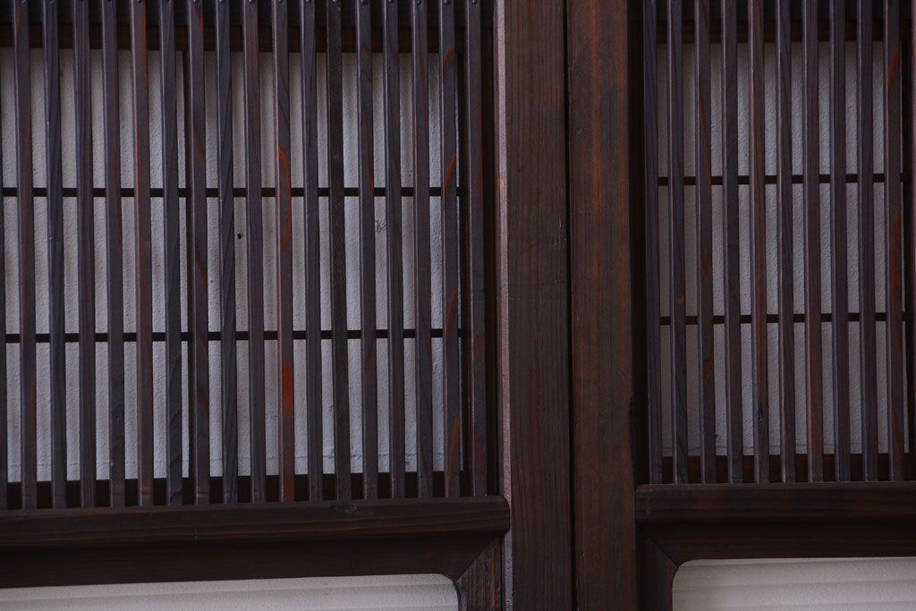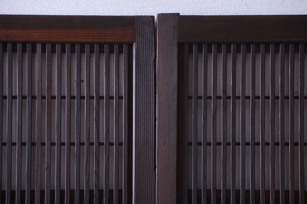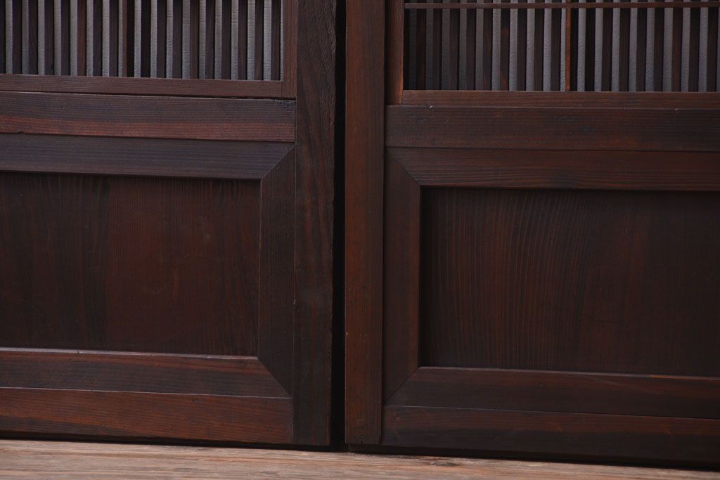 古民具・骨董 裏障子付き!モールガラス帯のアンティーク格子戸4枚セット