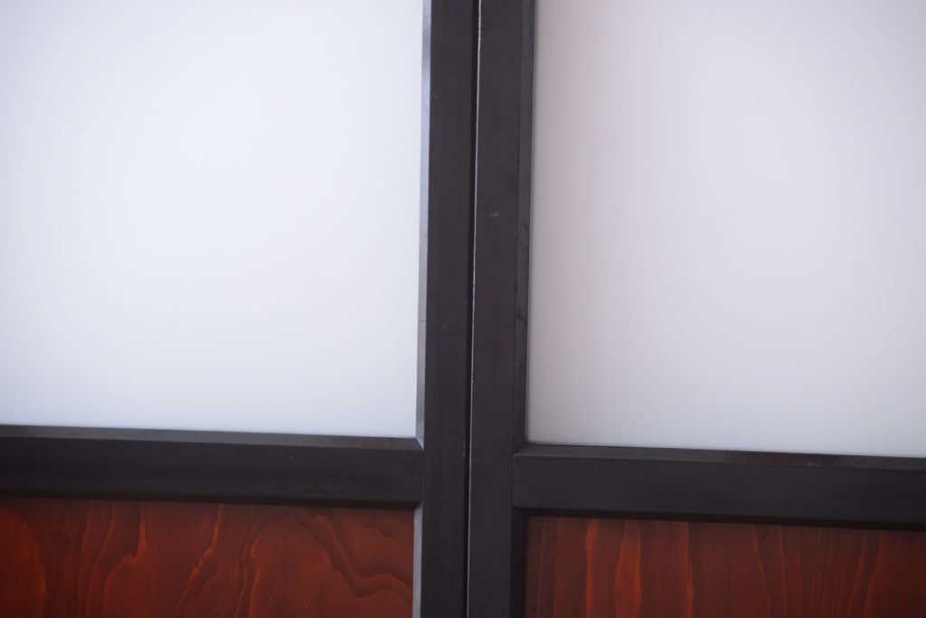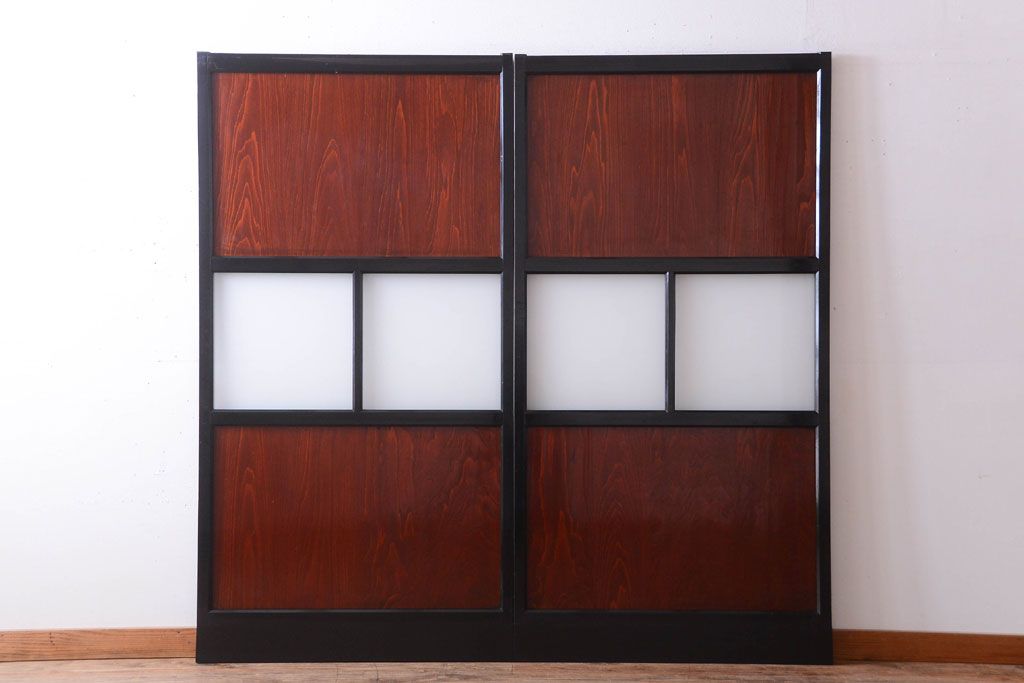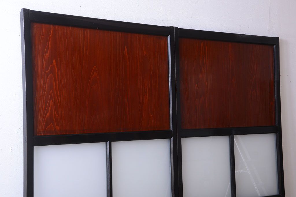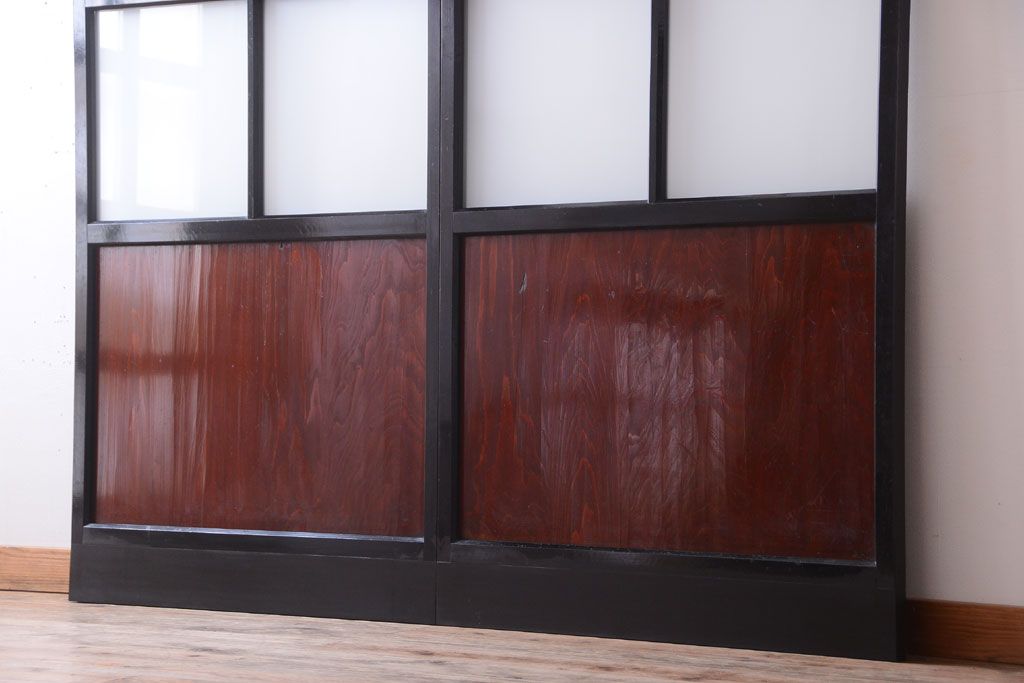 古民具・骨董 すりガラス入り!漆が美しいアンティークガラス帯戸2枚セット