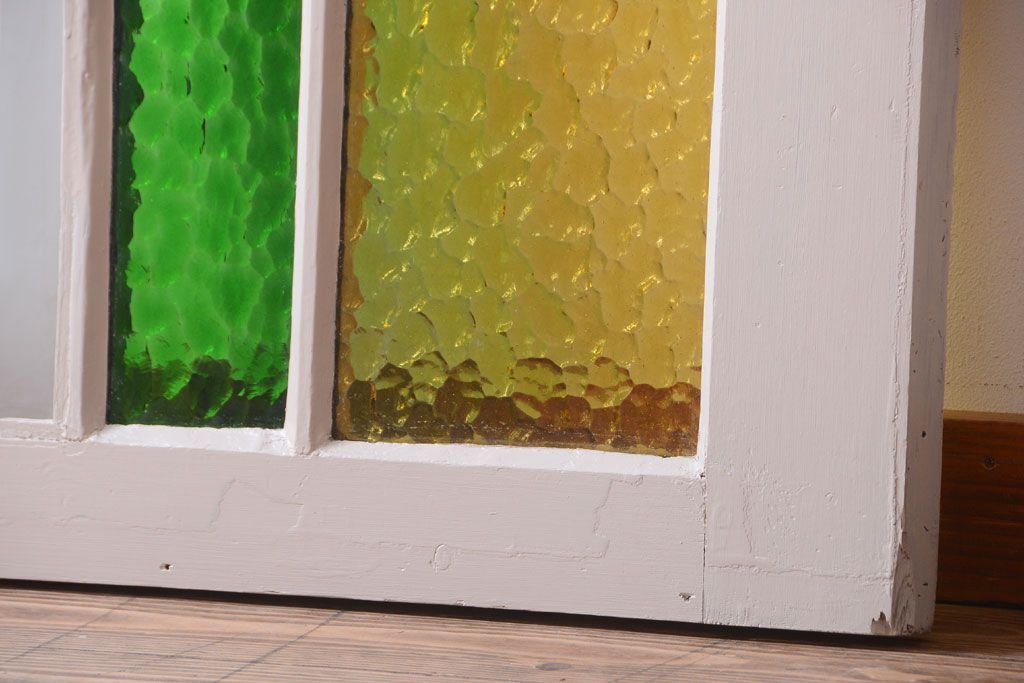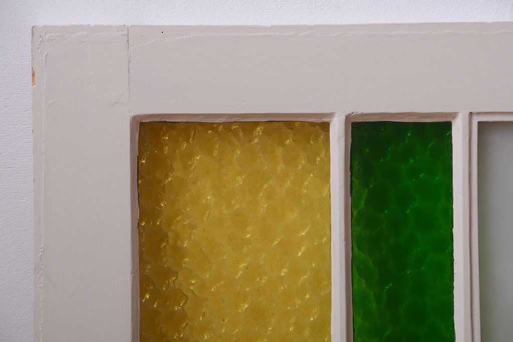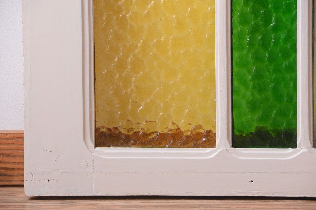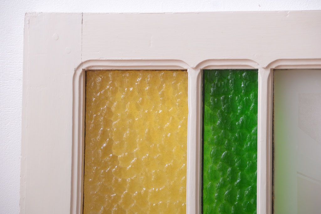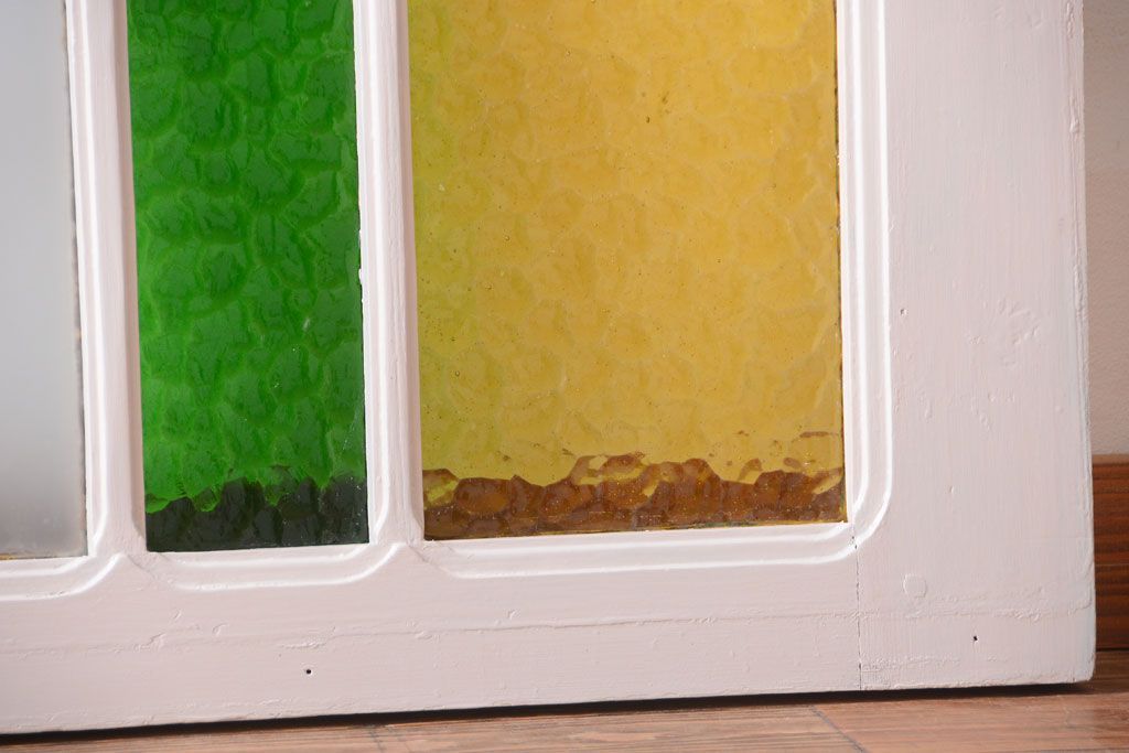 イギリスアンティーク 色ガラス入り!エッチングガラスのおしゃれなペイント明り取り(窓)