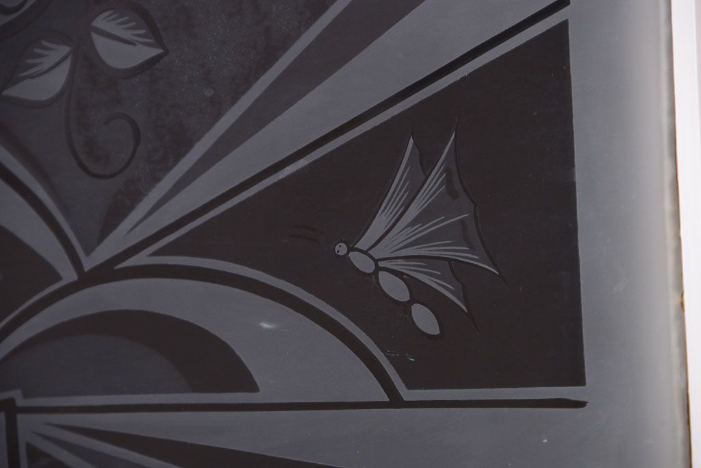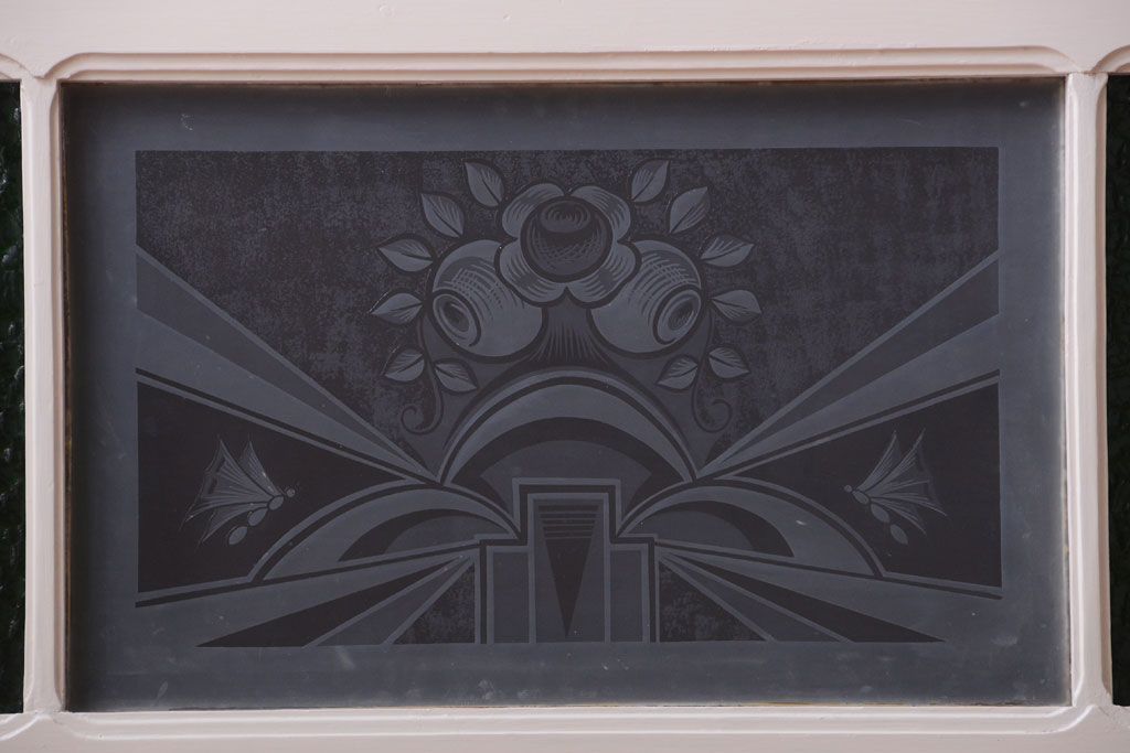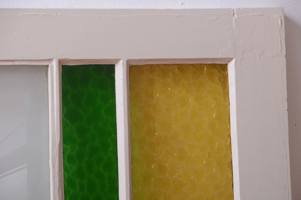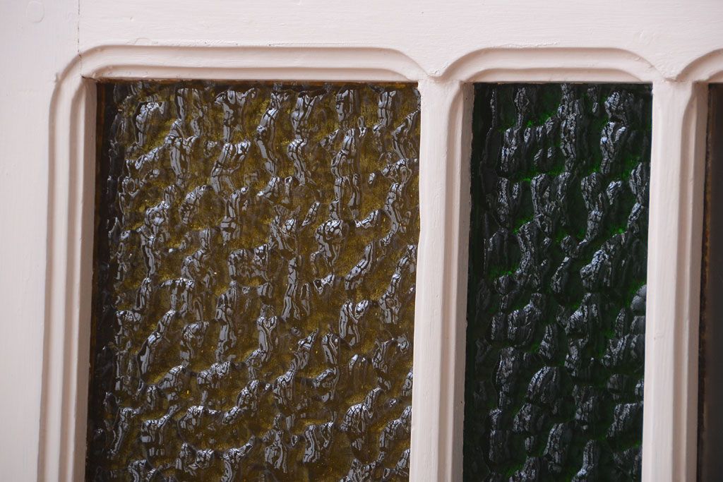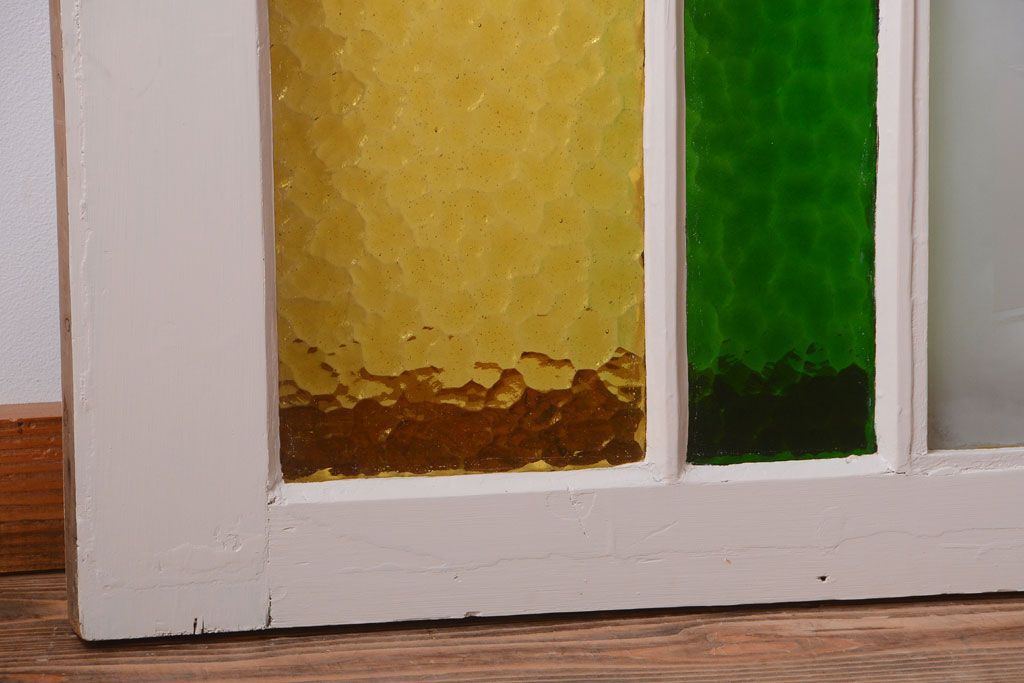 イギリスアンティーク 色ガラス入り!エッチングガラスのおしゃれなペイント明り取り(窓)