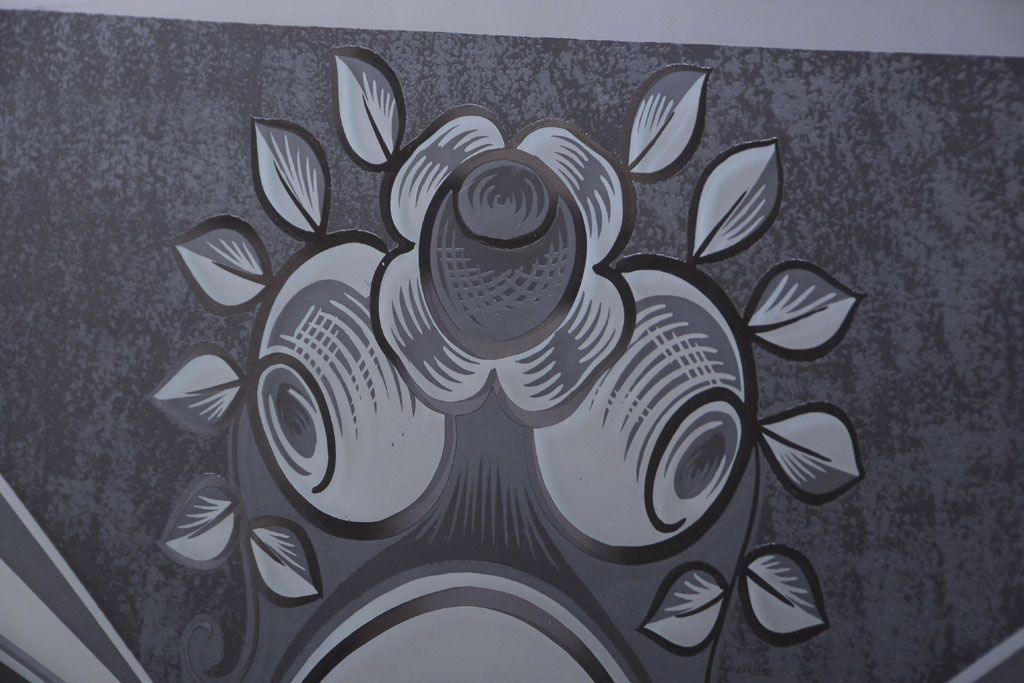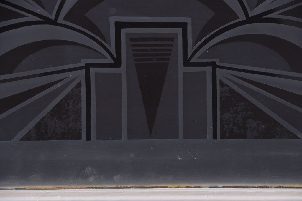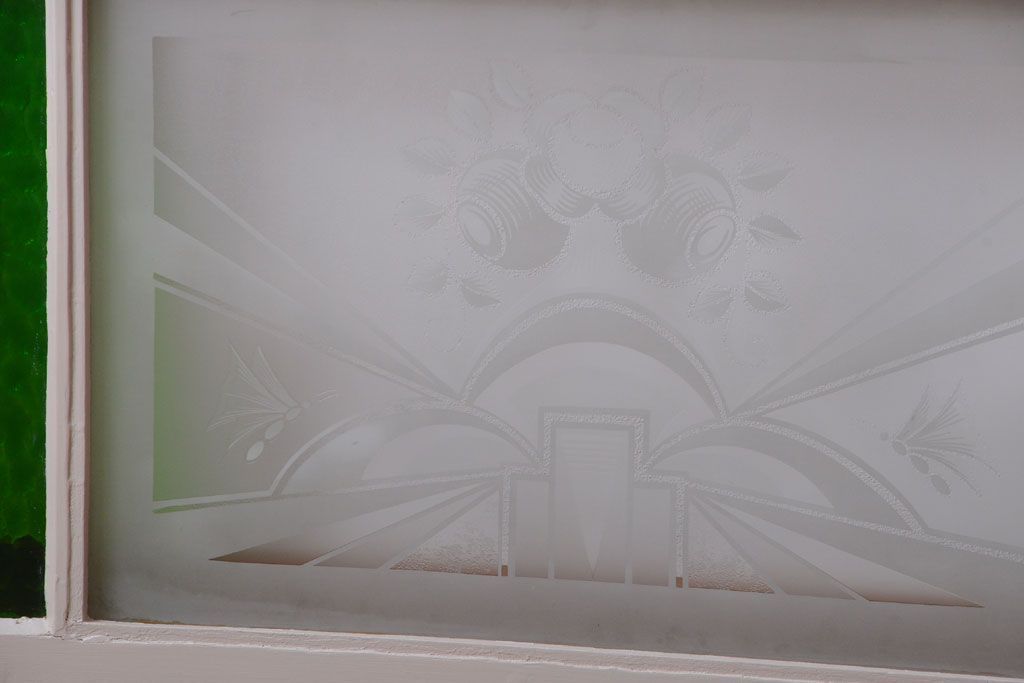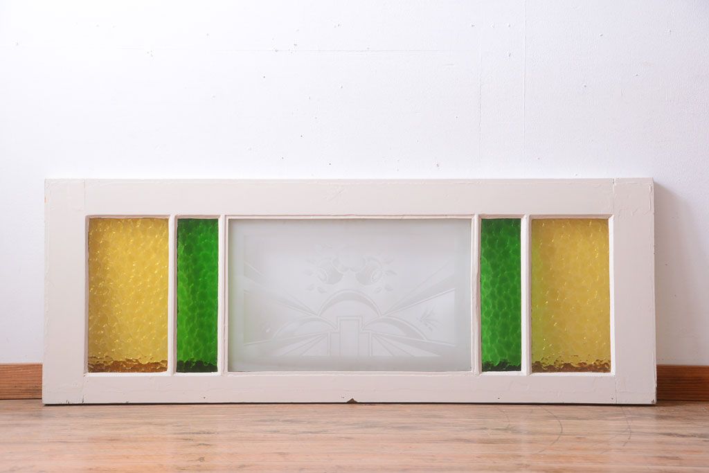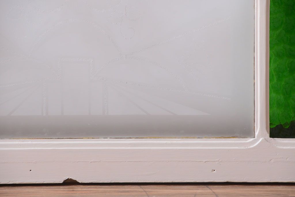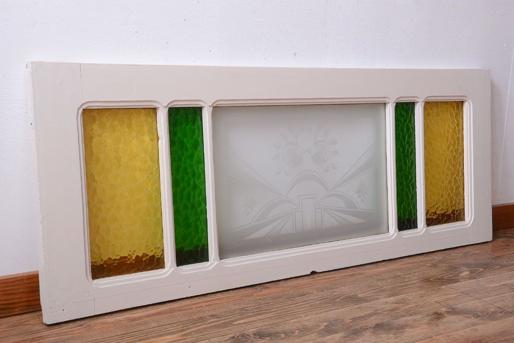 イギリスアンティーク 色ガラス入り!エッチングガラスのおしゃれなペイント明り取り(窓)です。