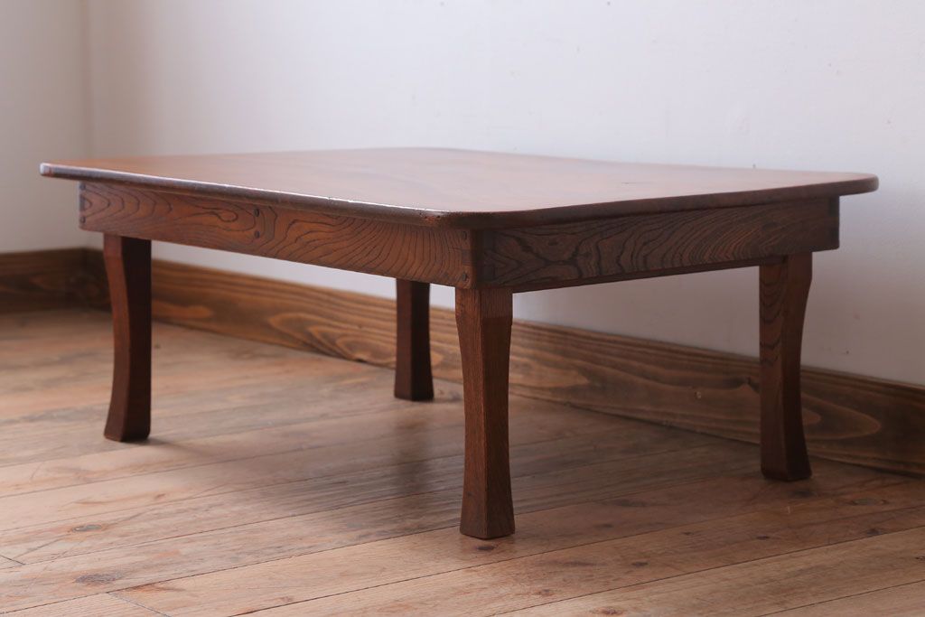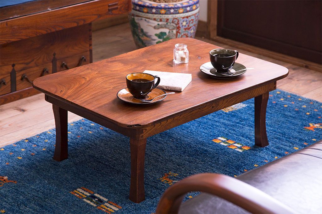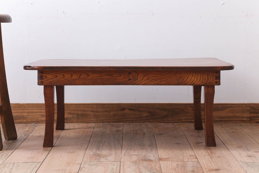ラフジュ工房> テーブル> ちゃぶ台 > アンティーク雑貨 古民具・骨董 天板欅材一枚板のアンティーク角ちゃぶ台