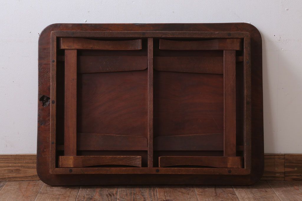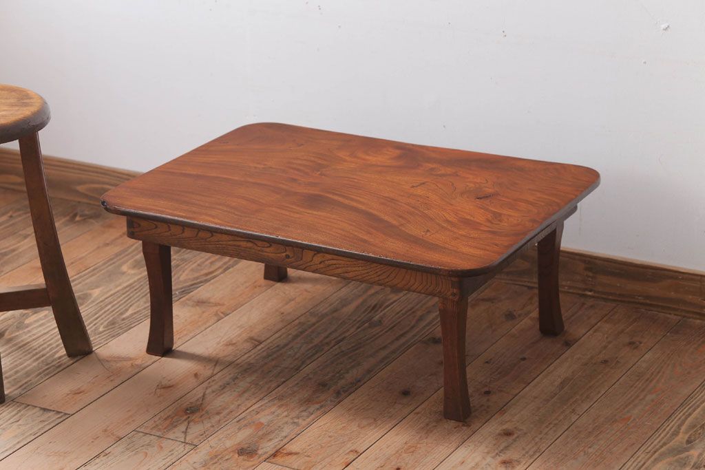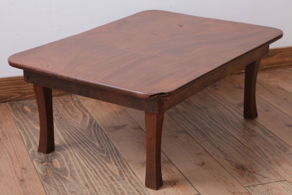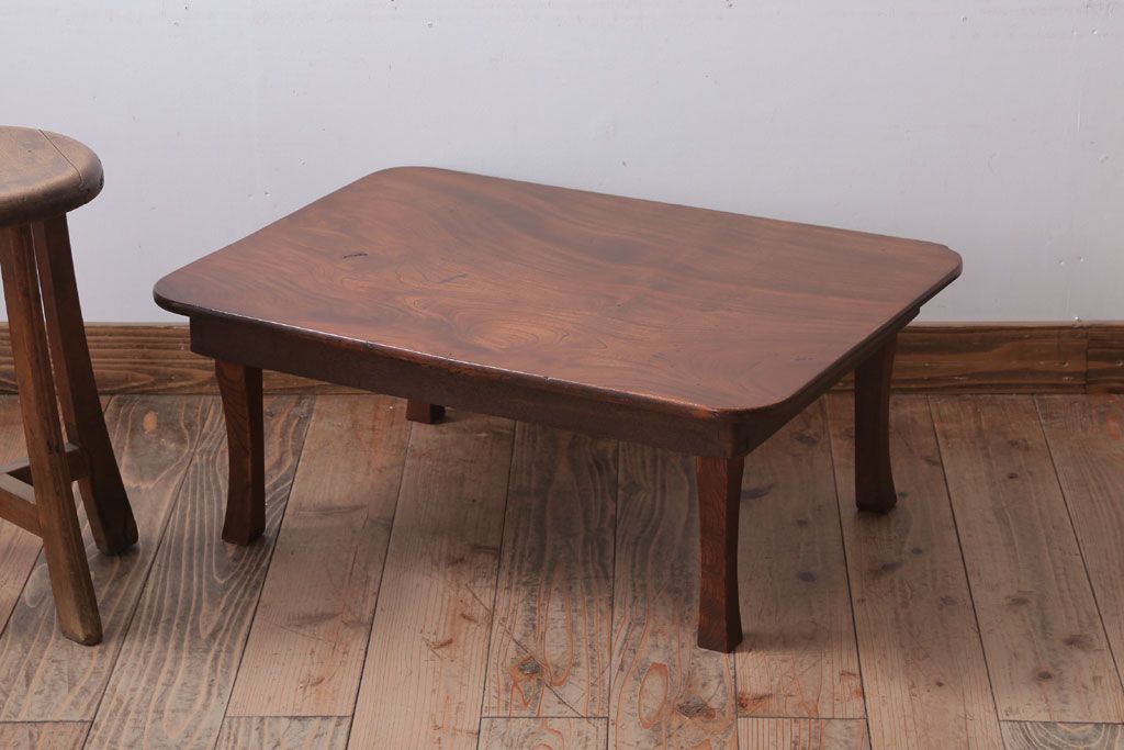ラフジュ工房> テーブル> カフェテーブル・コーヒーテーブル > アンティーク雑貨 古民具・骨董 天板欅材一枚板のアンティーク角ちゃぶ台