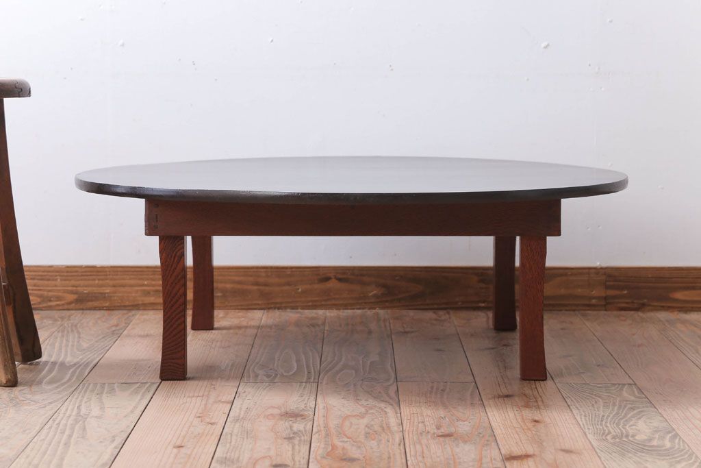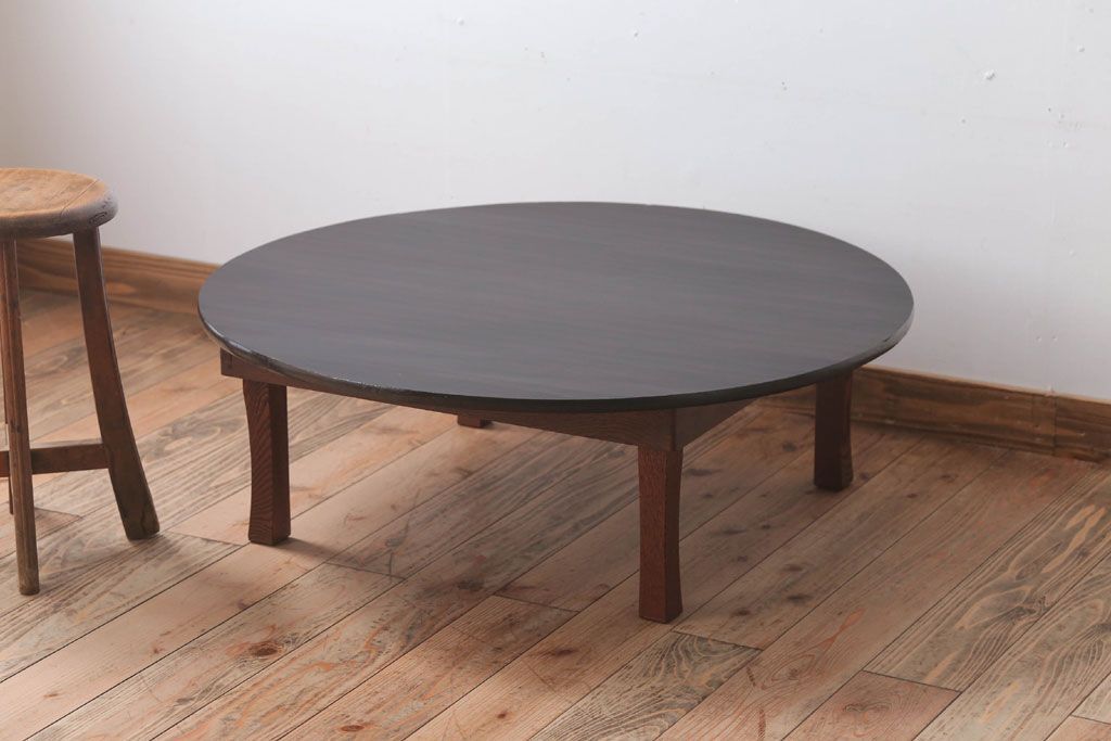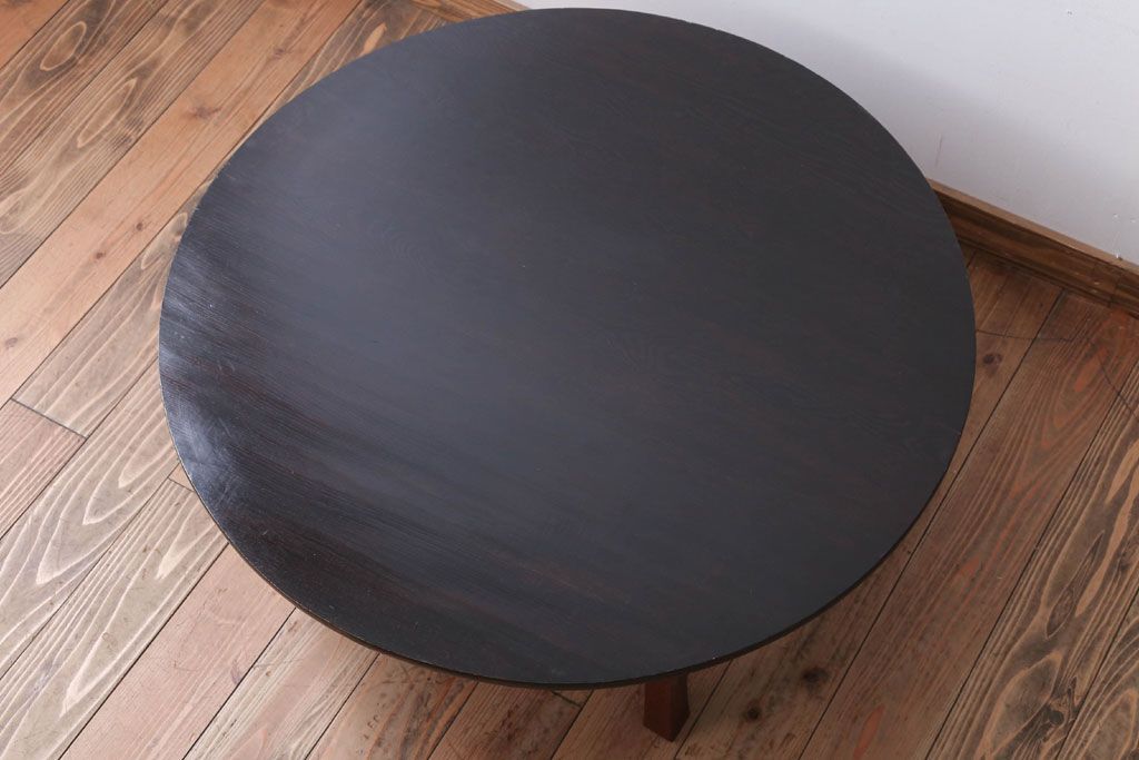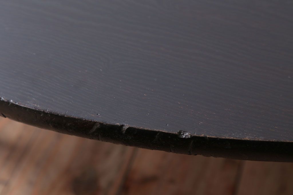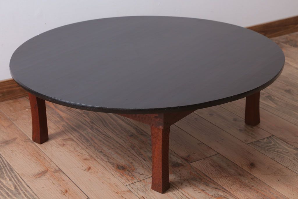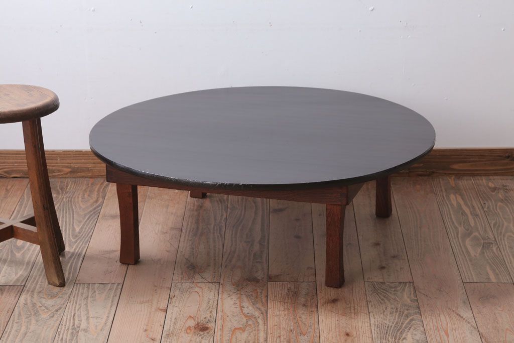 アンティーク家具 和モダンスタイル 天板ブラック塗装!古い木製の丸ちゃぶ台(2)