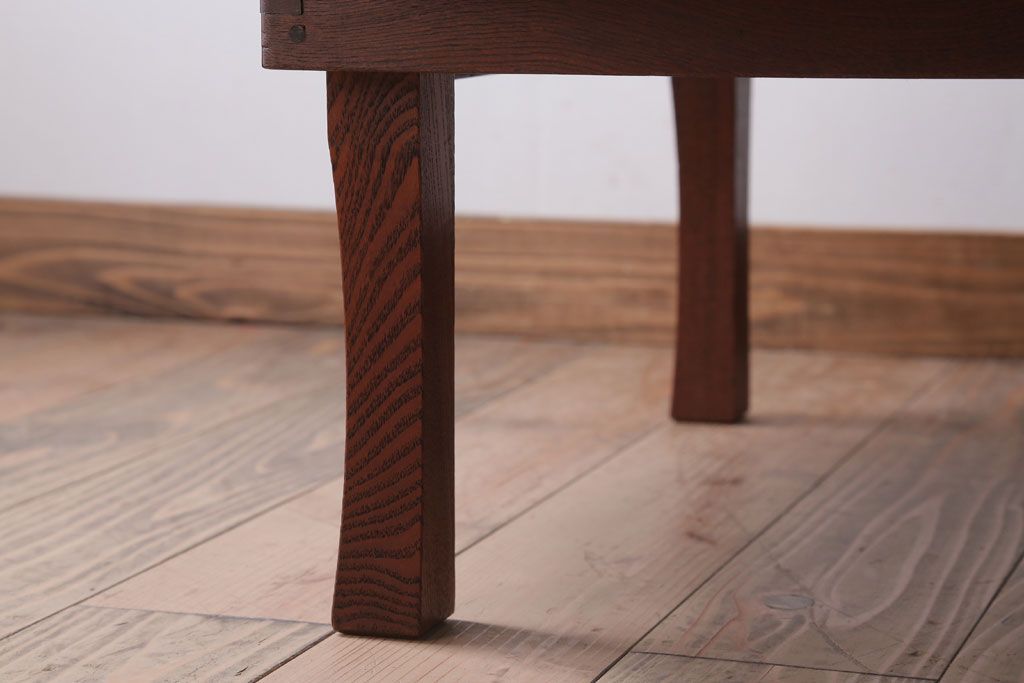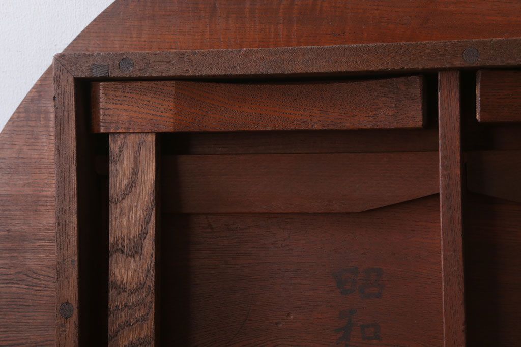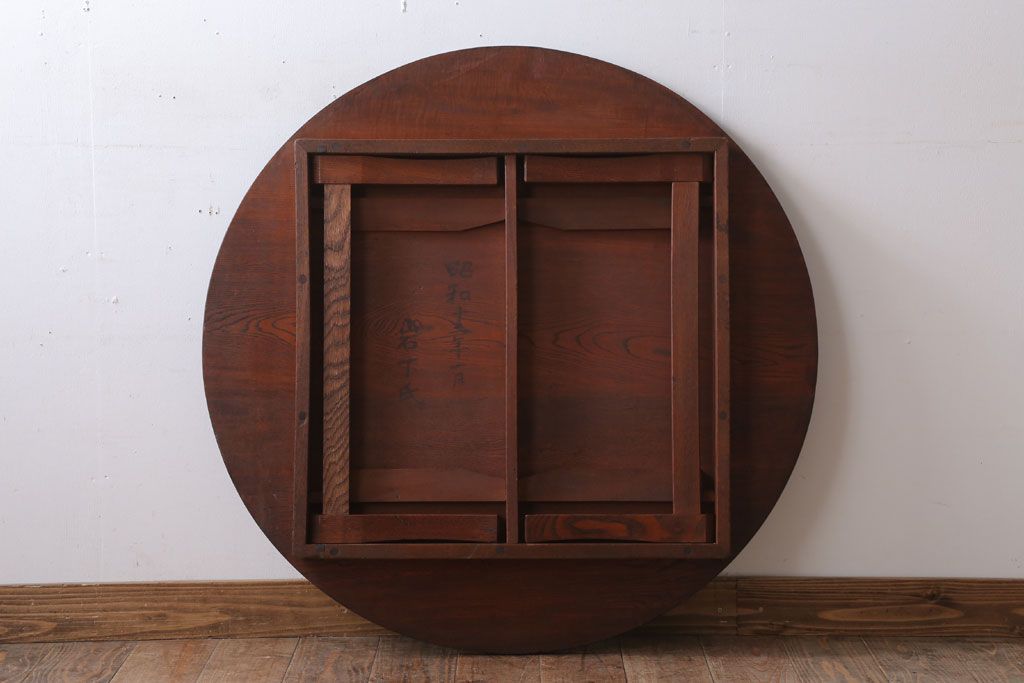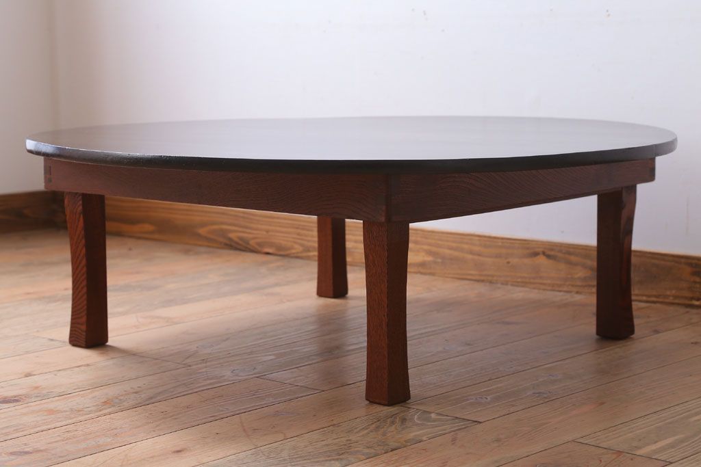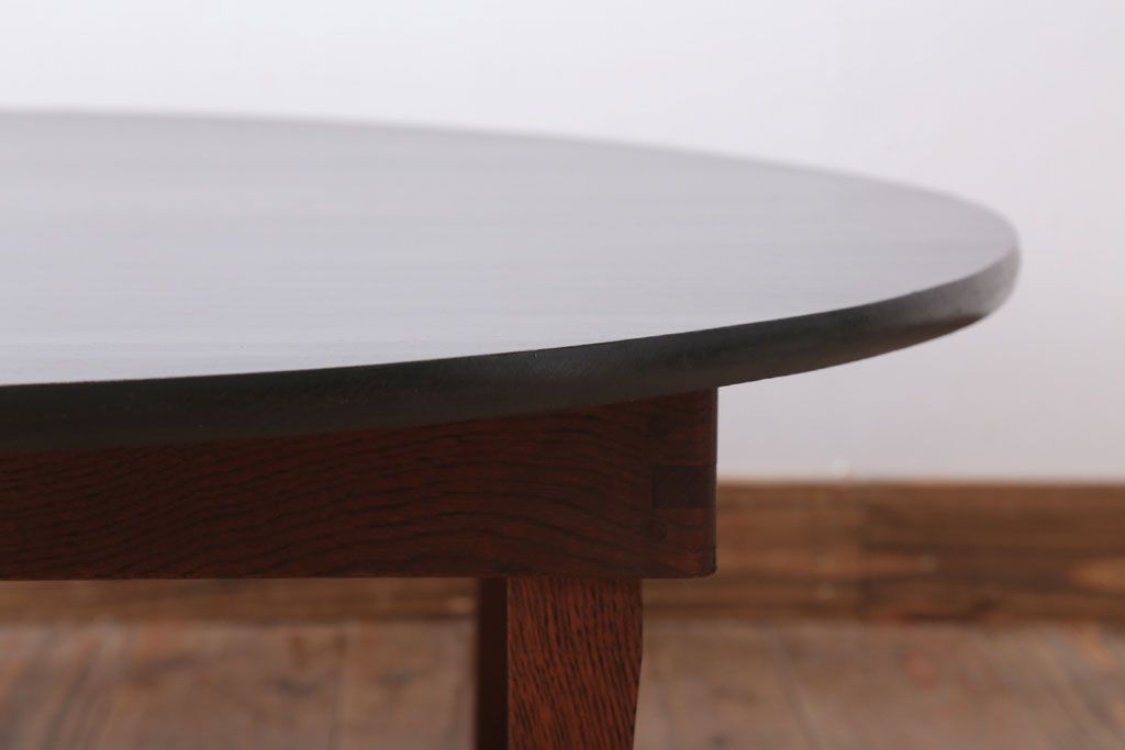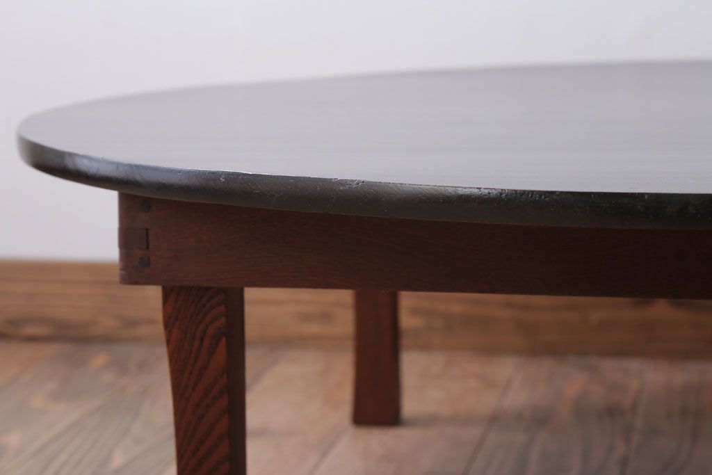 アンティーク家具 和モダンスタイル 天板ブラック塗装!古い木製の丸ちゃぶ台(2)