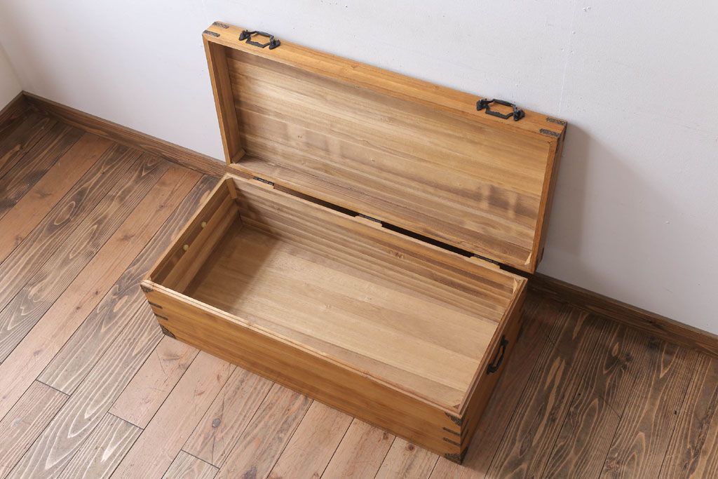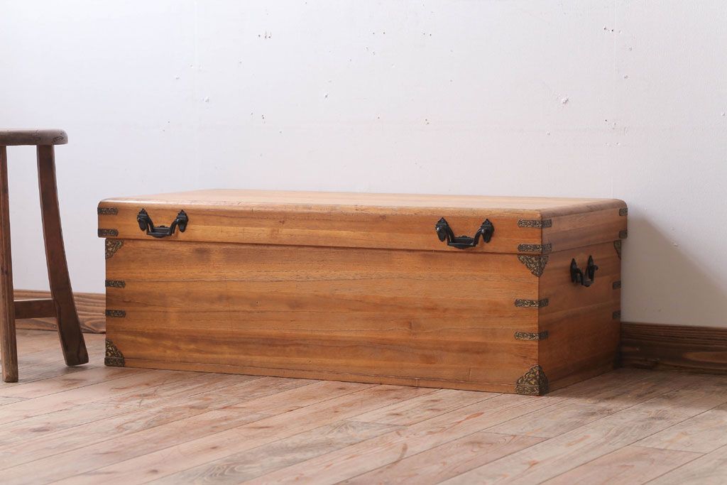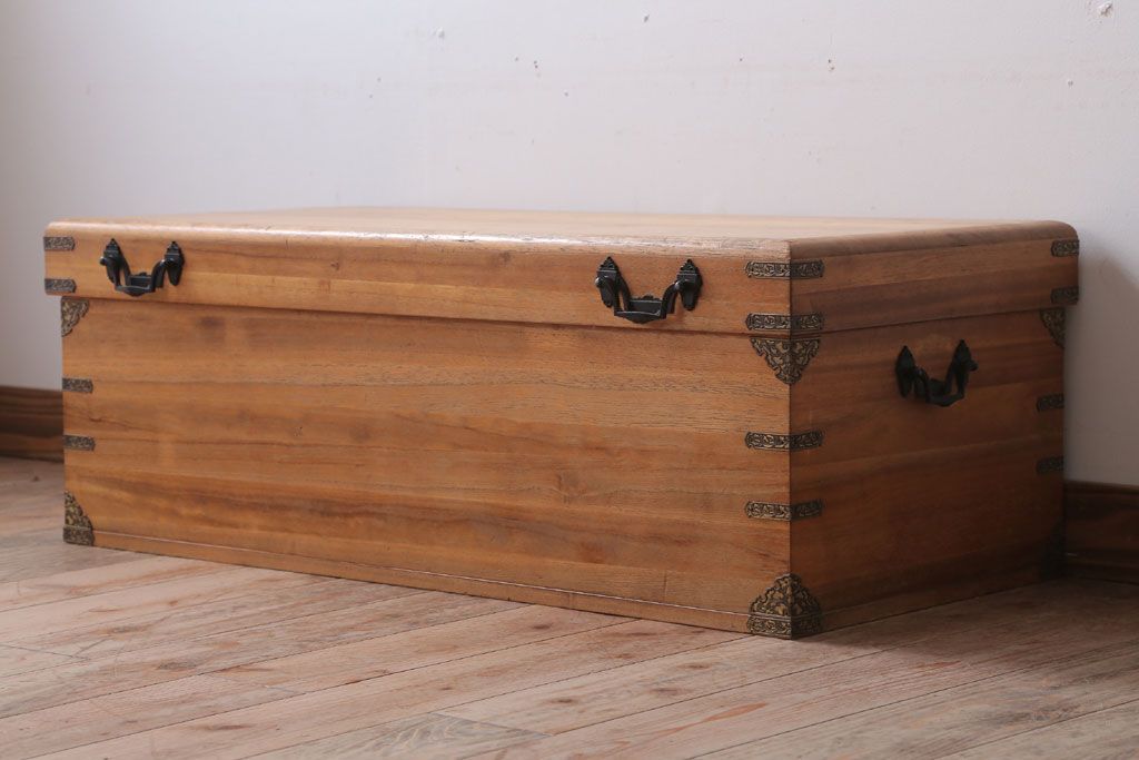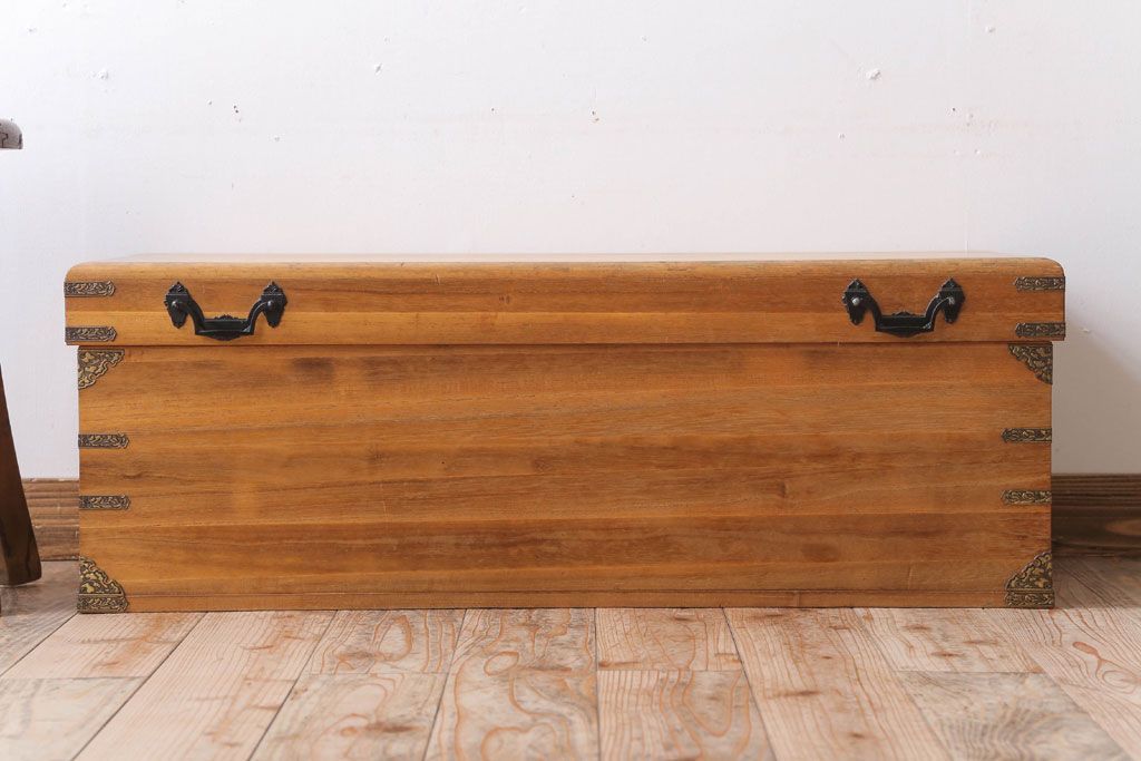アンティーク雑貨 ビンテージ 日本製 総桐材の古いトランク
