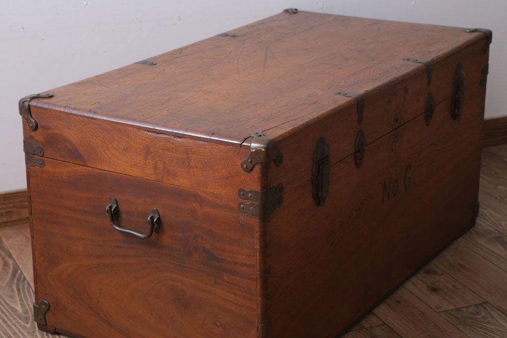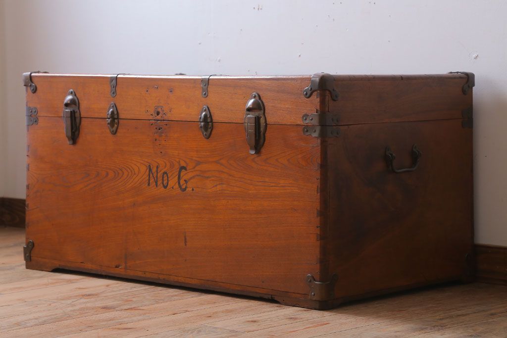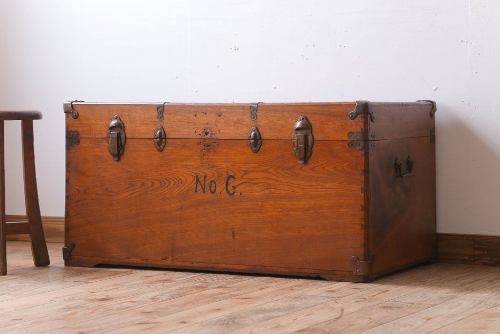 アンティーク雑貨 和製アンティーク 古い木製の大きなトランク(1)