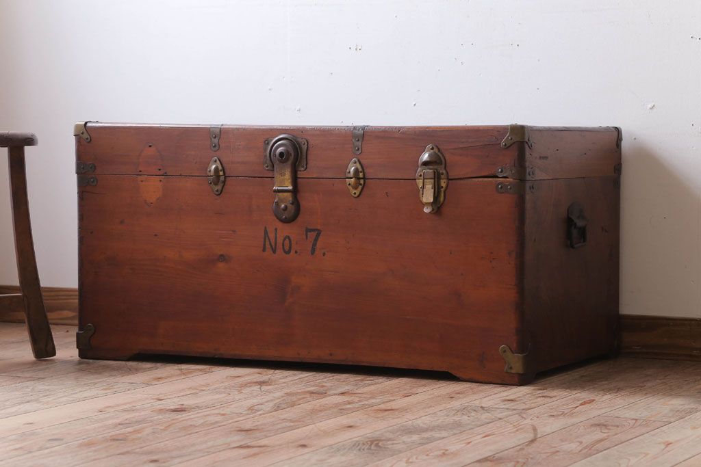 アンティーク雑貨 和製アンティーク 古い木製の大きなトランク(2)
