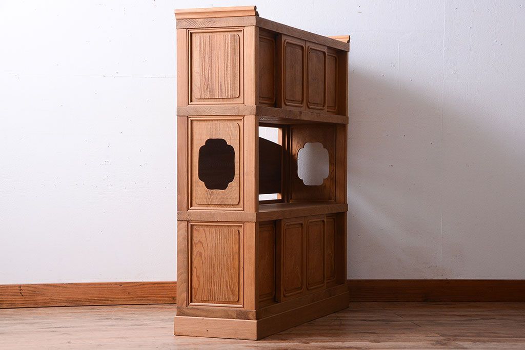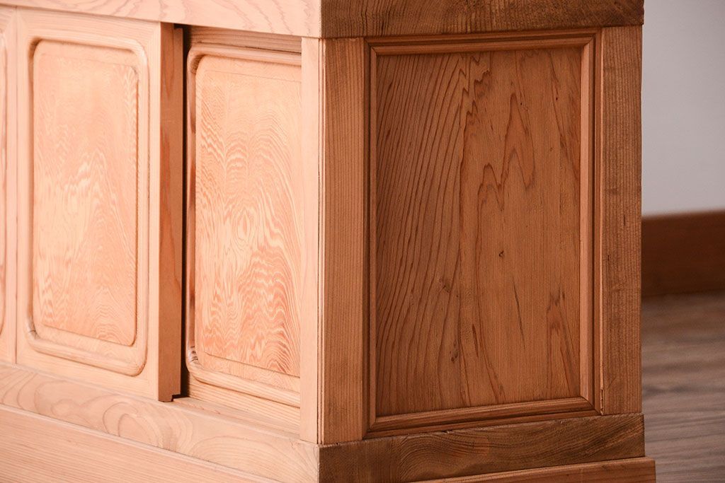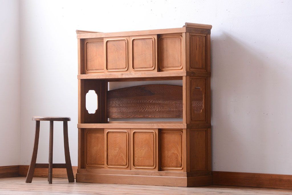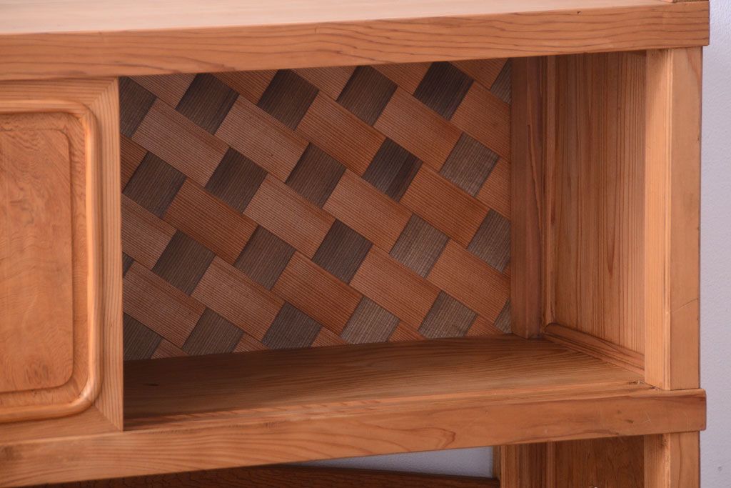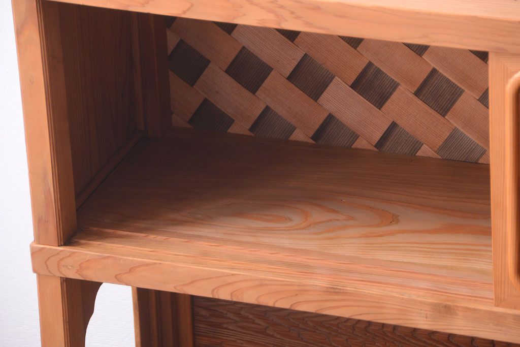 中古 民芸家具 屋久杉製の上品な木味戸棚(茶棚・飾り棚・収納棚)(2)