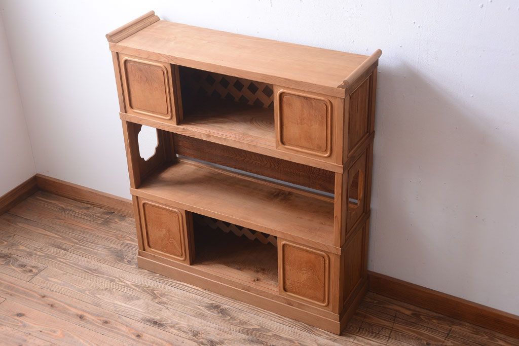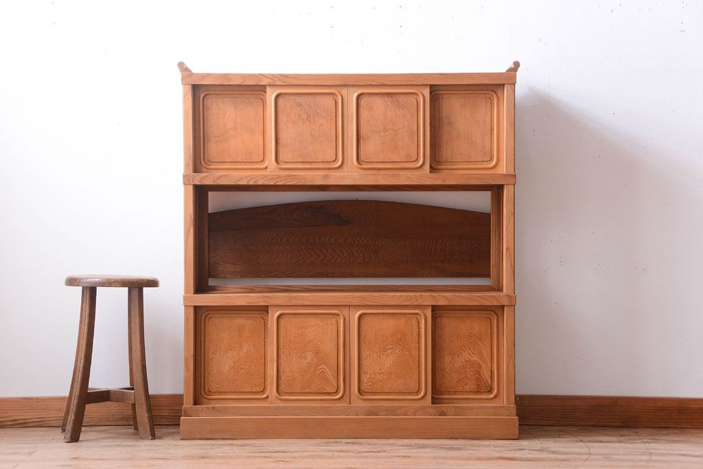 中古 民芸家具 屋久杉製の上品な木味戸棚(茶棚・飾り棚・収納棚)(2)です。