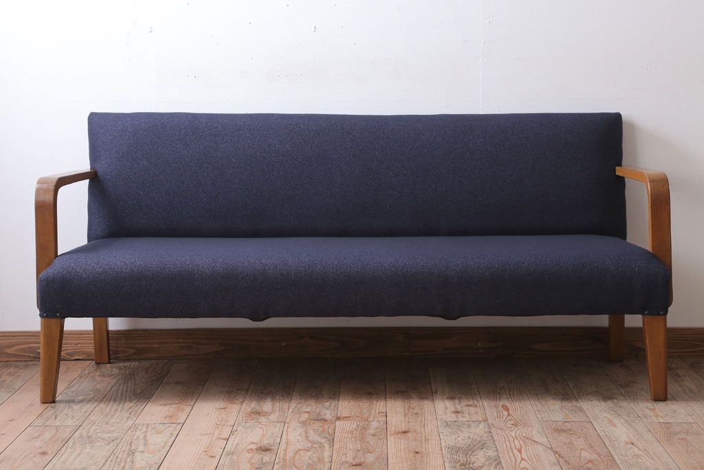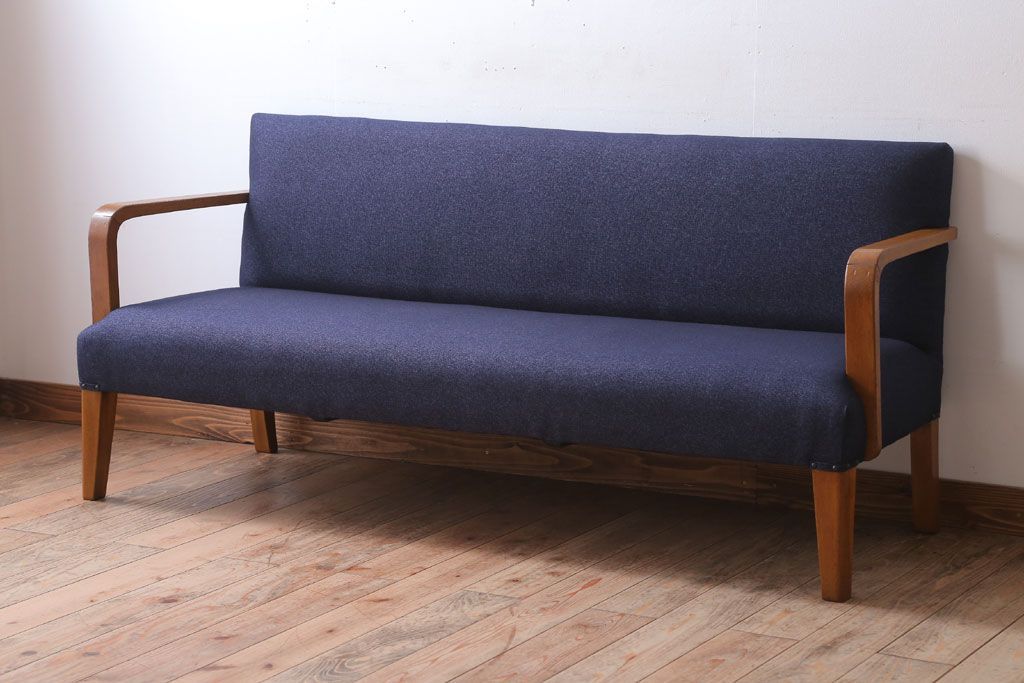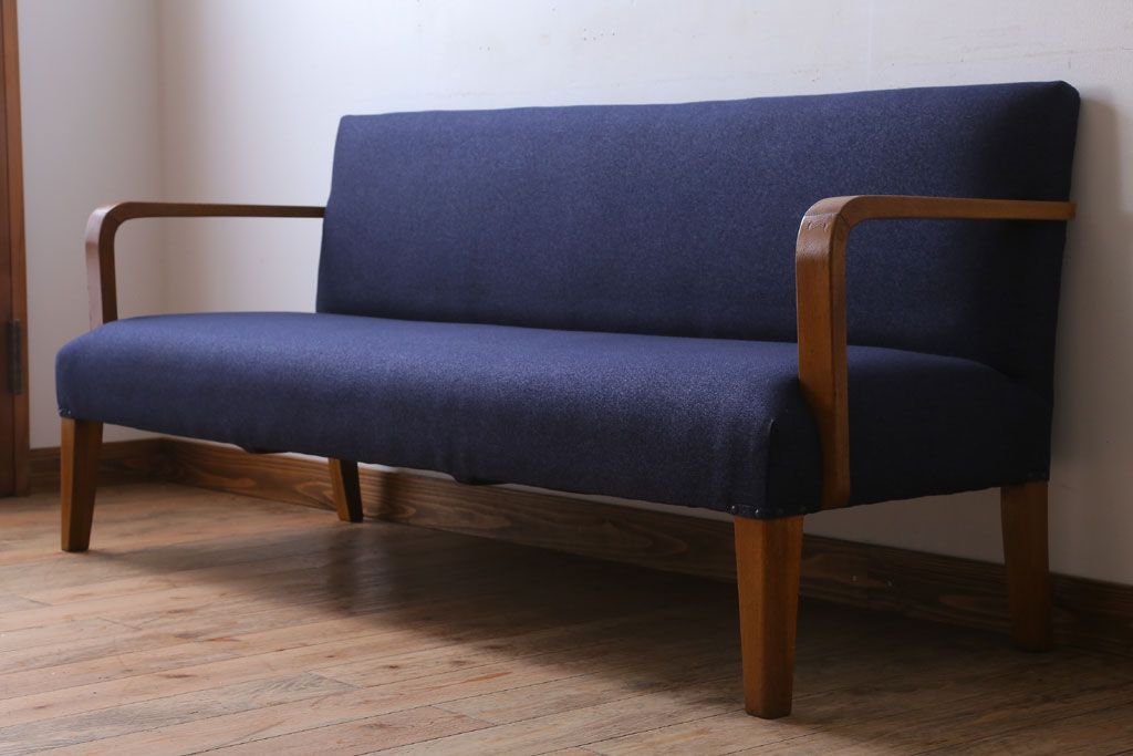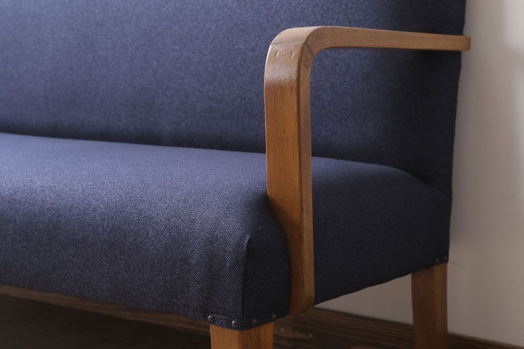 アンティーク家具 和製アンティーク ナラ材製の上品な3人掛けソファ