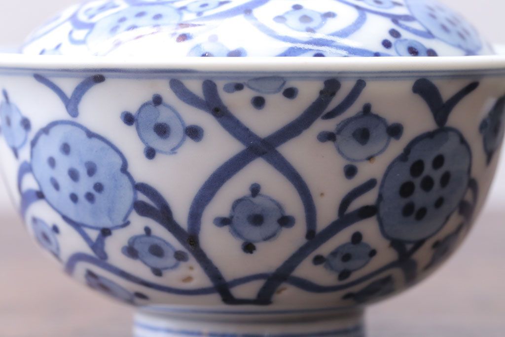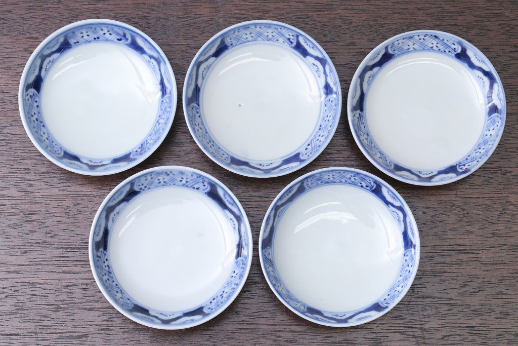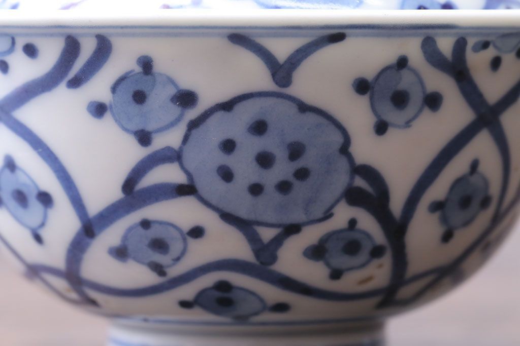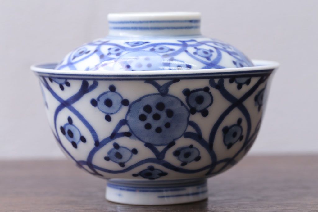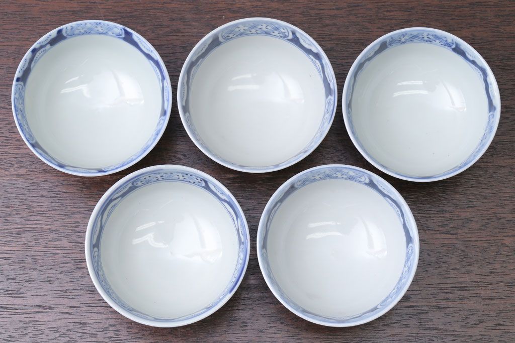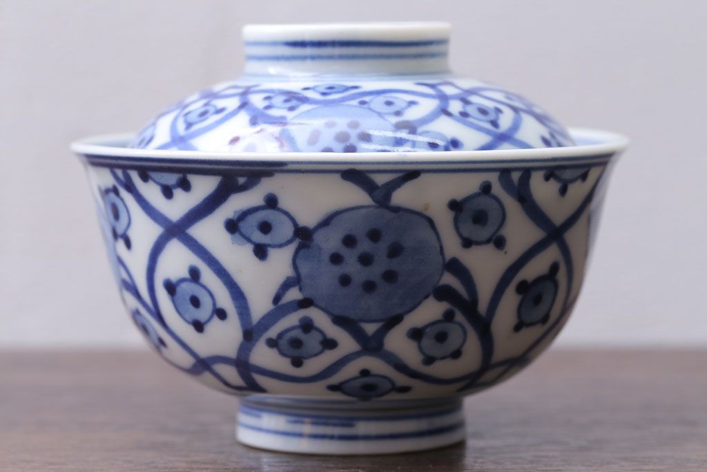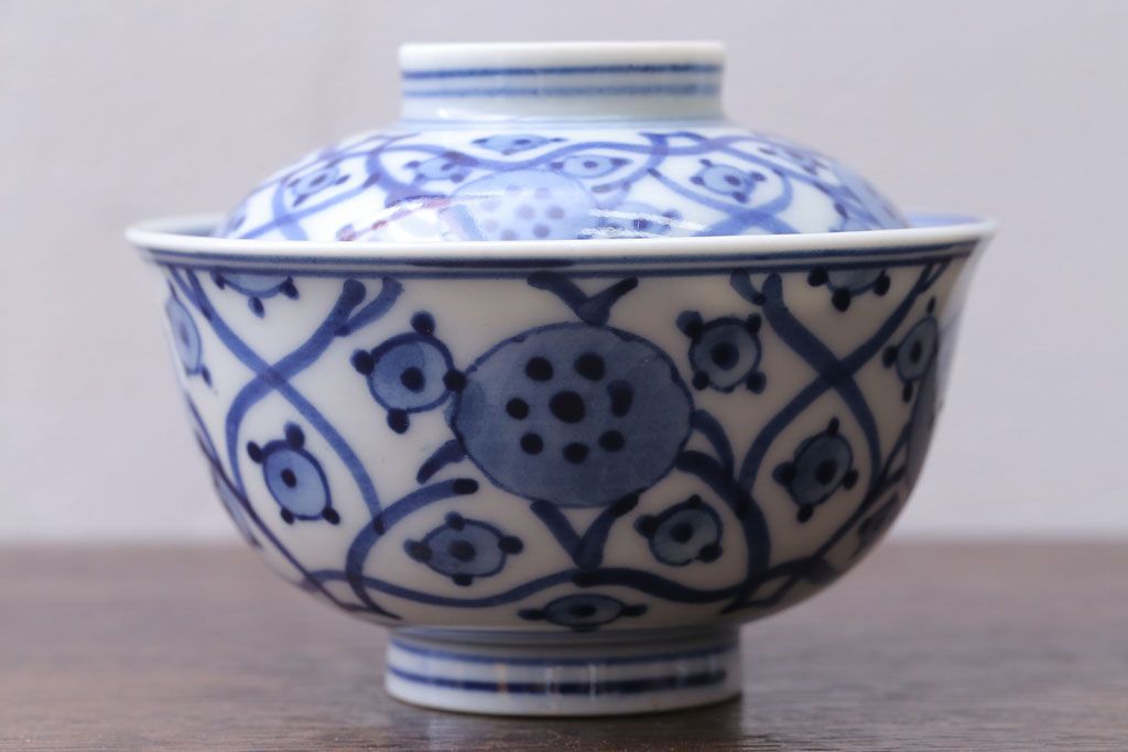アンティーク雑貨 アンティーク 明治〜大正 染付蓋茶碗5客(1)