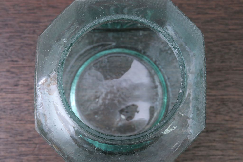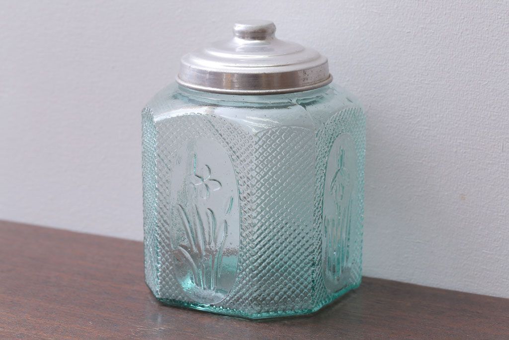 アンティーク雑貨 昭和レトロ プレスガラスのアンティークキャンディーポット(砂糖壺)