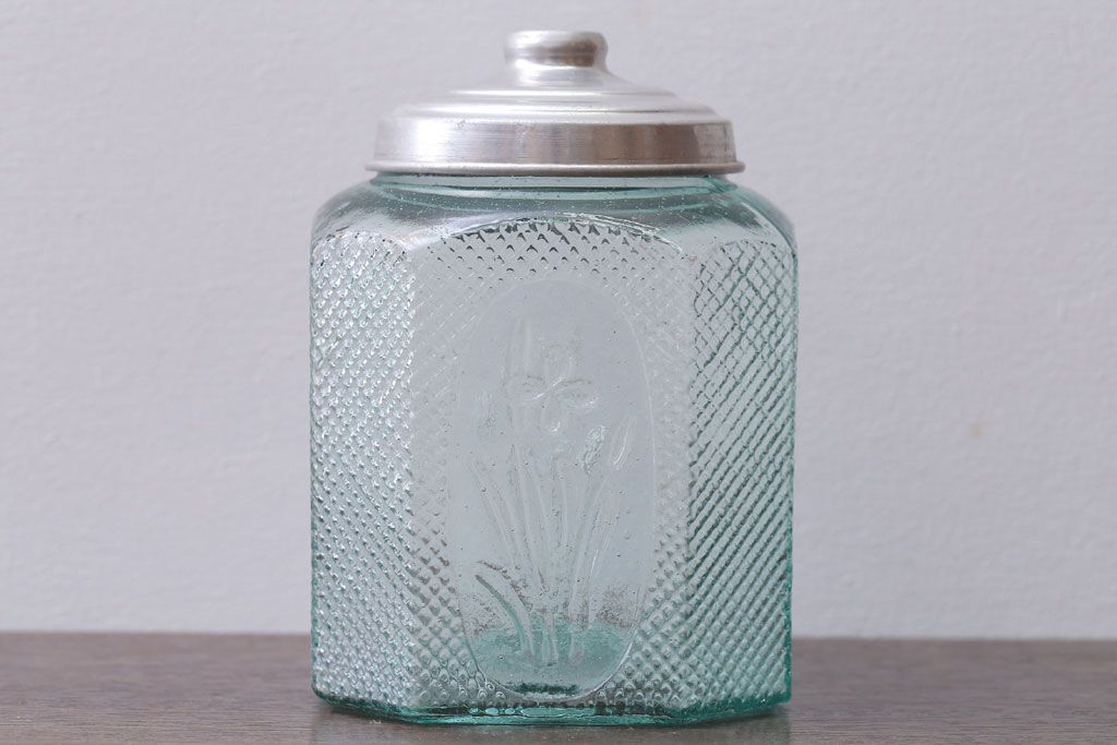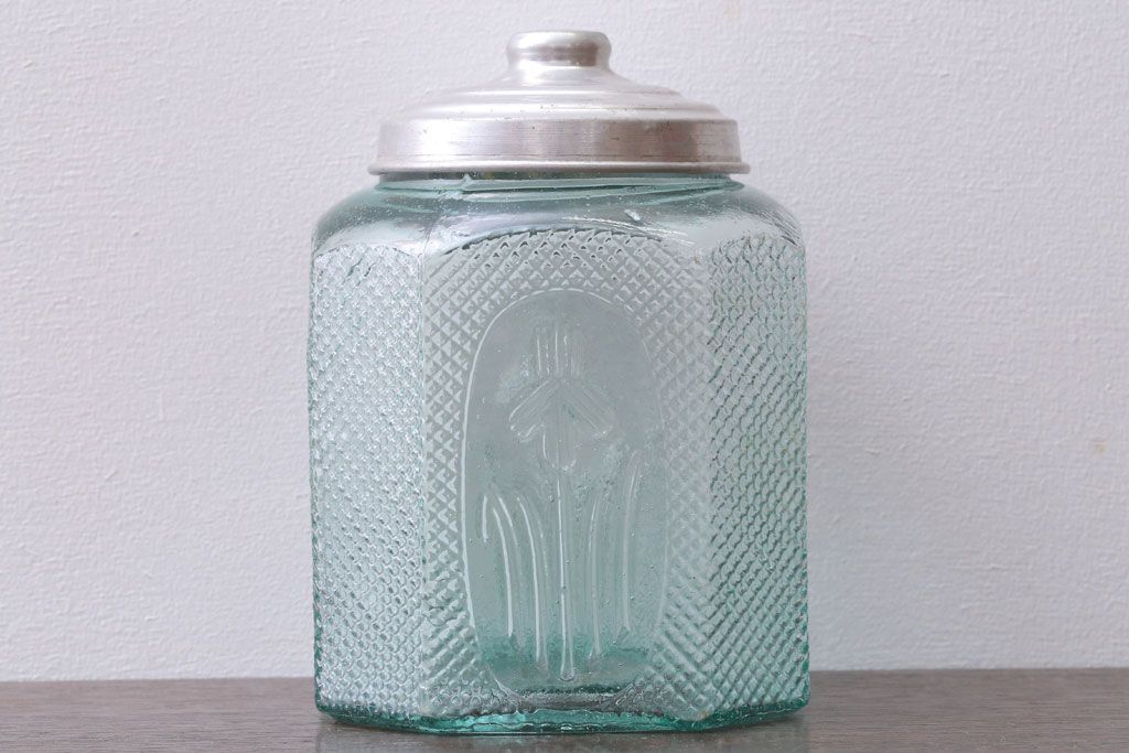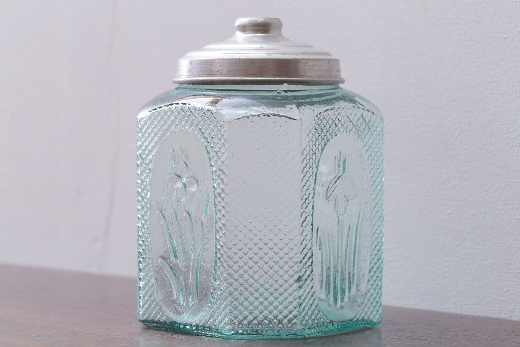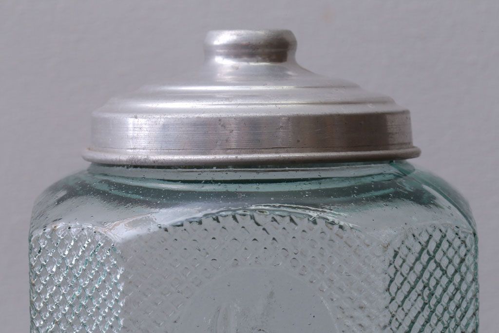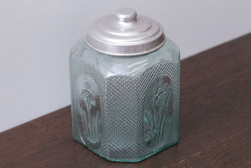 ラフジュ工房> 雑貨> ガラス瓶・花瓶 > アンティーク雑貨 昭和レトロ プレスガラスのアンティークキャンディーポット(砂糖壺)