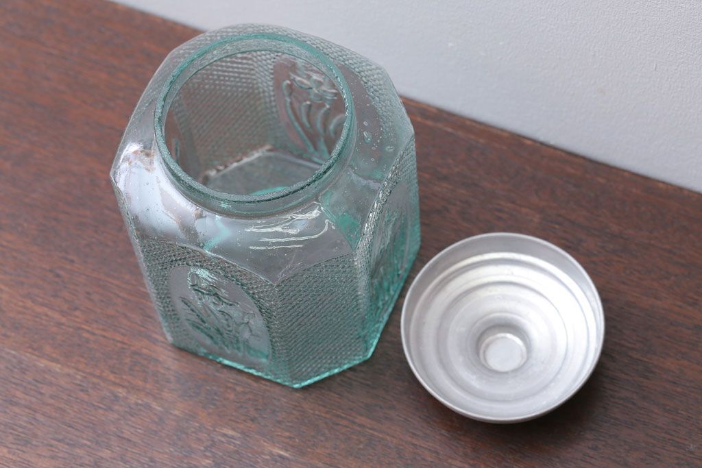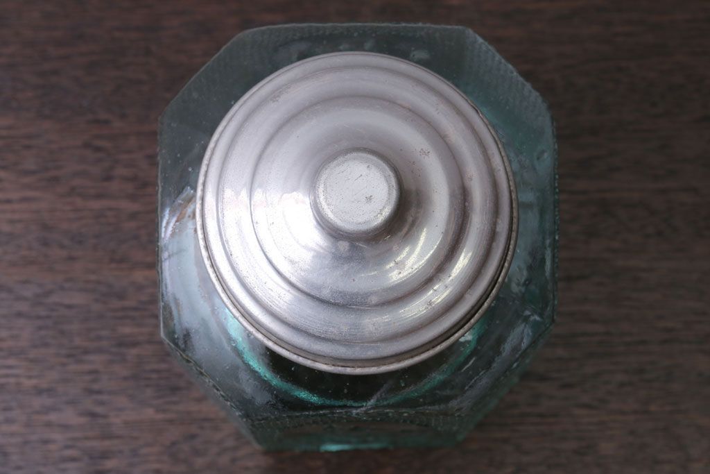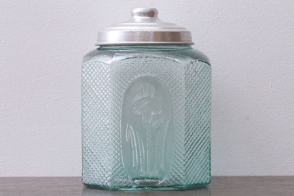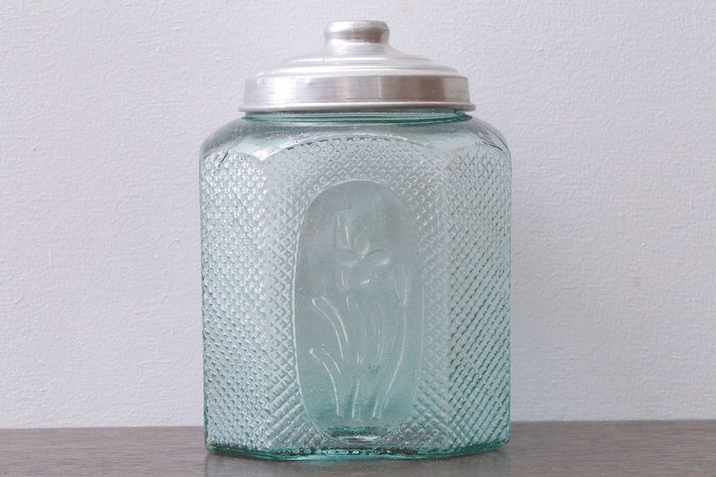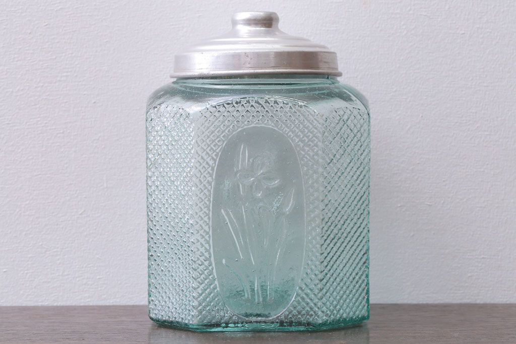 ラフジュ工房> 雑貨> ガラス瓶・花瓶 > アンティーク雑貨 昭和レトロ プレスガラスのアンティークキャンディーポット(砂糖壺)