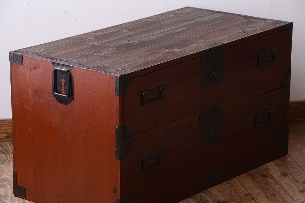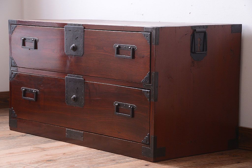 アンティーク家具 古民具・骨董 明治〜大正期 前面欅材!アンティーク時代箪笥ローボード(衣装箪笥)(2)