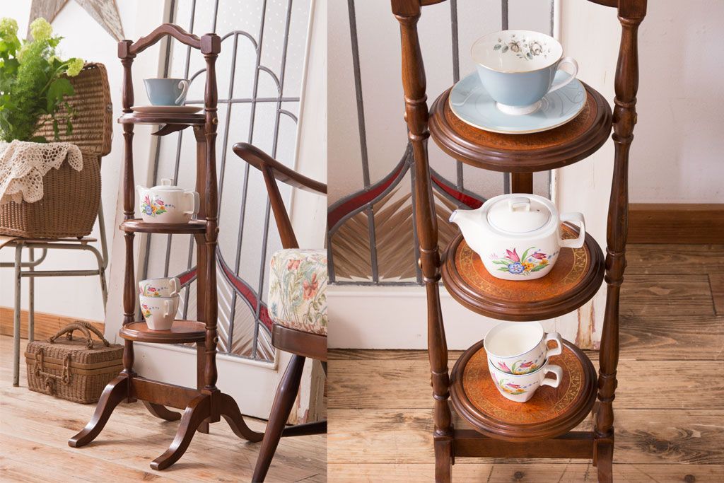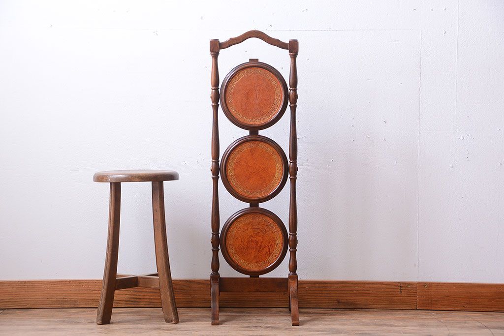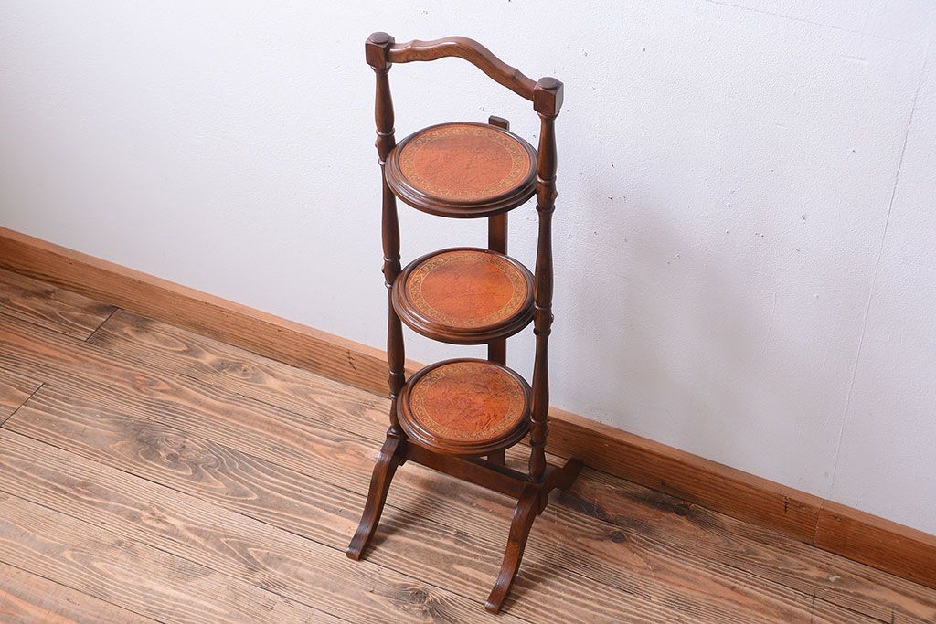 アンティーク雑貨 イギリスアンティーク ウォールナット材の折り畳み式ケーキスタンド(1)
