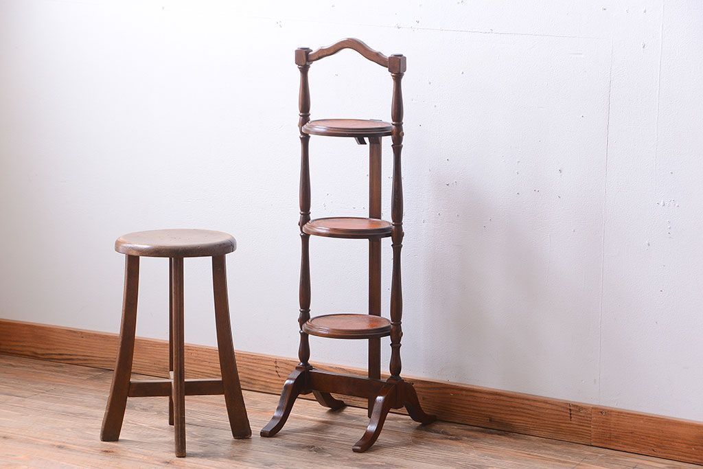 花台・飾り台 > アンティーク雑貨 イギリスアンティーク ウォールナット材の折り畳み式ケーキスタンド(1)