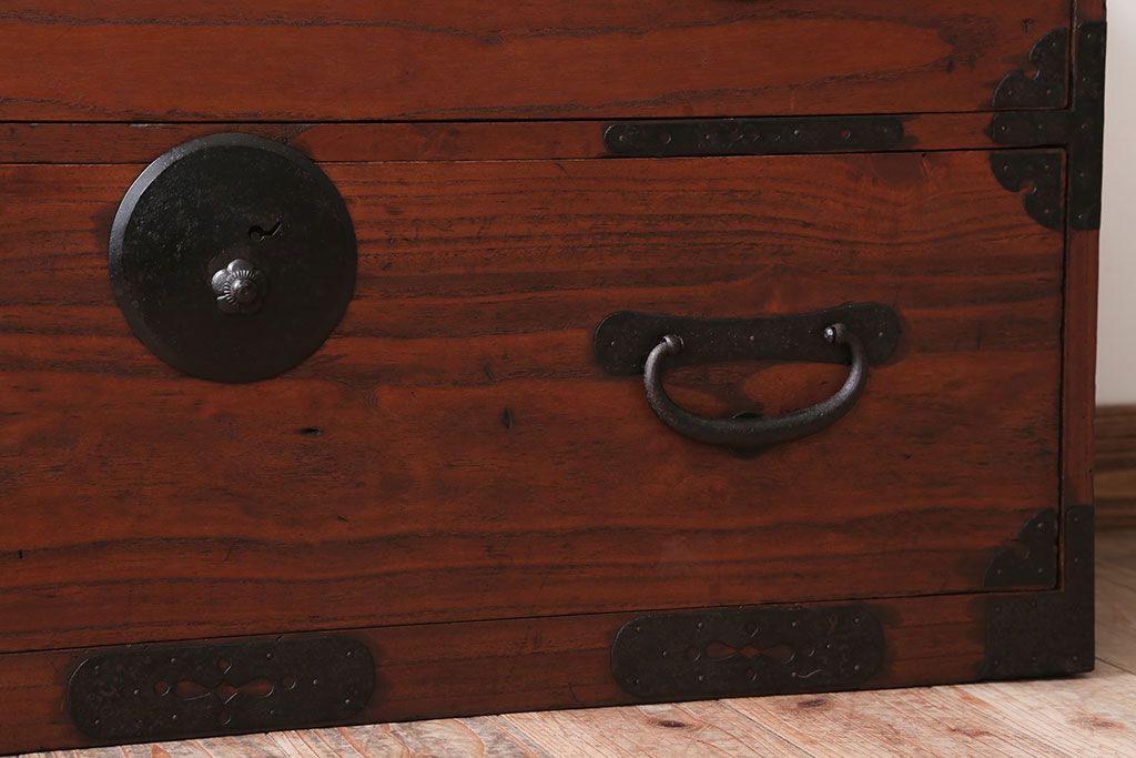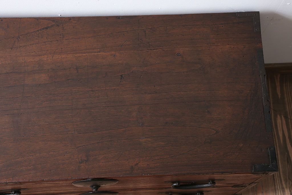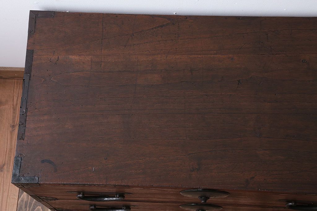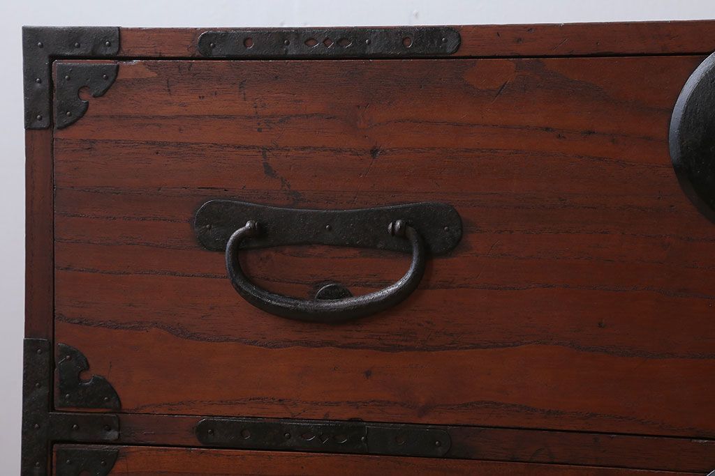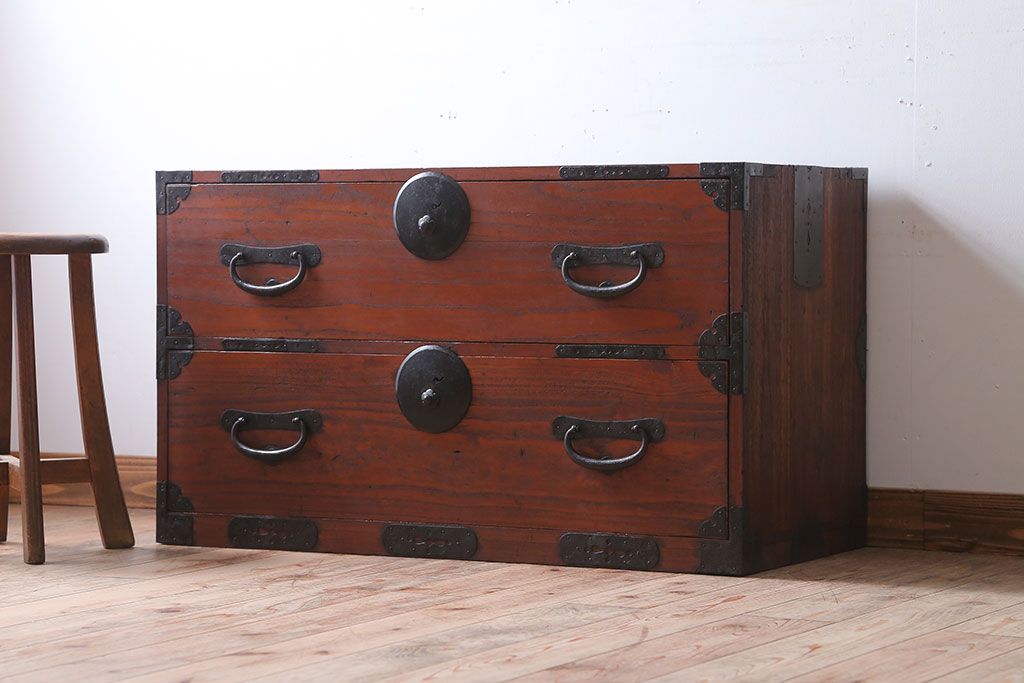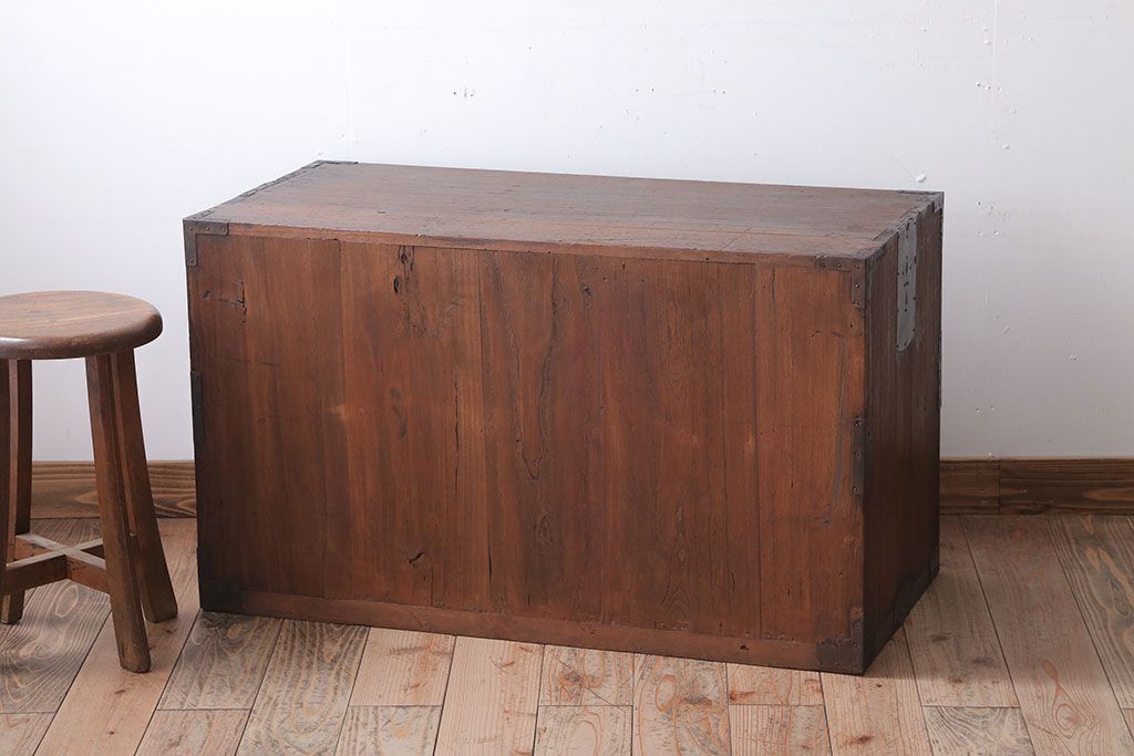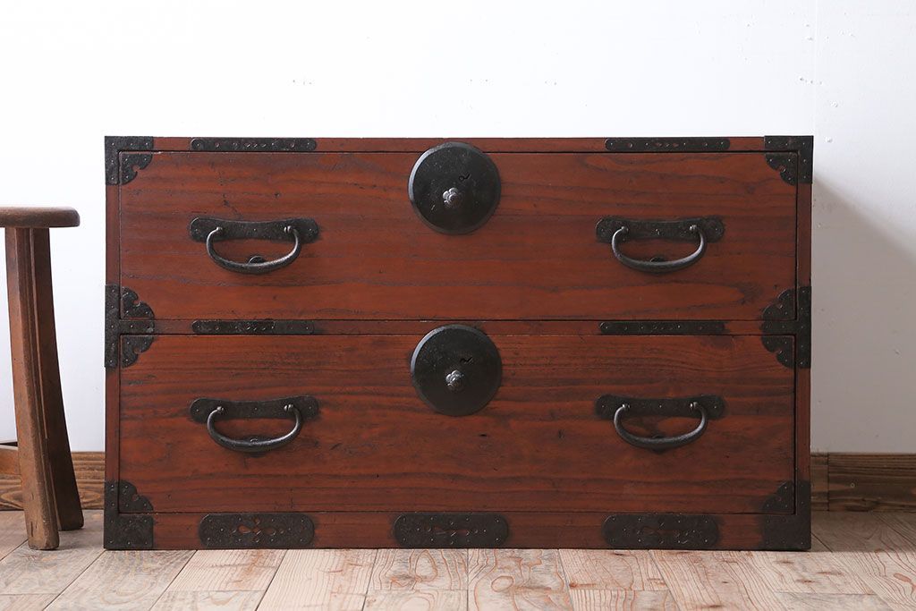 和箪笥> 衣装箪笥 > アンティーク家具 和製アンティーク シンプルな丸金具の時代箪笥ローボード(1)