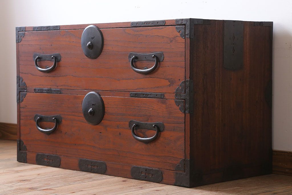 アンティーク家具 和製アンティーク シンプルな丸金具の時代箪笥ローボード(1)