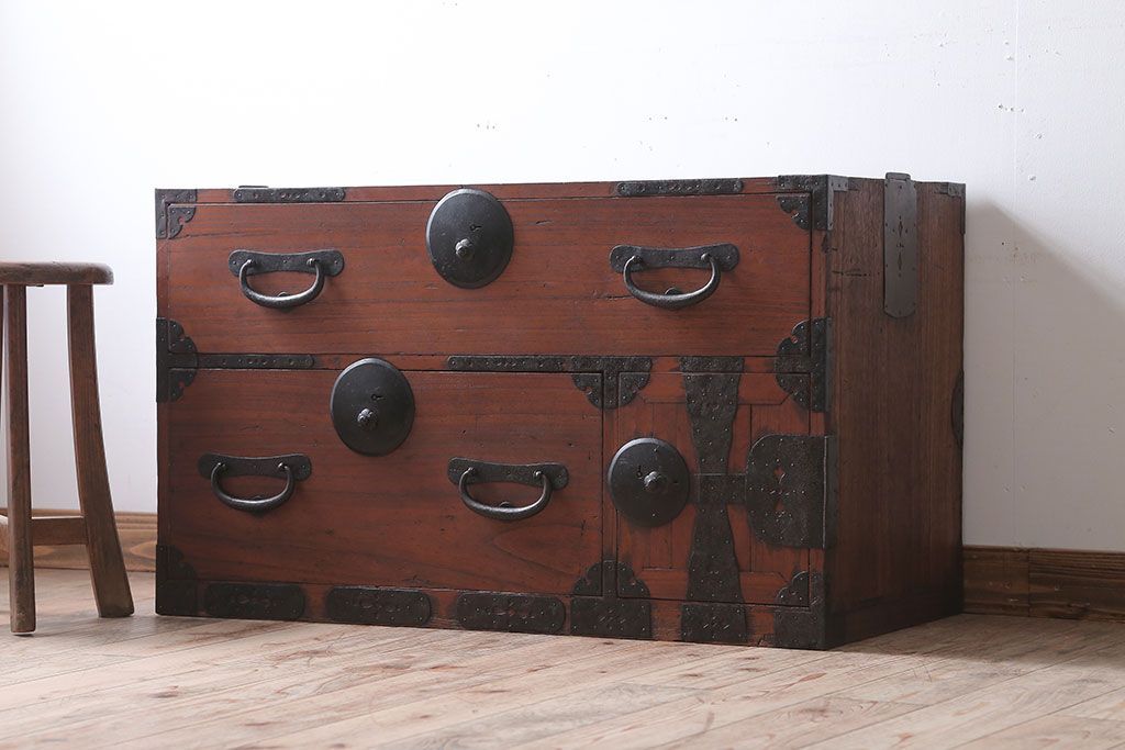 アンティーク家具 和製アンティーク シンプルな丸金具!時代箪笥ローボード