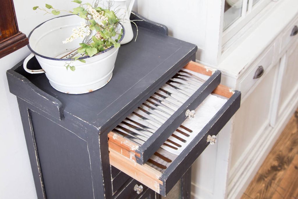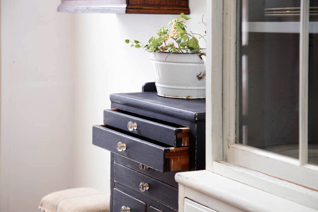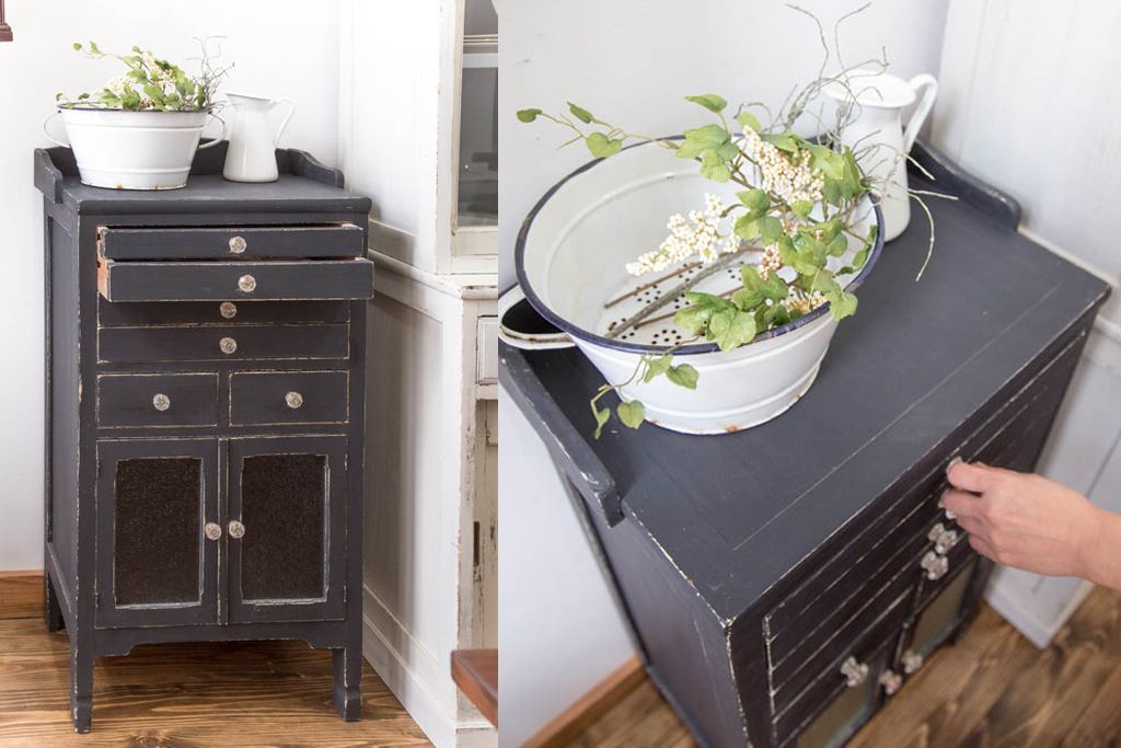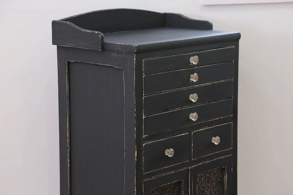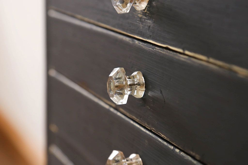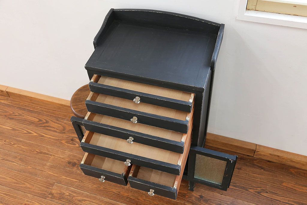 ラフジュ工房> キャビネット・戸棚> 医療用キャビネット・ケビント > アンティーク家具 アンティークペイント ガラスの取っ手付き ダイヤガラスデンタルキャビネット(3)(収納棚、ケビント)