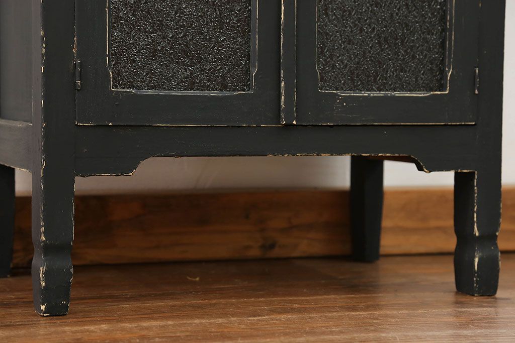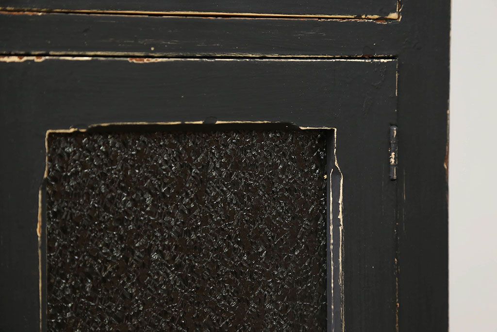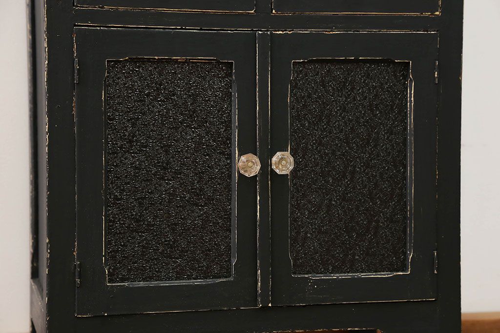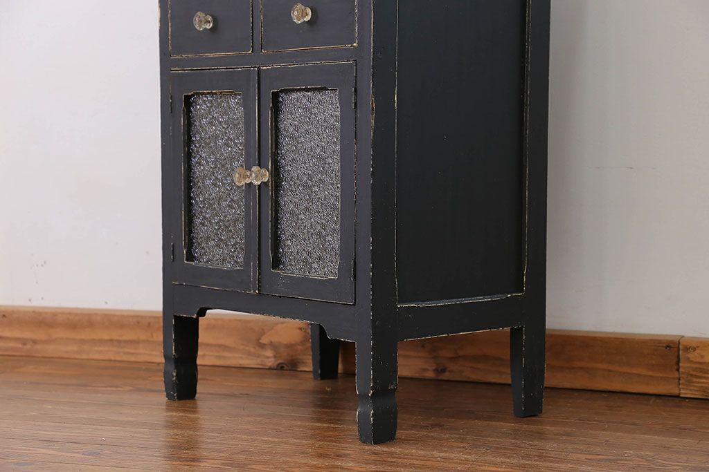 アンティーク家具 アンティークペイント ガラスの取っ手付き ダイヤガラスデンタルキャビネット(3)(収納棚、ケビント)