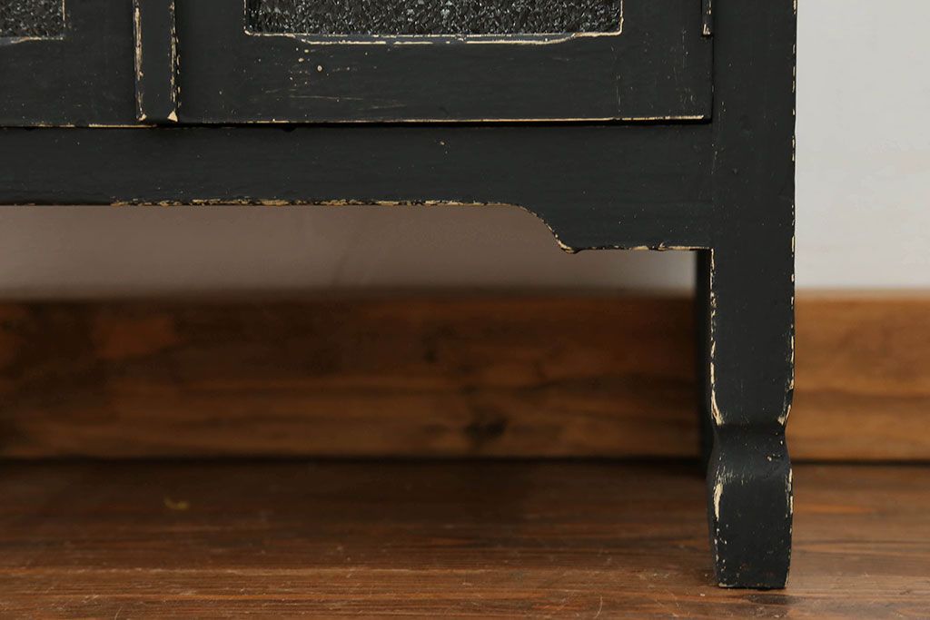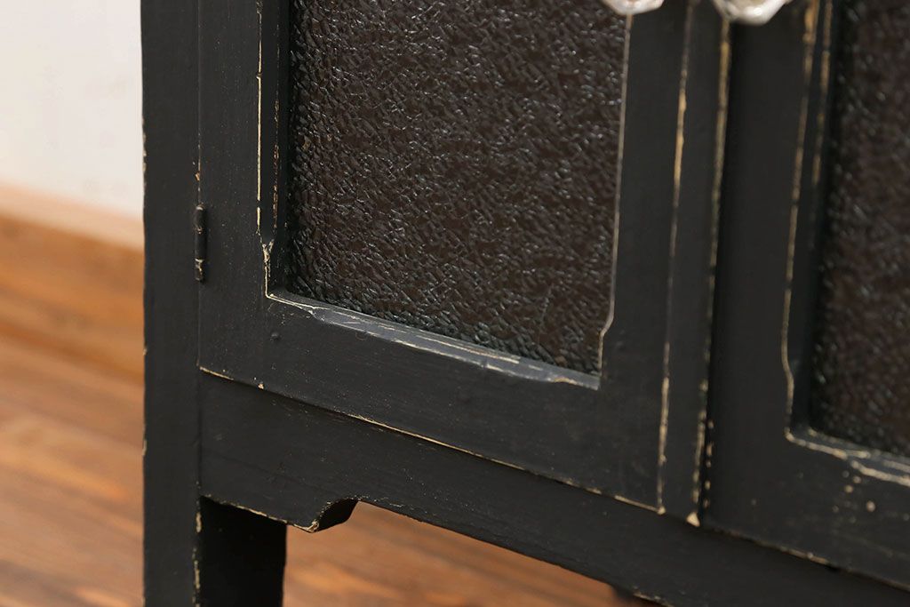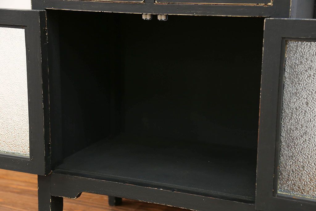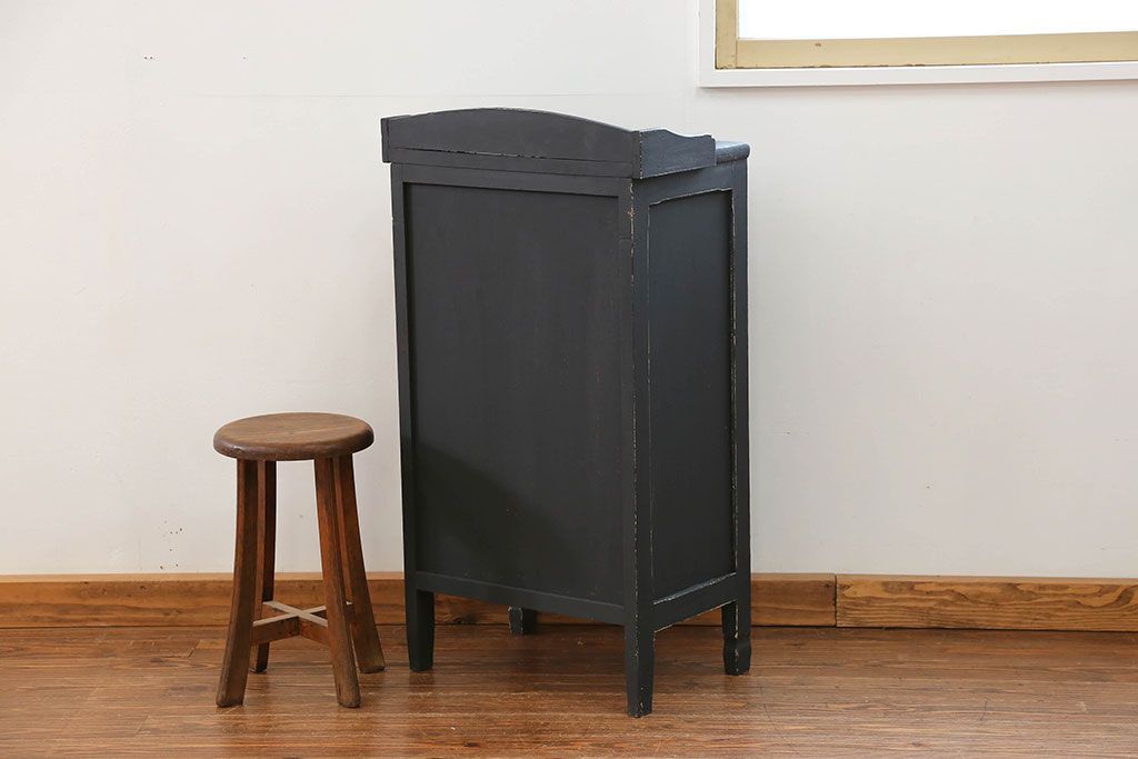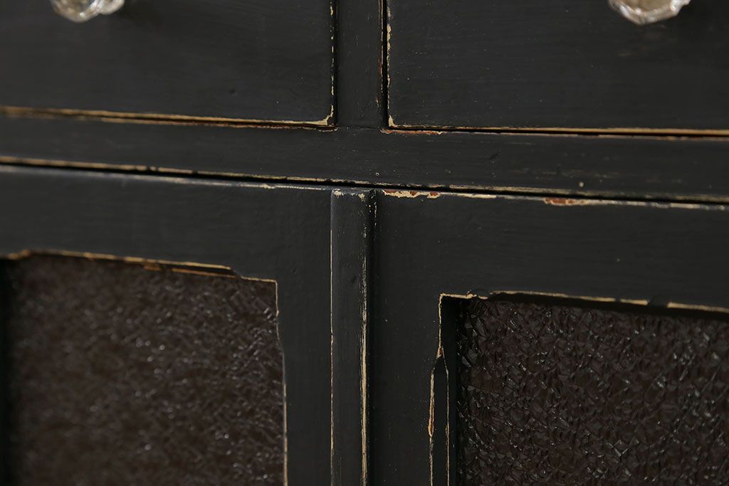 アンティーク家具 アンティークペイント ガラスの取っ手付き ダイヤガラスデンタルキャビネット(3)(収納棚、ケビント)